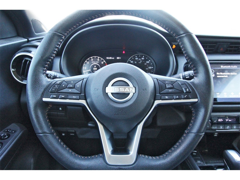 Central Houston Nissan is proud to present you with another True Market Priced Pre-Owned Vehicle. This 2022 Nissan Kicks SR Nissan Certified is loaded with the following Factory Options: Nissan Certified Certified Premium Package (Bose Personal Plus Audio System, Heated Front Seats, Heated Steering Wheel, Prima-Tex Appointed Seat Trim, Security System, and Tonneau Cover), Technology Package (NissanConnect Services), Nissan Certified Certified, 3.927 Axle Ratio, 4-Wheel Disc Brakes, 6 Speakers, ABS brakes, Air Conditioning, Alloy wheels, AM/FM radio: SiriusXM, Apple CarPlay/Android Auto, Auto High-beam Headlights, Auto-dimming Rear-View mirror, Automatic temperature control, Blind Spot Warning, Brake assist, Bumpers: body-color, Carpeted Floor Mats w/Cargo Mat, Cloth Seat Trim, Compass, Delay-off headlights, Driver door bin, Driver vanity mirror, Dual front impact airbags, Dual front side impact airbags, Electronic Stability Control, Exterior Parking Camera Rear, Front anti-roll bar, Front Bucket Seats, Front Center Armrest, Front fog lights, Front reading lights, Front wheel independent suspension, Fully automatic headlights, Heated door mirrors, Illuminated entry, Knee airbag, Low tire pressure warning, Occupant sensing airbag, Outside temperature display, Overhead airbag, Panic alarm, Passenger door bin, Passenger vanity mirror, Power door mirrors, Power steering, Power windows, Radio data system, Radio: AM/FM Audio System, Rear Parking Sensors, Rear reading lights, Rear side impact airbag, Rear window defroster, Rear window wiper, Remote keyless entry, Roof rack: rails only, Speed control, Splash Guards Grain (4 Piece), Split folding rear seat, Sport steering wheel, SR Rear Roof Spoiler, Steering wheel mounted audio controls, Tachometer, Telescoping steering wheel, Tilt steering wheel, Traction control, Trip computer, Turn signal indicator mirrors, Variably intermittent wipers, Wheels: 17" 5-Hole Alloy, and Wheels: 17" Black Alloy!!