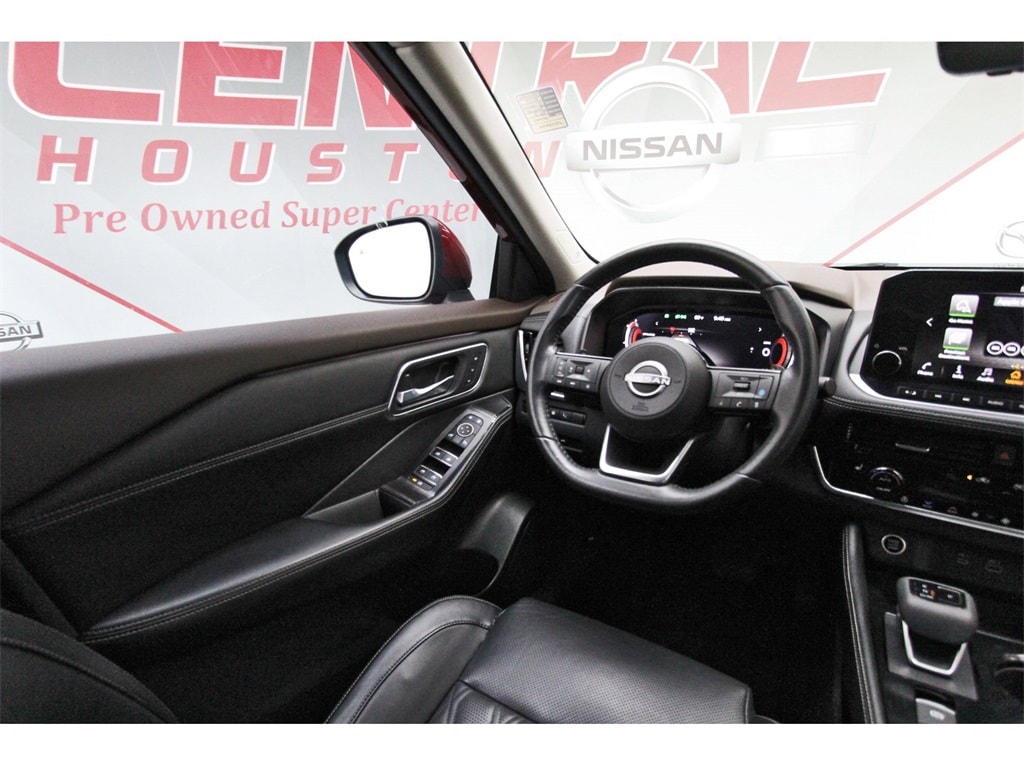 Central Houston Nissan is proud to present you with another True Market Priced Pre-Owned Vehicle. This 2022 Nissan Rogue Platinum Nissan Certified is loaded with the following Factory Options: Nissan Certified Certified Head-Up Display Package (Heads-Up Display), Nissan Certified Certified, 10 Speakers, 19" Aluminum Alloy Wheels, 4-Wheel Disc Brakes, 5.604 Axle Ratio, ABS brakes, Air Conditioning, Alloy wheels, AM/FM radio: SiriusXM, Apple CarPlay/Android Auto, Auto High-beam Headlights, Auto-dimming Rear-View mirror, Automatic temperature control, Black Splash Guards (Set of 4), Bose Premium Audio System, Brake assist, Bumpers: body-color, Chrome Rear Bumper Protector, Delay-off headlights, Driver door bin, Driver vanity mirror, Dual front impact airbags, Dual front side impact airbags, Electronic Stability Control, Emergency communication system: NissanConnect Services, First Aid Kit, Floor Mats w/2-Piece Cargo Area Protector, Four wheel independent suspension, Frameless Rearview Mirror w/Universal Remote, Front anti-roll bar, Front Bucket Seats, Front Center Armrest, Front dual zone A/C, Front fog lights, Front reading lights, Fully automatic headlights, Heated door mirrors, Heated Front Bucket Seats, Heated front seats, Heated rear seats, Heated steering wheel, Illuminated entry, Illuminated Kick Plates, Knee airbag, Low tire pressure warning, Memory seat, Navigation system: NissanConnect Navigation, Occupant sensing airbag, Outside temperature display, Overhead airbag, Overhead console, Panic alarm, Passenger door bin, Passenger vanity mirror, Power door mirrors, Power driver seat, Power Liftgate, Power moonroof, Power passenger seat, Power steering, Power windows, Quilted Semi-Aniline Leather Seat Trim, Radio data system, Radio: AM/FM NissanConnect w/Navigation, Rear air conditioning, Rear anti-roll bar, Rear reading lights, Rear seat center armrest, Rear side impact airbag, Rear window defroster, Rear window wiper, Remote keyless entry, Roof rack: rails only, Security system, Speed control, Speed-Sensitive Wipers, Split folding rear seat, Spoiler, Steering wheel mounted audio controls, Tachometer, Telescoping steering wheel, Tilt steering wheel, Traction control, Trip computer, Turn signal indicator mirrors, and Variably intermittent wipers!!