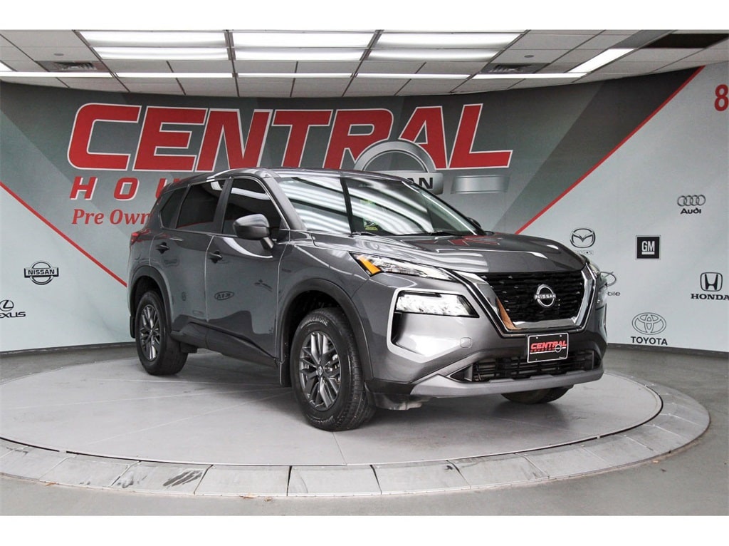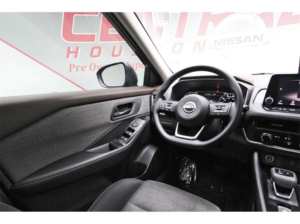 Central Houston Nissan is proud to present you with another True Market Priced Pre-Owned Vehicle. This 2022 Nissan Rogue S Nissan Certified is loaded with the following Factory Options: Nissan Certified Certified Nissan Certified Certified, 17" Aluminum Alloy Wheels, 4 Speakers, 4-Wheel Disc Brakes, 5.604 Axle Ratio, ABS brakes, Air Conditioning, Alloy wheels, AM/FM Radio, AM/FM radio: SiriusXM, Auto High-beam Headlights, Black Splash Guards (Set of 4), Blind Spot Warning, Brake assist, Bumpers: body-color, Cloth Seat Trim, Delay-off headlights, Driver door bin, Driver vanity mirror, Dual front impact airbags, Dual front side impact airbags, Electronic Stability Control, First Aid Kit, Floor Mats w/1-Piece Cargo Area Protector, Four wheel independent suspension, Front anti-roll bar, Front Bucket Seats, Front Center Armrest, Front reading lights, Fully automatic headlights, Illuminated entry, Knee airbag, Low tire pressure warning, NissanConnect featuring Apple CarPlay and Android Auto, Occupant sensing airbag, Outside temperature display, Overhead airbag, Overhead console, Panic alarm, Passenger door bin, Passenger vanity mirror, Power door mirrors, Power steering, Power windows, Radio data system, Rear anti-roll bar, Rear Parking Sensors, Rear seat center armrest, Rear side impact airbag, Rear window defroster, Rear window wiper, Remote keyless entry, Retractable Cargo Cover, Speed control, Speed-Sensitive Wipers, Split folding rear seat, Spoiler, Steering wheel mounted audio controls, Tachometer, Telescoping steering wheel, Tilt steering wheel, Traction control, Trip computer, and Variably intermittent wipers!!