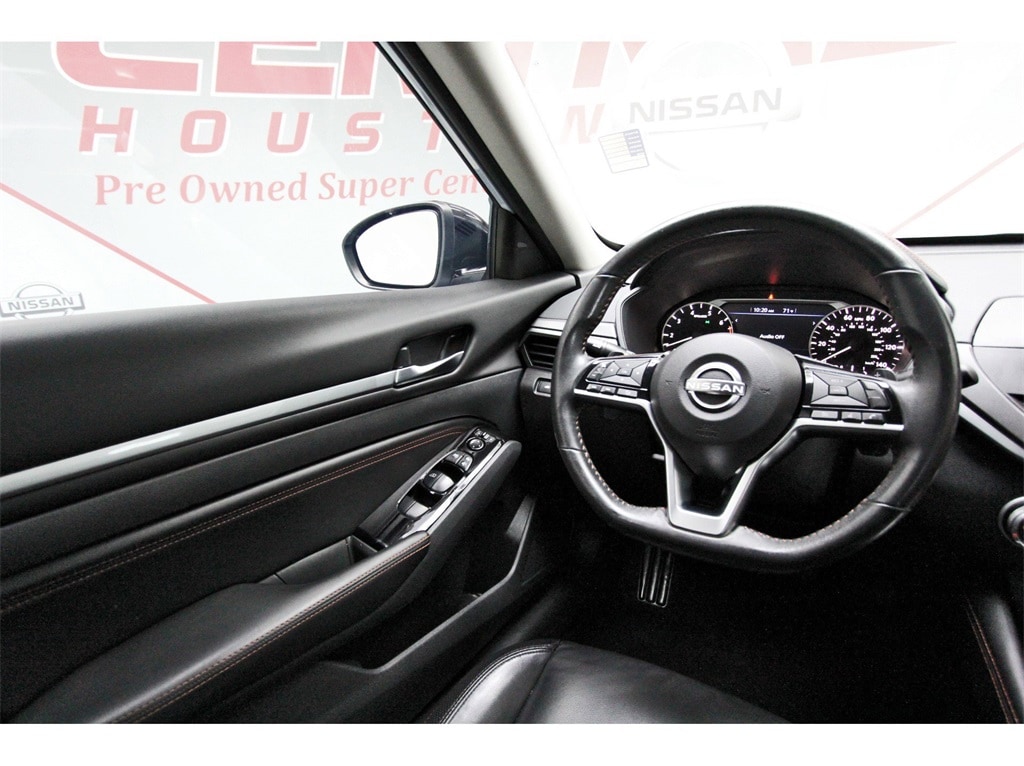 Central Houston Nissan is proud to present you with another True Market Priced Pre-Owned Vehicle. This 2023 Nissan Altima 2.5 SR Nissan Certified is loaded with the following Factory Options: Nissan Certified Certified and CVT with Xtronic Nissan Certified Certified, CVT with Xtronic, 4-Wheel Disc Brakes, 6 Speakers, ABS brakes, Air Conditioning, Alloy wheels, AM/FM radio: SiriusXM, Auto High-beam Headlights, Blind Spot Warning, Body-Colored Splash Guards, Brake assist, Bumpers: body-color, Chrome Bumper Protector, Delay-off headlights, Driver door bin, Driver vanity mirror, Dual front impact airbags, Dual front side impact airbags, Electronic Stability Control, Four wheel independent suspension, Front anti-roll bar, Front Bucket Seats, Front Center Armrest, Front reading lights, Front Sport Bucket Seats, Fully automatic headlights, Illuminated entry, Knee airbag, Leather Shift Knob, Low tire pressure warning, NissanConnect featuring Apple CarPlay and Android Auto, Occupant sensing airbag, Outside temperature display, Overhead airbag, Overhead console, Panic alarm, Passenger door bin, Passenger vanity mirror, Power door mirrors, Power driver seat, Power steering, Power windows, Radio data system, Radio: AM/FM Audio System, Rear anti-roll bar, Rear Parking Sensors, Rear reading lights, Rear seat center armrest, Rear side impact airbag, Rear window defroster, Remote keyless entry, Security system, Speed control, Speed-sensing steering, Speed-Sensitive Wipers, Split folding rear seat, Sport Seat Trim, SR Floor Mats/Trunk Mat/Hideaway Nets, Steering wheel mounted audio controls, Tachometer, Telescoping steering wheel, Tilt steering wheel, Traction control, Trip computer, Trunk Organizer Tray, Variably intermittent wipers, and Wheels: 19" Sport Alloy!!