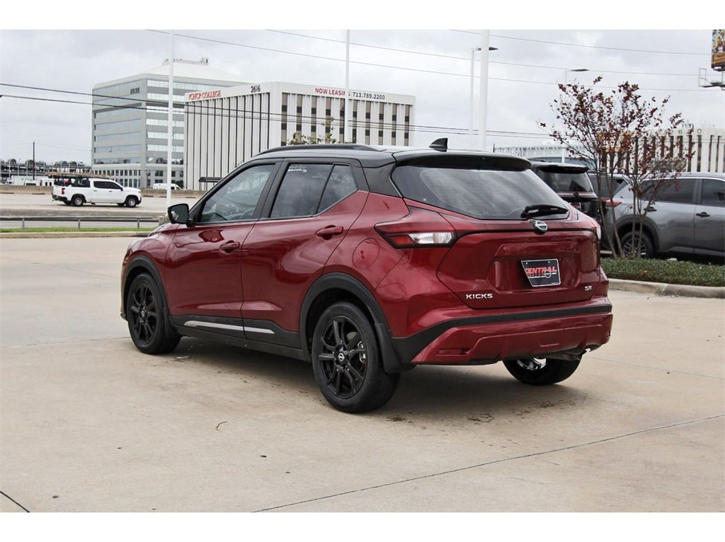Central Houston Nissan is proud to present you with another True Market Priced Pre-Owned Vehicle. This 2023 Nissan Kicks SR Nissan Certified is loaded with the following Factory Options: Nissan Certified Certified SR Premium Package (Bose Personal Plus Audio System, Heated Front Seats, Heated Steering Wheel, Prima-Tex Appointed Seat Trim, Security System, and Tonneau Cover), Technology Package (NissanConnect Services), Nissan Certified Certified, 17" Alloy Wheels, 3.93 Axle Ratio, 4-Wheel Disc Brakes, 6 Speakers, ABS brakes, Air Conditioning, Alloy wheels, AM/FM radio: SiriusXM, Apple CarPlay/Android Auto, Auto High-beam Headlights, Automatic temperature control, Blind Spot Warning, Brake assist, Bumpers: body-color, Carpeted Floor Mats w/Cargo Mat, Cloth Seat Trim, Delay-off headlights, Driver door bin, Driver vanity mirror, Dual front impact airbags, Dual front side impact airbags, Electronic Stability Control, Exterior Parking Camera Rear, Front anti-roll bar, Front Bucket Seats, Front Center Armrest, Front fog lights, Front reading lights, Front wheel independent suspension, Fully automatic headlights, Heated door mirrors, Illuminated entry, Knee airbag, Low tire pressure warning, Occupant sensing airbag, Outside temperature display, Overhead airbag, Panic alarm, Passenger door bin, Passenger vanity mirror, Power door mirrors, Power steering, Power windows, Radio data system, Radio: AM/FM Audio System, Rear Parking Sensors, Rear reading lights, Rear Roof Spoiler Credit, Rear side impact airbag, Rear window defroster, Rear window wiper, Remote keyless entry, Speed control, Splash Guards Grain (4 Piece), Split folding rear seat, Sport steering wheel, Steering wheel mounted audio controls, Tachometer, Telescoping steering wheel, Tilt steering wheel, Traction control, Trip computer, Turn signal indicator mirrors, Variably intermittent wipers, and Wheels: 17" Black Alloy!!