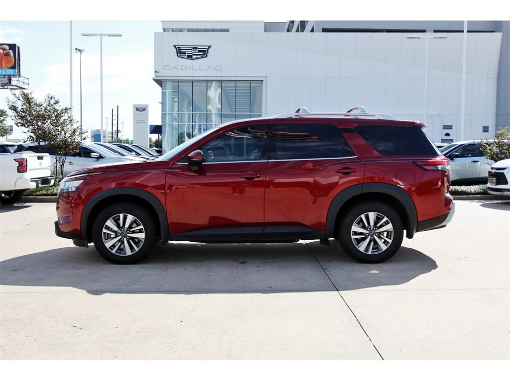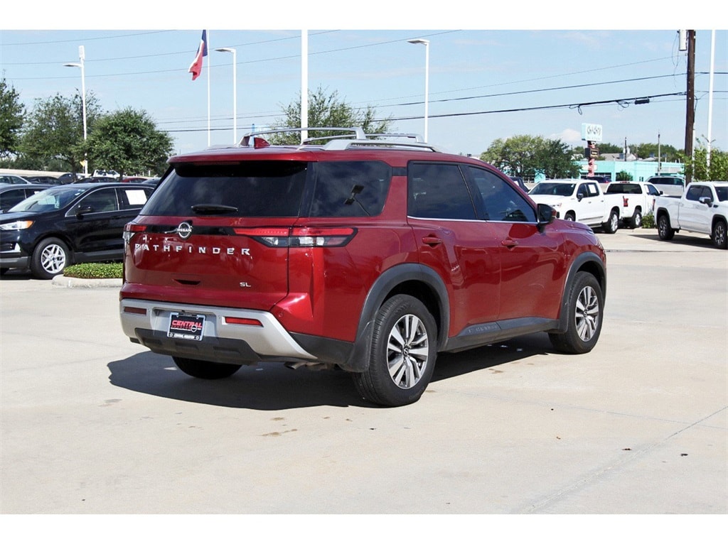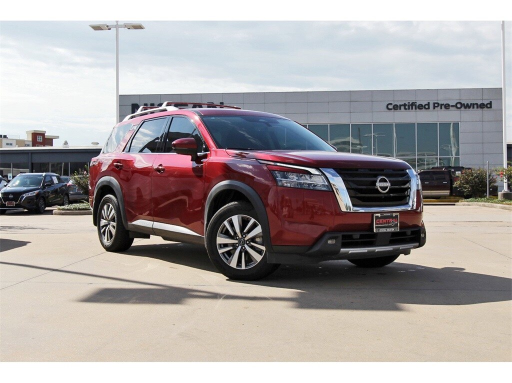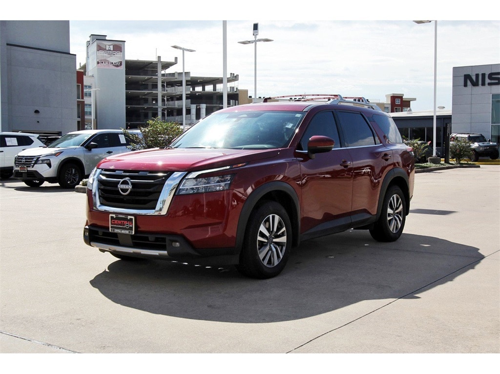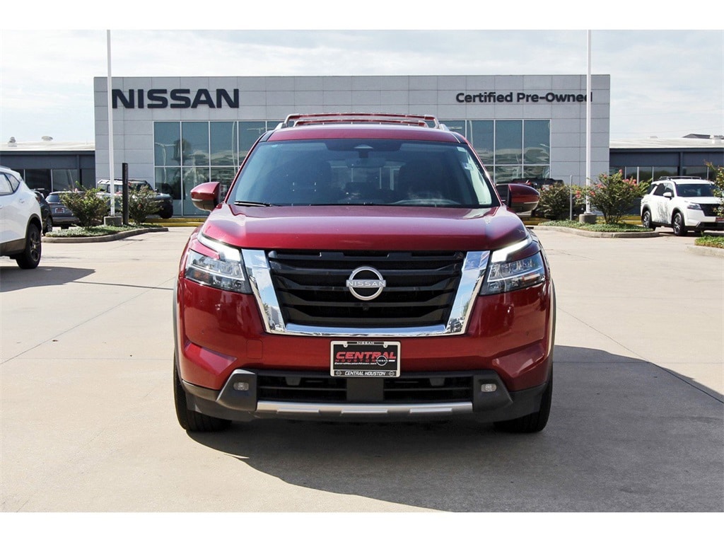 Central Houston Nissan is proud to present you with another True Market Priced Pre-Owned Vehicle. This 2023 Nissan Pathfinder SL Nissan Certified is loaded with the following Factory Options: Nissan Certified Certified Nissan Certified Certified, 18" Machined Alloy Wheels, 3rd row seats: bench, 4-Wheel Disc Brakes, 6 Speakers, ABS brakes, Air Conditioning, Alloy wheels, AM/FM radio: SiriusXM, Auto High-beam Headlights, Auto-dimming Rear-View mirror, Automatic temperature control, Axle Ratio: 4.334, Bench Seat Carpeted Floor Mats (Set of 4), Black Splash Guards (Set of 4), Bose Premium Audio System, Brake assist, Bumpers: body-color, Cross Bars, Delay-off headlights, Driver door bin, Driver vanity mirror, Dual front impact airbags, Dual front side impact airbags, Electronic Stability Control, Emergency communication system: NissanConnect Services, Exterior Parking Camera Rear, Four wheel independent suspension, Front anti-roll bar, Front Bucket Seats, Front Center Armrest, Front dual zone A/C, Front reading lights, Fully automatic headlights, Garage door transmitter: HomeLink, Heated door mirrors, Heated Front Bucket Seats, Heated front seats, Heated steering wheel, Illuminated entry, Knee airbag, Leather Seating Surfaces, Leather steering wheel, LED Fog Lamps, Low tire pressure warning, Navigation system: NissanConnect Navigation, NissanConnect w/Navigation & Services, Occupant sensing airbag, Outside temperature display, Overhead airbag, Overhead console, Panic alarm, Passenger door bin, Passenger vanity mirror, Power door mirrors, Power driver seat, Power Liftgate, Power passenger seat, Power steering, Power windows, Radio data system, Radio: AM/FM Audio System, Rear air conditioning, Rear anti-roll bar, Rear reading lights, Rear seat center armrest, Rear side impact airbag, Rear window defroster, Rear window wiper, Reclining 3rd row seat, Remote keyless entry, Security system, Speed control, Speed-sensing steering, Split folding rear seat, Spoiler, Steering wheel mounted audio controls, Tachometer, Telescoping steering wheel, Tilt steering wheel, Traction control, Trip computer, Turn signal indicator mirrors, and Variably intermittent wipers!!
