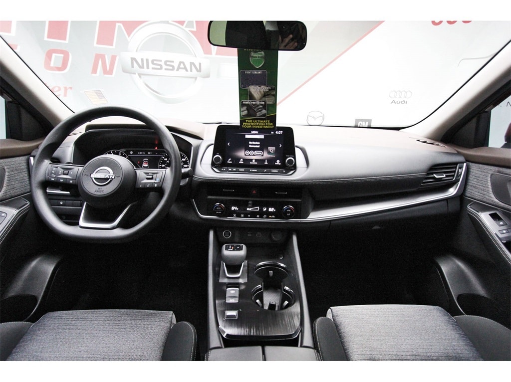 Central Houston Nissan is proud to present you with another True Market Priced Pre-Owned Vehicle. This 2023 Nissan Rogue SV Nissan Certified is loaded with the following Factory Options: Nissan Certified Certified Nissan Certified Certified, 18" Aluminum Alloy Wheels, 4-Wheel Disc Brakes, 5.604 Axle Ratio, 6 Speakers, ABS brakes, Air Conditioning, Alloy wheels, AM/FM Radio, AM/FM radio: SiriusXM, Auto High-beam Headlights, Automatic temperature control, Black Splash Guards (Set of 4), Brake assist, Bumpers: body-color, Chrome Rear Bumper Protector, Cloth Seat Trim, Delay-off headlights, Driver door bin, Driver vanity mirror, Dual front impact airbags, Dual front side impact airbags, Electronic Stability Control, Emergency communication system: NissanConnect Services, Floor Mats w/1-Piece Cargo Area Protector, Four wheel independent suspension, Front anti-roll bar, Front Bucket Seats, Front Center Armrest, Front dual zone A/C, Front reading lights, Fully automatic headlights, Heated door mirrors, Illuminated entry, Knee airbag, Low tire pressure warning, NissanConnect featuring Apple CarPlay and Android Auto, Occupant sensing airbag, Outside temperature display, Overhead airbag, Overhead console, Panic alarm, Passenger door bin, Passenger vanity mirror, Power door mirrors, Power driver seat, Power steering, Power windows, Radio data system, Rear anti-roll bar, Rear Parking Sensors, Rear seat center armrest, Rear side impact airbag, Rear window defroster, Rear window wiper, Remote keyless entry, Speed control, Speed-Sensitive Wipers, Split folding rear seat, Spoiler, Steering wheel mounted audio controls, Tachometer, Telescoping steering wheel, Tilt steering wheel, Traction control, Trip computer, USB Charging Cable Set - Nissan, and Variably intermittent wipers!!
