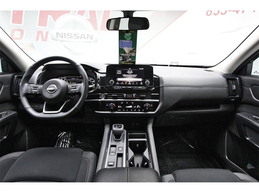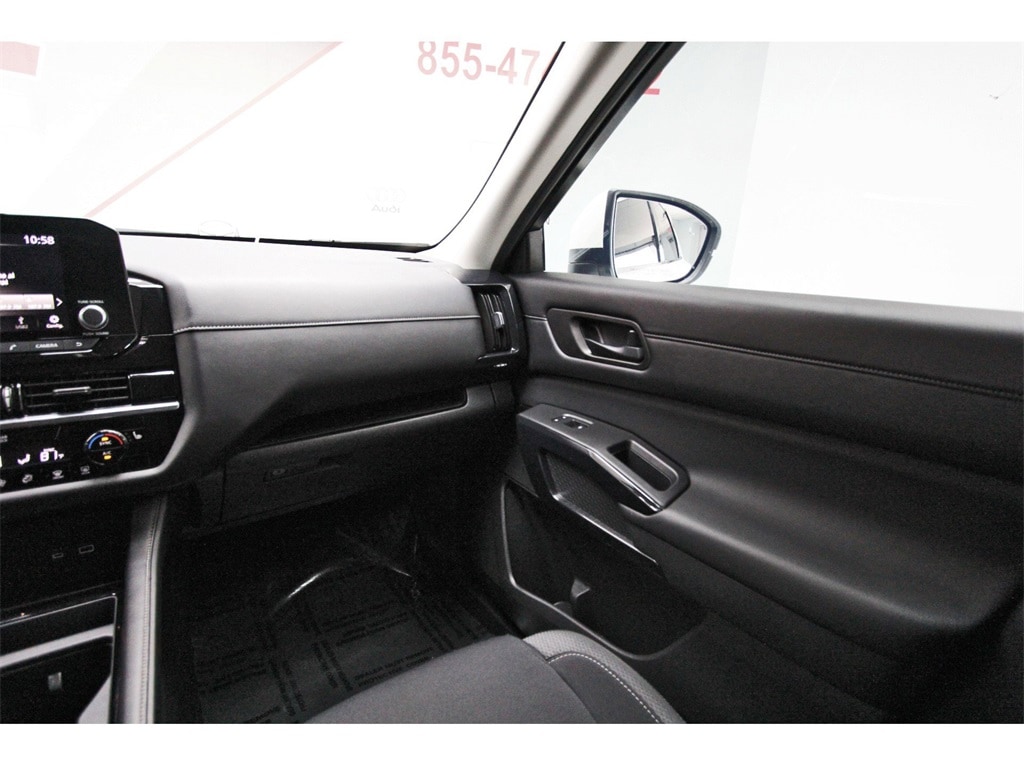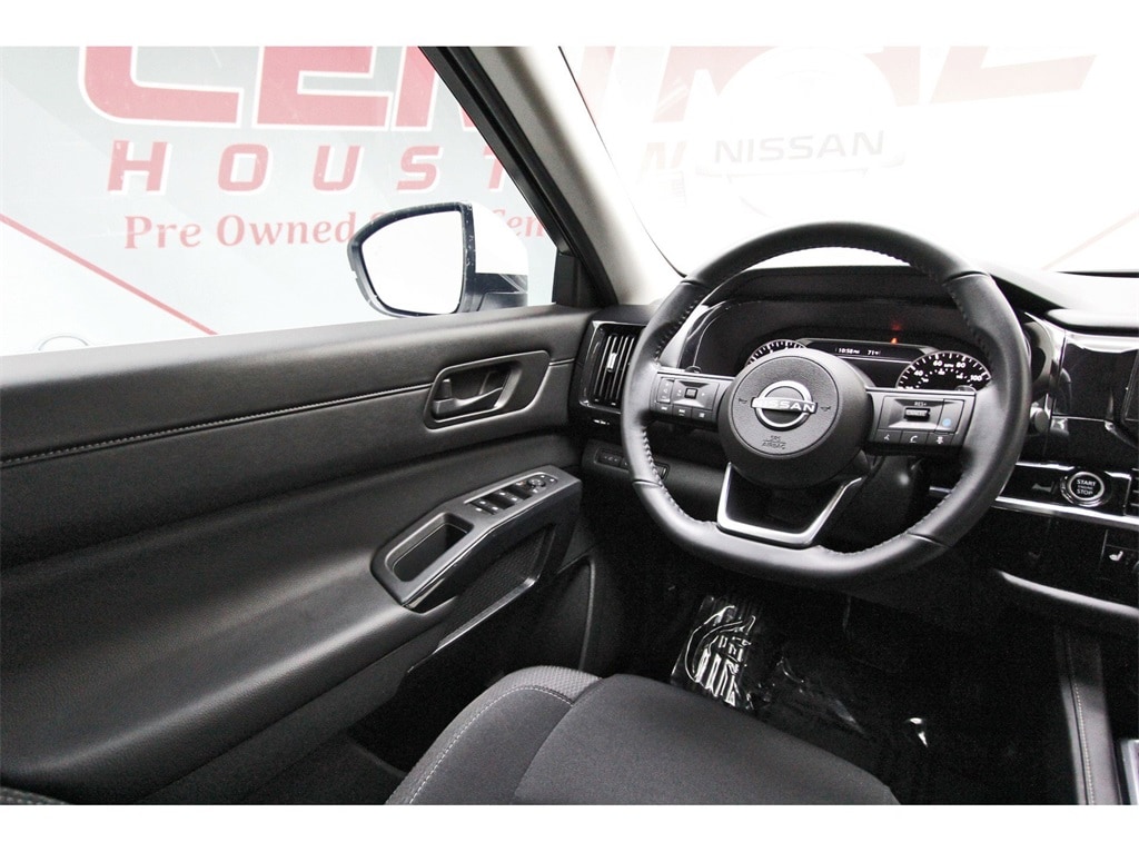 Central Houston Nissan is proud to present you with another True Market Priced Pre-Owned Vehicle. This 2024 Nissan Pathfinder SV Nissan Certified is loaded with the following Factory Options: Nissan Certified Certified Black Appearance Package (Black Grille (K10) and Black Liftgate Emblems), Nissan Certified Certified, 3rd row seats: bench, 4-Wheel Disc Brakes, 6 Speakers, ABS brakes, Air Conditioning, Alloy wheels, AM/FM radio: SiriusXM, Auto High-beam Headlights, Automatic temperature control, Axle Ratio: 4.334, Bench Seat Carpeted Floor Mats (Set of 4), Black Splash Guards (Set of 4), Brake assist, Bumpers: body-color, Cloth Seating Surfaces, Cross Bars, Delay-off headlights, Driver door bin, Driver vanity mirror, Dual front impact airbags, Dual front side impact airbags, Electronic Stability Control, Emergency communication system, Four wheel independent suspension, Front anti-roll bar, Front Bucket Seats, Front Center Armrest, Front dual zone A/C, Front reading lights, Fully automatic headlights, Heated door mirrors, Heated Front Bucket Seats, Heated front seats, Illuminated entry, Knee airbag, Leather steering wheel, Low tire pressure warning, NissanConnect featuring Apple CarPlay and Android Auto, Occupant sensing airbag, Outside temperature display, Overhead airbag, Overhead console, Panic alarm, Passenger door bin, Passenger vanity mirror, Power door mirrors, Power driver seat, Power steering, Power windows, Radio data system, Radio: AM/FM Audio System w/NissanConnect, Rear air conditioning, Rear anti-roll bar, Rear Parking Sensors, Rear reading lights, Rear seat center armrest, Rear side impact airbag, Rear window defroster, Rear window wiper, Reclining 3rd row seat, Remote keyless entry, Security system, Speed control, Speed-sensing steering, Split folding rear seat, Spoiler, Steering wheel mounted audio controls, Tachometer, Telescoping steering wheel, Tilt steering wheel, Traction control, Trip computer, Turn signal indicator mirrors, Variably intermittent wipers, and Wheels: 18" x 8J Painted Alloy!!