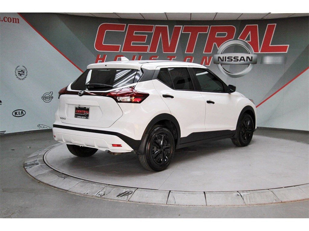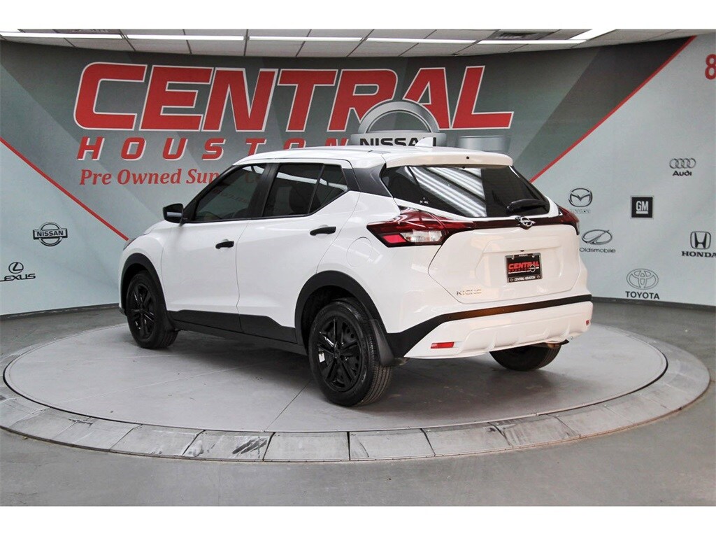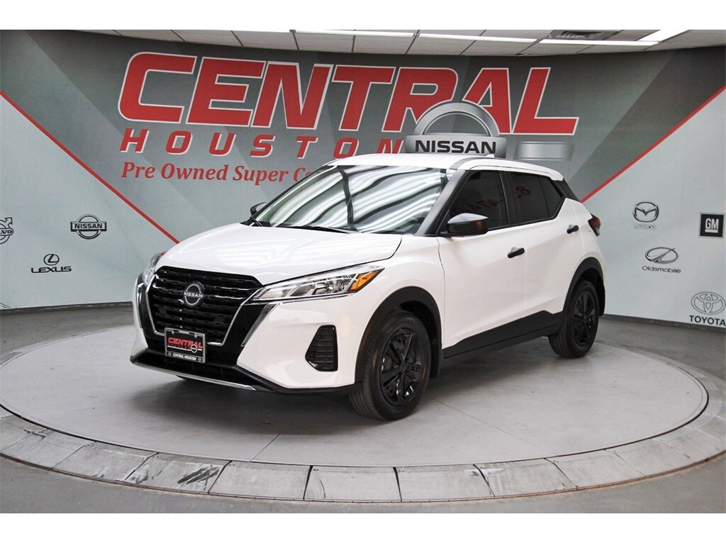 Central Houston Nissan is proud to present you with another True Market Priced Pre-Owned Vehicle. This 2025 Nissan Kicks Play S Nissan Certified is loaded with the following Factory Options: Nissan Certified Certified Nissan Certified Certified, 16" Steel Wheels with Full Covers, 6 Speakers, ABS brakes, Air Conditioning, AM/FM Audio System, AM/FM radio, Apple CarPlay/Android Auto, Auto High-beam Headlights, Blind Spot Warning, Brake assist, Bumpers: body-color, Carpeted Floor Mats with Cargo Mat, Center Armrest with Storage, Cloth Seat Trim with Single Stitch, Driver door bin, Driver vanity mirror, Driver's Seat Mounted Armrest, Dual front impact airbags, Dual front side impact airbags, Electronic Stability Control, Front anti-roll bar, Front Bucket Seats, Front reading lights, Front wheel independent suspension, Fully automatic headlights, Illuminated entry, Knee airbag, Low tire pressure warning, Occupant sensing airbag, Outside temperature display, Overhead airbag, Panic alarm, Passenger door bin, Passenger vanity mirror, Power door mirrors, Power steering, Power windows, Radio data system, Rear Parking Sensors, Rear reading lights, Rear side impact airbag, Rear window defroster, Rear window wiper, Remote keyless entry, Speed control, Splash Guards Grain (4 Piece), Split folding rear seat, Sport steering wheel, Steering wheel mounted audio controls, Tachometer, Telescoping steering wheel, Tilt steering wheel, Traction control, Trip computer, and Variably intermittent wipers!!