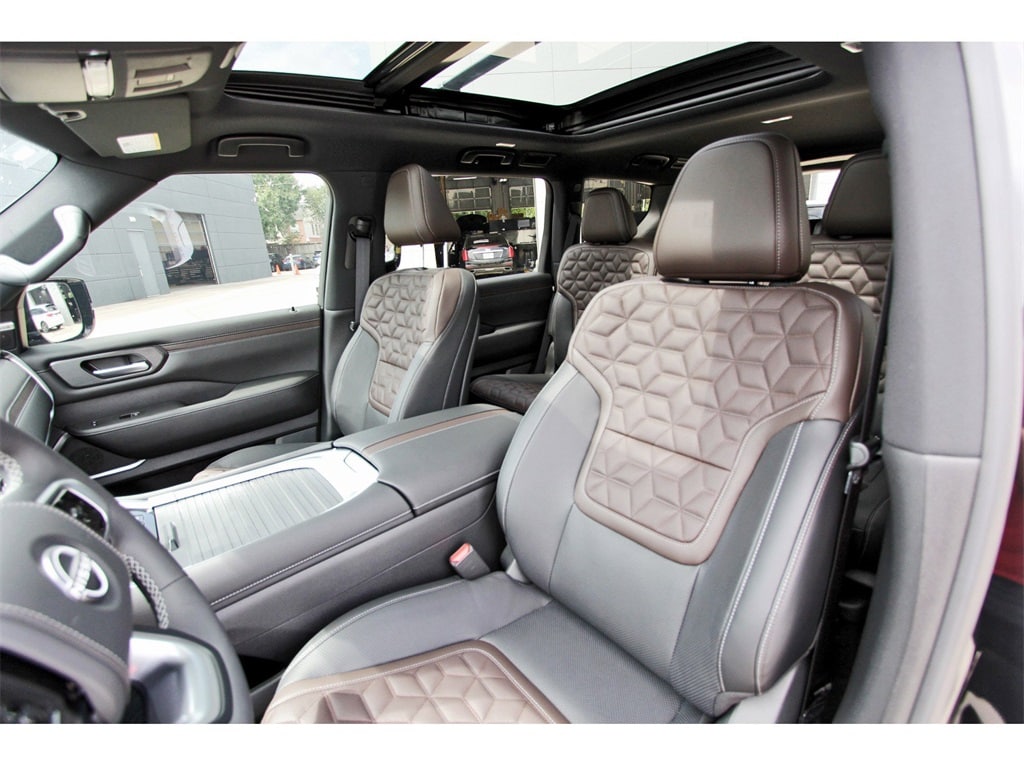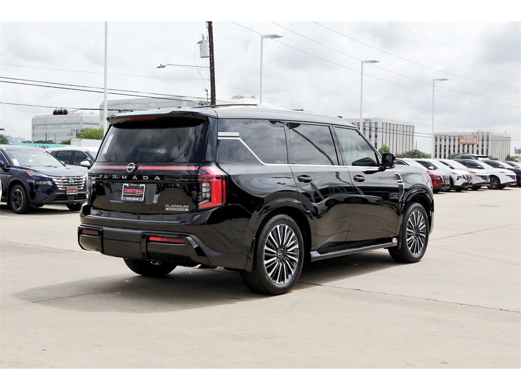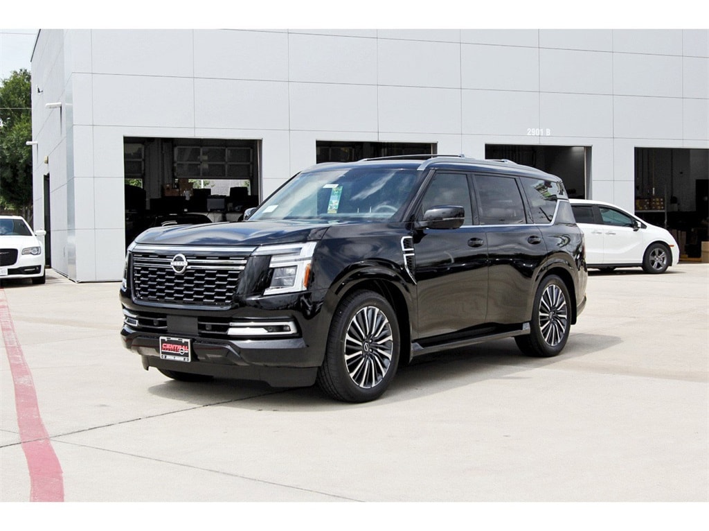 Central Houston Nissan is proud to present you with another True Market Priced Vehicle. This 2025 Nissan Armada Platinum Reserve is loaded with the following Factory Options: 4WD 4WD, 12 Speakers, 3rd row seats: split-bench, 4-Wheel Disc Brakes, ABS brakes, Adaptive suspension, Air Conditioning, Alloy wheels, AM/FM radio: SiriusXM, Anti-whiplash front head restraints, Auto High-beam Headlights, Auto tilt-away steering wheel, Auto-dimming door mirrors, Auto-dimming Rear-View mirror, Auto-leveling suspension, Automatic temperature control, Brake assist, Bumpers: body-color, Climate Controlled Heated & Ventilated Front Seats, Delay-off headlights, Driver door bin, Driver vanity mirror, Dual front impact airbags, Dual front side impact airbags, Electronic Stability Control, Emergency communication system: NissanConnect Services, Four wheel independent suspension, Front anti-roll bar, Front Bucket Seats, Front Center Armrest, Front dual zone A/C, Front fog lights, Front reading lights, Fully automatic headlights, Garage door transmitter: myQ Connected Garage, Genuine wood dashboard insert, Heads-Up Display, Heated door mirrors, Heated front seats, Heated rear seats, Heated steering wheel, HVAC memory, Illuminated entry, Knee airbag, Leather steering wheel, Low tire pressure warning, Memory seat, Navigation System, Occupant sensing airbag, Outside temperature display, Overhead airbag, Overhead console, Panic alarm, Passenger door bin, Passenger vanity mirror, Power door mirrors, Power driver seat, Power Liftgate, Power moonroof, Power passenger seat, Power steering, Power windows, Quilted Leather Seat Trim, Radio: NissanConnect w/SiriusXM 360L, Rain sensing wipers, Rear air conditioning, Rear anti-roll bar, Rear reading lights, Rear window defroster, Rear window wiper, Reclining 3rd row seat, Remote keyless entry, Security system, Speed control, Speed-sensing steering, Speed-Sensitive Wipers, Split folding rear seat, Spoiler, Steering wheel memory, Steering wheel mounted audio controls, Tachometer, Telescoping steering wheel, Tilt steering wheel, Traction control, Trip computer, Turn signal indicator mirrors, Variably intermittent wipers, Ventilated front seats, Voltmeter, and Wheels: 22" Painted Alloy!!