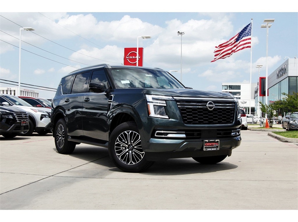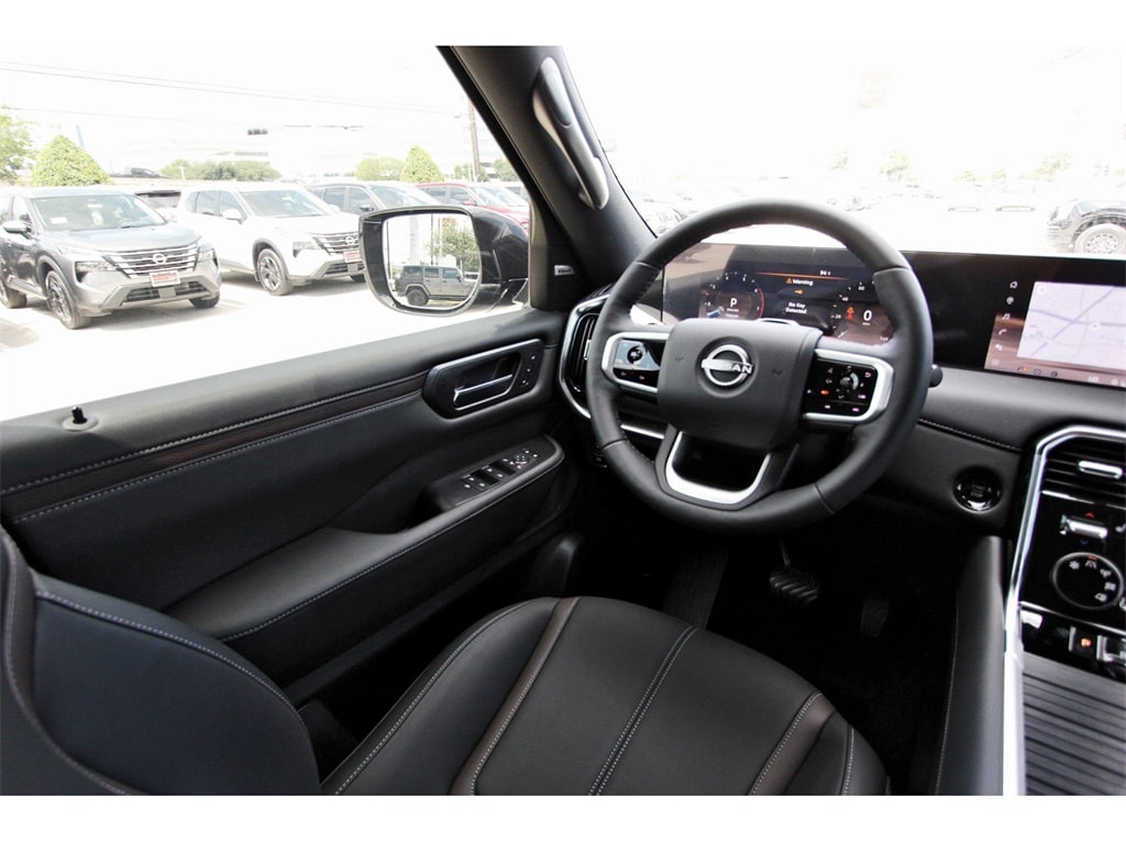 Central Houston Nissan is proud to present you with another True Market Priced Vehicle. This 2025 Nissan Armada SL is loaded with the following Factory Options: 12 Speakers, 20" Painted Alloy Wheels, 3rd row seats: split-bench, 4-Wheel Disc Brakes, ABS brakes, Air Conditioning, Alloy wheels, AM/FM radio: SiriusXM, Anti-whiplash front head restraints, Auto High-beam Headlights, Auto tilt-away steering wheel, Auto-dimming door mirrors, Auto-dimming Rear-View mirror, Auto-leveling suspension, Automatic temperature control, Brake assist, Bumpers: body-color, Delay-off headlights, Driver door bin, Driver vanity mirror, Dual front impact airbags, Dual front side impact airbags, Electronic Stability Control, Emergency communication system: NissanConnect Services, Four wheel independent suspension, Front anti-roll bar, Front Bucket Seats, Front Center Armrest, Front dual zone A/C, Front reading lights, Fully automatic headlights, Garage door transmitter: myQ Connected Garage, Genuine wood dashboard insert, Heated door mirrors, Heated Front Bucket Seats, Heated front seats, Heated steering wheel, HVAC memory, Illuminated entry, Knee airbag, Leather steering wheel, Low tire pressure warning, Memory seat, Navigation System, Occupant sensing airbag, Outside temperature display, Overhead airbag, Overhead console, Panic alarm, Passenger door bin, Passenger vanity mirror, Power door mirrors, Power driver seat, Power Liftgate, Power passenger seat, Power steering, Power windows, Radio: NissanConnect w/SiriusXM 360L, Rain sensing wipers, Rear air conditioning, Rear anti-roll bar, Rear reading lights, Rear seat center armrest, Rear window defroster, Rear window wiper, Reclining 3rd row seat, Remote keyless entry, Security system, Speed control, Speed-sensing steering, Speed-Sensitive Wipers, Split folding rear seat, Spoiler, Steering wheel memory, Steering wheel mounted audio controls, Tachometer, TailorFit Seat Trim, Telescoping steering wheel, Tilt steering wheel, Traction control, Trip computer, Turn signal indicator mirrors, Variably intermittent wipers, and Voltmeter!!
