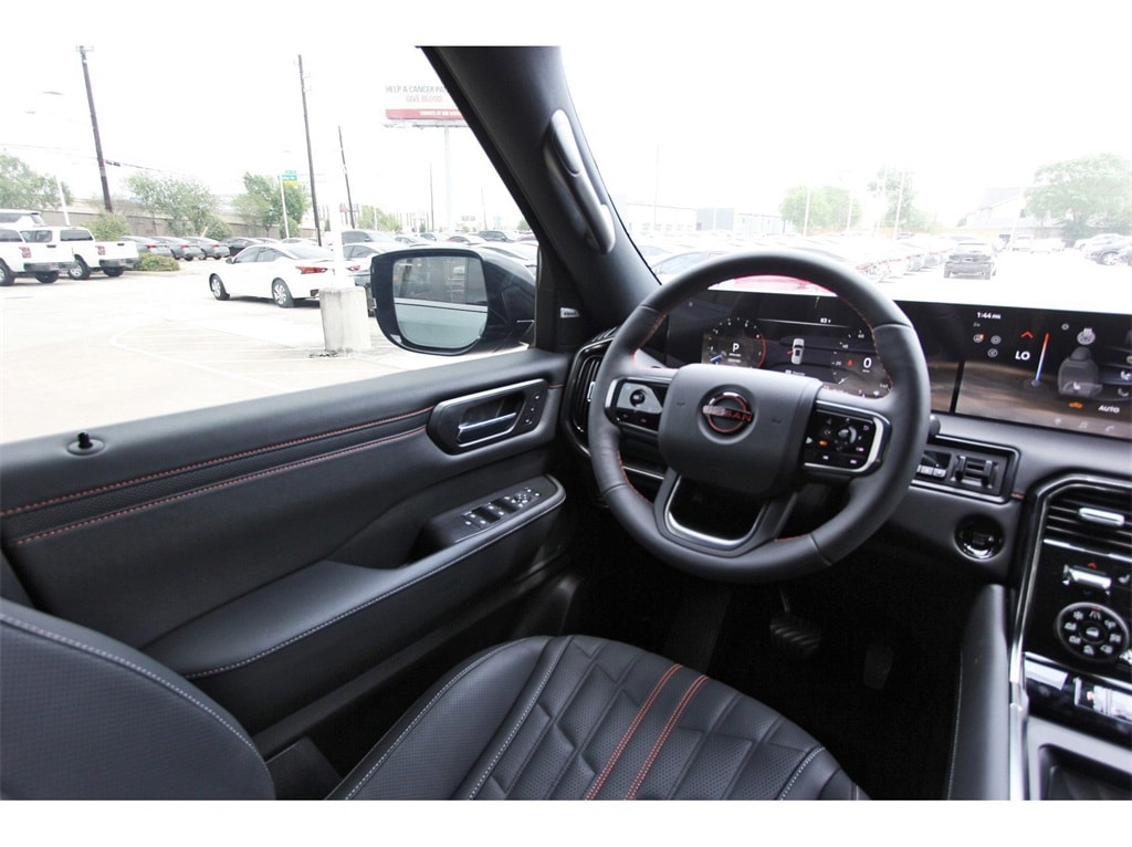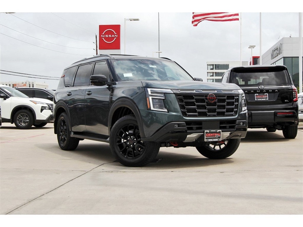Central Houston Nissan is proud to present you with another True Market Priced Vehicle. This 2025 Nissan Armada PRO-4X is loaded with the following Factory Options: 4WD 4WD, 12 Speakers, 3rd row seats: split-bench, 4-Wheel Disc Brakes, ABS brakes, Adaptive suspension, Air Conditioning, Alloy wheels, AM/FM radio: SiriusXM, Anti-whiplash front head restraints, Auto High-beam Headlights, Auto tilt-away steering wheel, Auto-dimming door mirrors, Auto-dimming Rear-View mirror, Auto-leveling suspension, Automatic temperature control, Brake assist, Bumpers: body-color, Delay-off headlights, Driver door bin, Driver vanity mirror, Dual front impact airbags, Dual front side impact airbags, Electronic Stability Control, Emergency communication system: NissanConnect Services, Four wheel independent suspension, Front anti-roll bar, Front Bucket Seats, Front Center Armrest, Front dual zone A/C, Front fog lights, Front reading lights, Fully automatic headlights, Garage door transmitter: myQ Connected Garage, Genuine wood dashboard insert, Heated door mirrors, Heated Front Bucket Seats, Heated front seats, Heated steering wheel, HVAC memory, Illuminated entry, Knee airbag, Leather steering wheel, Low tire pressure warning, Memory seat, Navigation System, Occupant sensing airbag, Outside temperature display, Overhead airbag, Overhead console, Panic alarm, Passenger door bin, Passenger vanity mirror, Power door mirrors, Power driver seat, Power Liftgate, Power passenger seat, Power steering, Power windows, PRO-4X Unique Quilted Leather Seat Trim, Radio: NissanConnect w/SiriusXM 360L, Rain sensing wipers, Rear air conditioning, Rear anti-roll bar, Rear reading lights, Rear seat center armrest, Rear window defroster, Rear window wiper, Reclining 3rd row seat, Remote keyless entry, Security system, Speed control, Speed-sensing steering, Speed-Sensitive Wipers, Split folding rear seat, Spoiler, Steering wheel memory, Steering wheel mounted audio controls, Tachometer, Telescoping steering wheel, Tilt steering wheel, Traction control, Trip computer, Turn signal indicator mirrors, Variably intermittent wipers, Voltmeter, and Wheels: 20" Painted PRO-4X Alloy!!