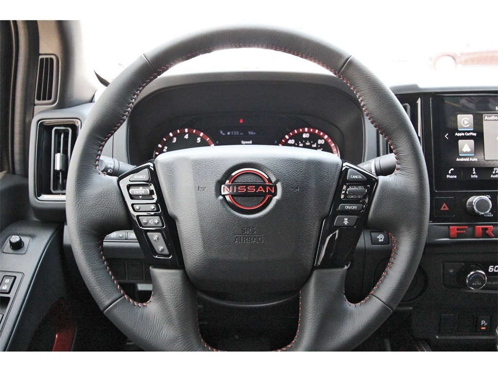 Central Houston Nissan is proud to present you with another True Market Priced Vehicle. This 2025 Nissan Frontier PRO-X is loaded with the following Factory Options: 17" Painted Alloy Wheels, 3.692 Axle Ratio, 4-Wheel Disc Brakes, 6 Speakers, ABS brakes, Air Conditioning, Alloy wheels, AM/FM radio: SiriusXM, Anti-whiplash front head restraints, Auto High-beam Headlights, Automatic temperature control, Blind Spot Warning, Brake assist, Bumpers: body-color, Delay-off headlights, Driver door bin, Driver vanity mirror, Dual front impact airbags, Dual front side impact airbags, Electronic Stability Control, Emergency communication system, Front anti-roll bar, Front Bucket Seats, Front Center Armrest, Front dual zone A/C, Front fog lights, Front reading lights, Front wheel independent suspension, Fully automatic headlights, Illuminated entry, Knee airbag, Leather Shift Knob, Leather steering wheel, Low tire pressure warning, Occupant sensing airbag, Overhead airbag, Overhead console, Panic alarm, Passenger door bin, Passenger vanity mirror, Power door mirrors, Power driver seat, Power passenger seat, Power steering, Power windows, PRO Embroidered Premium Cloth Seat Trim, Radio data system, Radio: SXM/AM/FM/AUX/USB Audio System, Rear anti-roll bar, Rear seat center armrest, Rear side impact airbag, Rear step bumper, Remote keyless entry, Security system, Speed control, Speed-sensing steering, Split folding rear seat, Steering wheel mounted audio controls, Tachometer, Telescoping steering wheel, Tilt steering wheel, Traction control, Trip computer, Variably intermittent wipers, Voltmeter, and Wireless Apple CarPlay/Wireless Android Auto!!