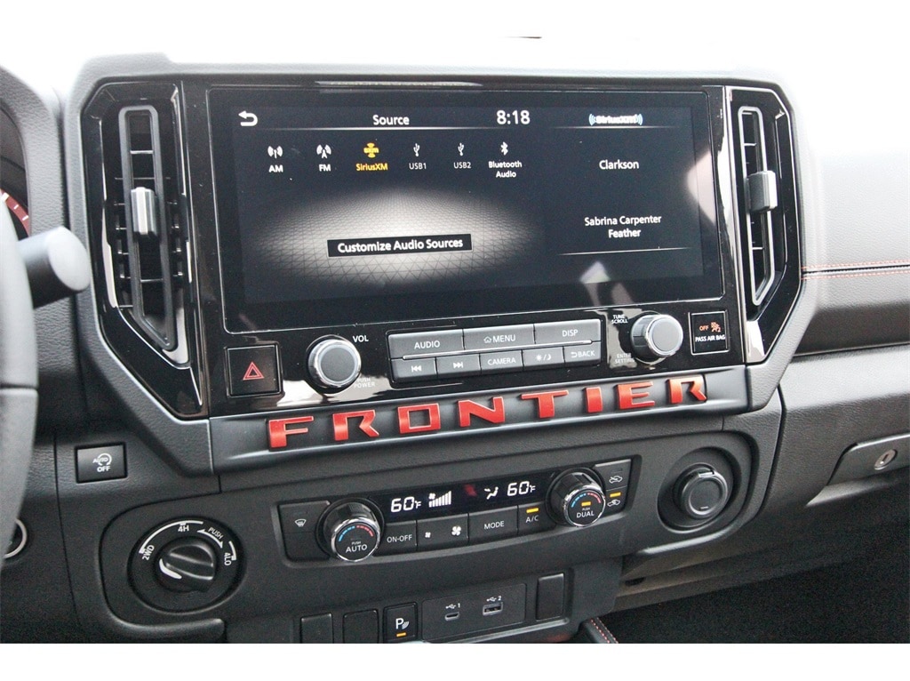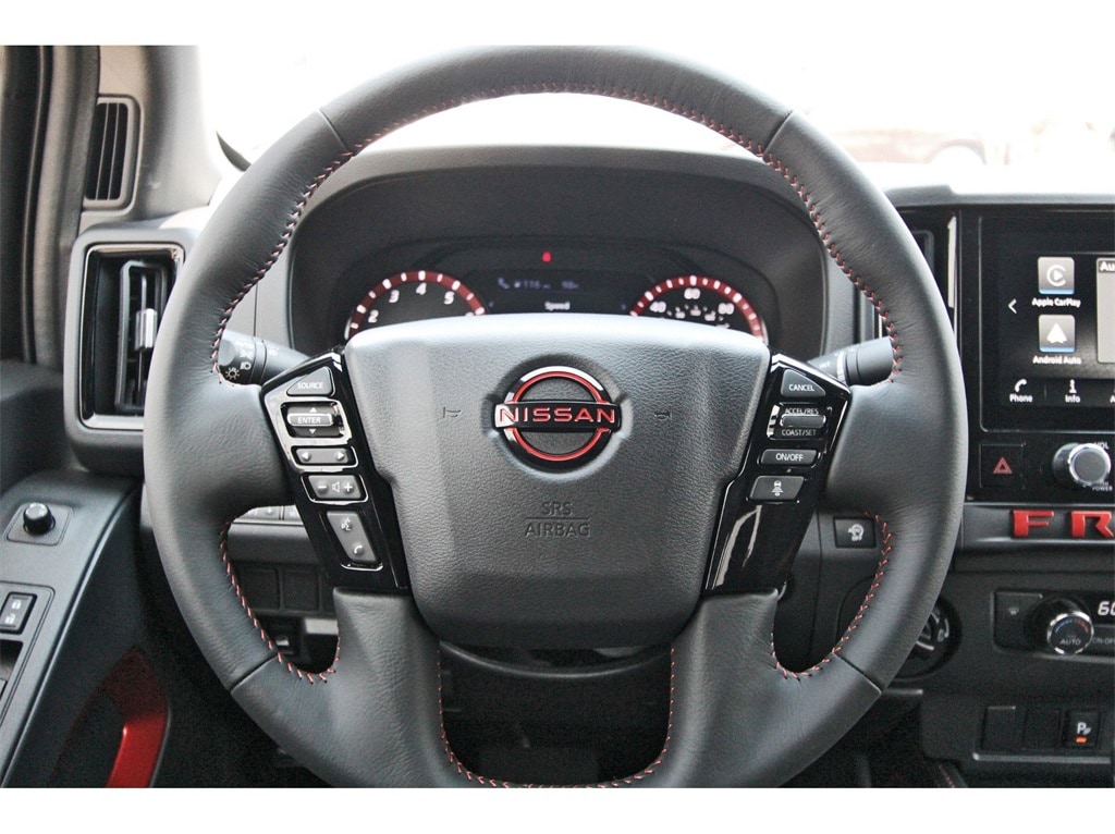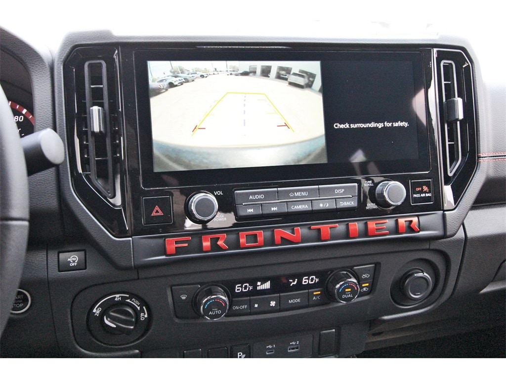 Central Houston Nissan is proud to present you with another True Market Priced Vehicle. This 2025 Nissan Frontier PRO-4X is loaded with the following Factory Options: 4WD 4WD, 17" Painted Alloy Wheels, 3.692 Axle Ratio, 4-Wheel Disc Brakes, 6 Speakers, ABS brakes, Air Conditioning, Alloy wheels, AM/FM radio: SiriusXM, Anti-whiplash front head restraints, Auto High-beam Headlights, Automatic temperature control, Blind Spot Warning, Brake assist, Bumpers: body-color, Delay-off headlights, Driver door bin, Driver vanity mirror, Dual front impact airbags, Dual front side impact airbags, Electronic Stability Control, Emergency communication system, Front anti-roll bar, Front Bucket Seats, Front Center Armrest, Front dual zone A/C, Front fog lights, Front reading lights, Front wheel independent suspension, Fully automatic headlights, Illuminated entry, Knee airbag, Leather Shift Knob, Leather steering wheel, Low tire pressure warning, Occupant sensing airbag, Overhead airbag, Overhead console, Panic alarm, Passenger door bin, Passenger vanity mirror, Power door mirrors, Power driver seat, Power passenger seat, Power steering, Power windows, Premium Paint, PRO Embroidered Premium Cloth Seat Trim, PRO-4X Carpeted Floor Mats (DISC), Radio data system, Radio: SXM/AM/FM/AUX/USB Audio System, Rear anti-roll bar, Rear seat center armrest, Rear side impact airbag, Rear step bumper, Remote Engine Starter, Remote keyless entry, Security system, Speed control, Speed-sensing steering, Split folding rear seat, Steering wheel mounted audio controls, Tachometer, Telescoping steering wheel, Tilt steering wheel, Traction control, Trip computer, Variably intermittent wipers, Voltmeter, and Wireless Apple CarPlay/Wireless Android Auto!!