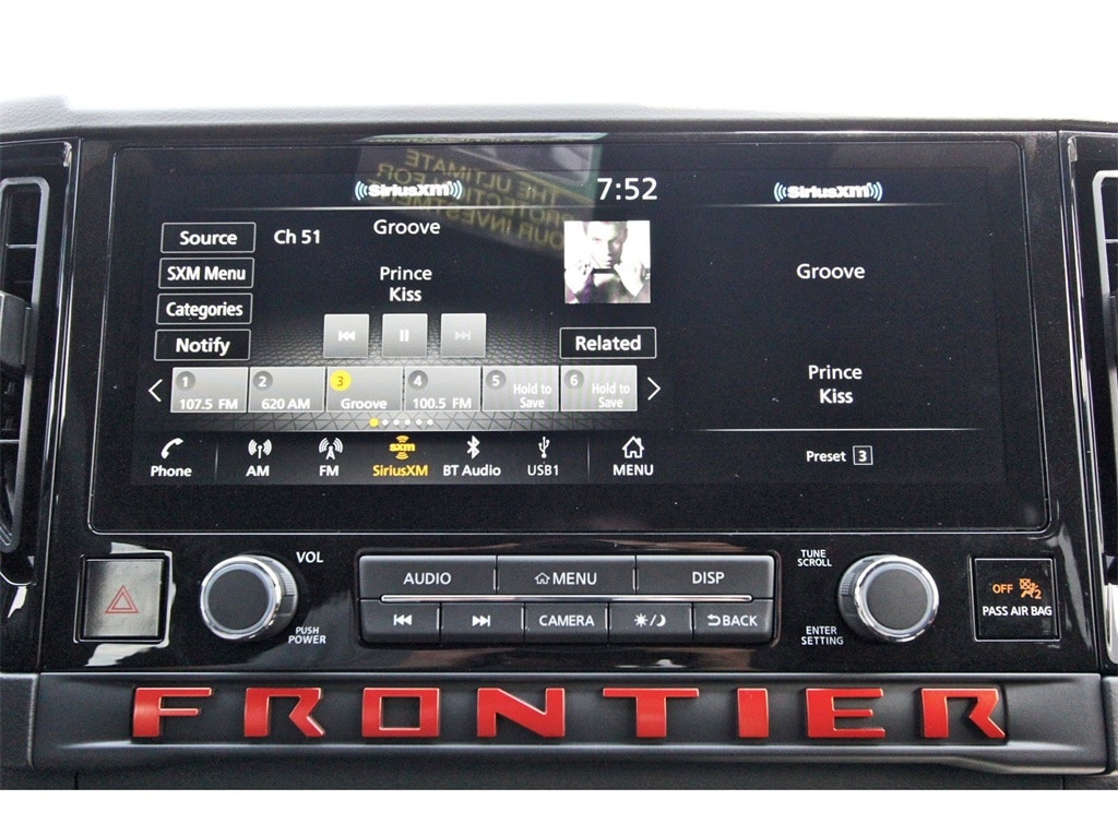 Central Houston Nissan is proud to present you with another True Market Priced Vehicle. This 2025 Nissan Frontier PRO-X is loaded with the following Factory Options: Tow Package (T11) (DISC), 17" Painted Alloy Wheels, 3.692 Axle Ratio, 4-Wheel Disc Brakes, 6 Speakers, ABS brakes, Air Conditioning, Alloy wheels, AM/FM radio: SiriusXM, Anti-whiplash front head restraints, Auto High-beam Headlights, Automatic temperature control, Blind Spot Warning, Brake assist, Bumpers: body-color, Delay-off headlights, Driver door bin, Driver vanity mirror, Dual front impact airbags, Dual front side impact airbags, Electronic Stability Control, Emergency communication system, Front anti-roll bar, Front Bucket Seats, Front Center Armrest, Front dual zone A/C, Front fog lights, Front reading lights, Front wheel independent suspension, Fully automatic headlights, Illuminated entry, Knee airbag, Leather Shift Knob, Leather steering wheel, Low tire pressure warning, Occupant sensing airbag, Overhead airbag, Overhead console, Panic alarm, Passenger door bin, Passenger vanity mirror, Power door mirrors, Power driver seat, Power passenger seat, Power steering, Power windows, Premium Paint, PRO Embroidered Premium Cloth Seat Trim, Radio data system, Radio: SXM/AM/FM/AUX/USB Audio System, Rear anti-roll bar, Rear seat center armrest, Rear side impact airbag, Rear step bumper, Remote keyless entry, Security system, Speed control, Speed-sensing steering, Split folding rear seat, Steering wheel mounted audio controls, Tachometer, Telescoping steering wheel, Tilt steering wheel, Traction control, Trip computer, Variably intermittent wipers, Voltmeter, and Wireless Apple CarPlay/Wireless Android Auto!!