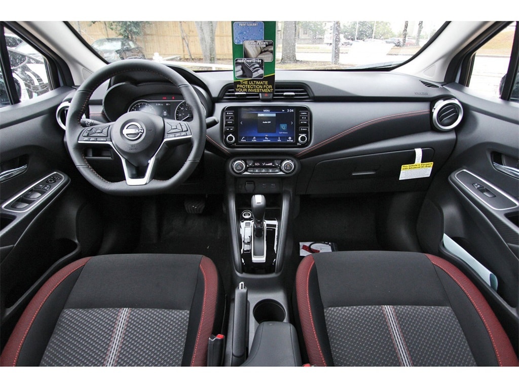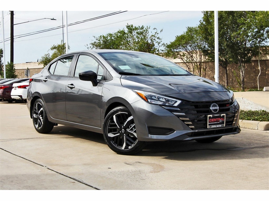 Central Houston Nissan is proud to present you with another True Market Priced Vehicle. This 2025 Nissan Versa 1.6 SR is loaded with the following Factory Options: Trunk Package (Shopping Bag Hooks and Trunk Net), 17" Aluminum Alloy Wheels, 6 Speakers, ABS brakes, Air Conditioning, Alloy wheels, AM/FM radio: SiriusXM, Apple CarPlay/Android Auto, Auto High-beam Headlights, Automatic temperature control, Blind Spot Warning, Brake assist, Bumpers: body-color, Carpeted Floor Mats & Trunk Mat (5-Piece Set), Delay-off headlights, Driver door bin, Driver vanity mirror, Dual front impact airbags, Dual front side impact airbags, Electronic Stability Control, Emergency communication system, Front anti-roll bar, Front Bucket Seats, Front Center Armrest, Front reading lights, Front wheel independent suspension, Fully automatic headlights, Heated door mirrors, Heated Front Bucket Seats, Heated front seats, Illuminated entry, Knee airbag, Leather steering wheel, Low tire pressure warning, Occupant sensing airbag, Outside temperature display, Overhead airbag, Panic alarm, Passenger door bin, Passenger vanity mirror, Power door mirrors, Power steering, Power windows, Radio data system, Radio: AM/FM Audio System, Rear Parking Sensors, Rear side impact airbag, Rear window defroster, Remote keyless entry, Speed control, Splash Guards, Split folding rear seat, Spoiler, SR Fabric Seat Trim, Steering wheel mounted audio controls, Tachometer, Telescoping steering wheel, Tilt steering wheel, Traction control, Trip computer, Turn signal indicator mirrors, and Variably intermittent wipers!!