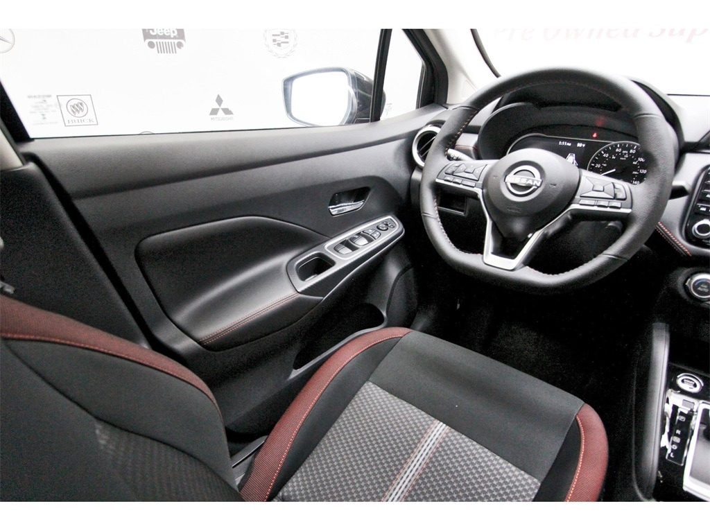 Central Houston Nissan is proud to present you with another True Market Priced Vehicle. This 2025 Nissan Versa 1.6 SR is loaded with the following Factory Options: Trunk Package (Shopping Bag Hooks and Trunk Net), 17" Aluminum Alloy Wheels, 6 Speakers, ABS brakes, Air Conditioning, Alloy wheels, AM/FM radio: SiriusXM, Apple CarPlay/Android Auto, Auto High-beam Headlights, Automatic temperature control, Blind Spot Warning, Brake assist, Bumpers: body-color, Carpeted Floor Mats & Trunk Mat (5-Piece Set), Delay-off headlights, Driver door bin, Driver vanity mirror, Dual front impact airbags, Dual front side impact airbags, Electronic Stability Control, Emergency communication system, Front anti-roll bar, Front Bucket Seats, Front Center Armrest, Front reading lights, Front wheel independent suspension, Fully automatic headlights, Heated door mirrors, Heated Front Bucket Seats, Heated front seats, Illuminated entry, Knee airbag, Leather steering wheel, Low tire pressure warning, Occupant sensing airbag, Outside temperature display, Overhead airbag, Panic alarm, Passenger door bin, Passenger vanity mirror, Power door mirrors, Power steering, Power windows, Radio data system, Radio: AM/FM Audio System, Rear Parking Sensors, Rear side impact airbag, Rear window defroster, Remote keyless entry, Speed control, Splash Guards, Split folding rear seat, Spoiler, SR Fabric Seat Trim, Steering wheel mounted audio controls, Tachometer, Telescoping steering wheel, Tilt steering wheel, Traction control, Trip computer, Turn signal indicator mirrors, and Variably intermittent wipers!!