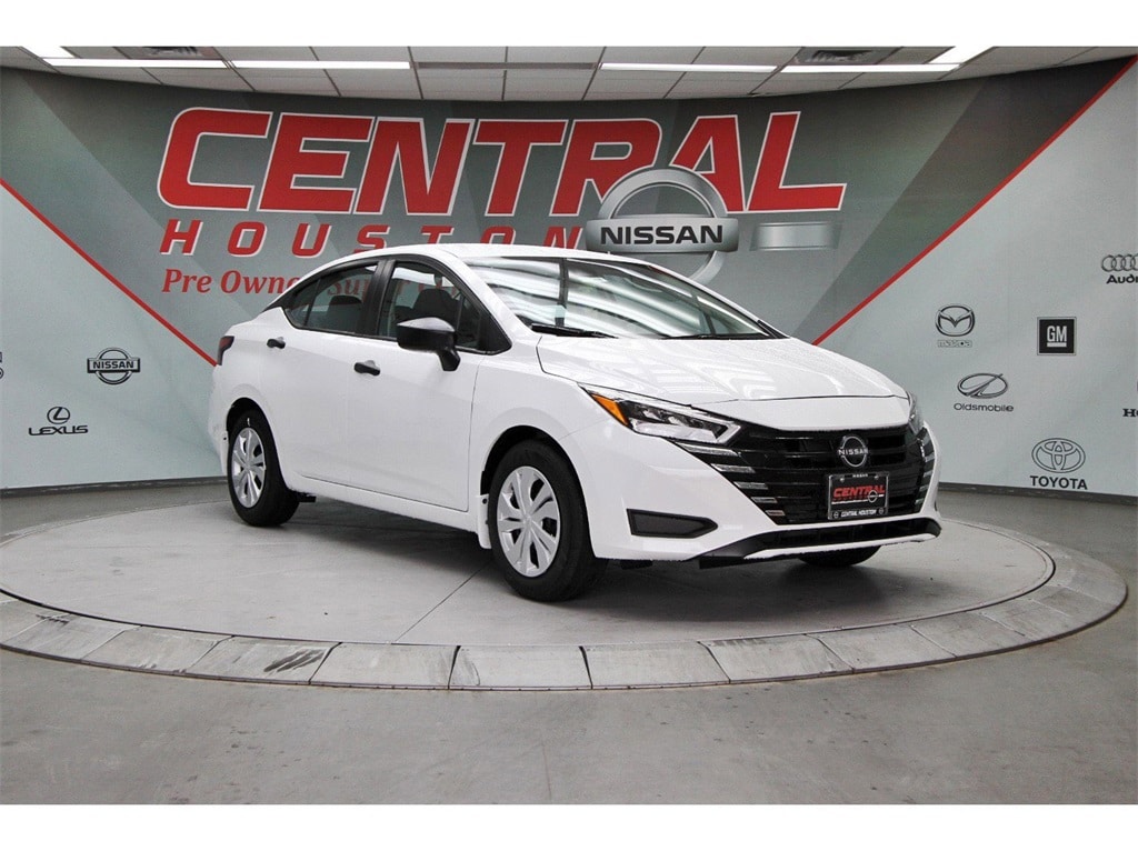 Central Houston Nissan is proud to present you with another True Market Priced Vehicle. This 2025 Nissan Versa 1.6 S is loaded with the following Factory Options: Trunk Package (Shopping Bag Hooks and Trunk Net), 15" Steel Wheels w/Full Wheel Covers, 4 Speakers, ABS brakes, Air Conditioning, AM/FM radio, Auto High-beam Headlights, Brake assist, Bumpers: body-color, Carpeted Floor Mats, Cloth Seat Trim, Delay-off headlights, Driver door bin, Driver vanity mirror, Dual front impact airbags, Dual front side impact airbags, Electronic Stability Control, Front anti-roll bar, Front Bucket Seats, Front reading lights, Front wheel independent suspension, Fully automatic headlights, Illuminated entry, Knee airbag, Low tire pressure warning, Occupant sensing airbag, Outside temperature display, Overhead airbag, Panic alarm, Passenger door bin, Passenger vanity mirror, Power door mirrors, Power steering, Power windows, Radio data system, Radio: AM/FM Audio System, Rear Parking Sensors, Rear side impact airbag, Rear window defroster, Speed control, Splash Guards, Steering wheel mounted audio controls, Tachometer, Telescoping steering wheel, Tilt steering wheel, Traction control, Trip computer, USB Charging Cable Set, and Variably intermittent wipers!!