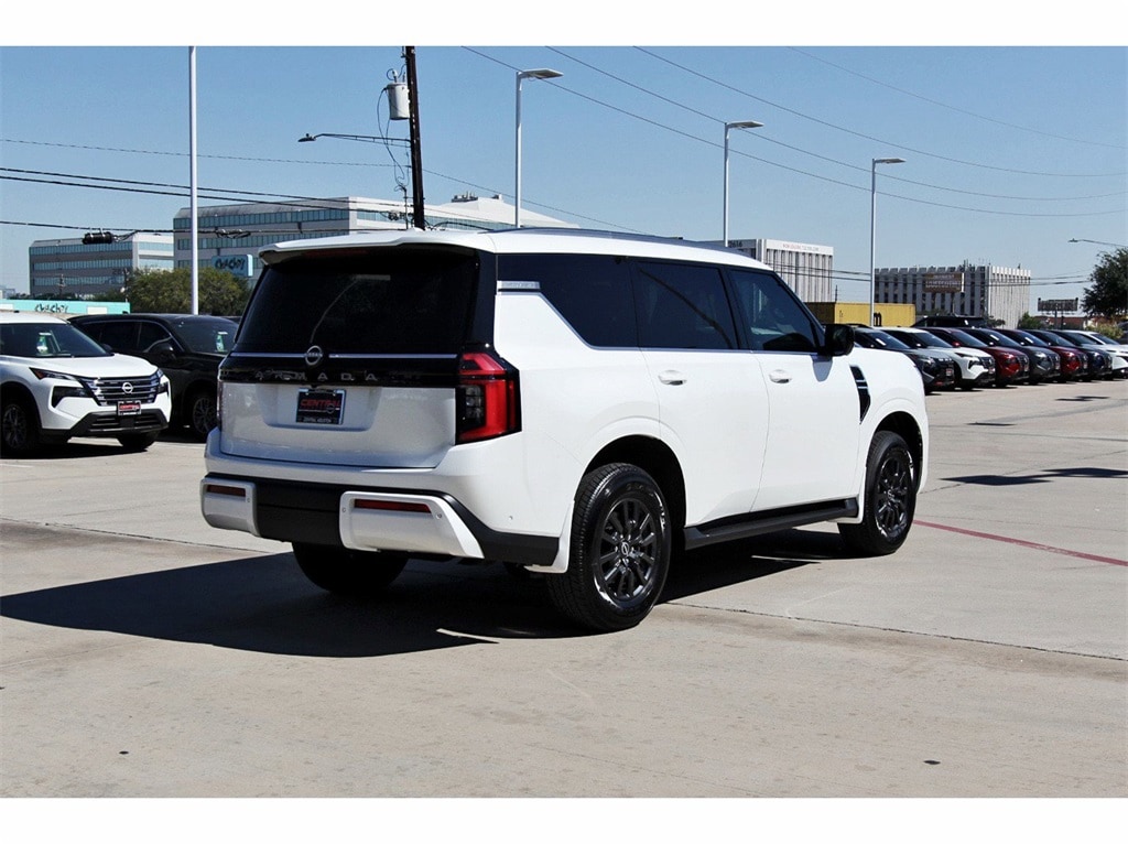 Central Houston Nissan is proud to present you with another True Market Priced Vehicle. This 2026 Nissan Armada SV is loaded with the following Factory Options: 18" x 8J Alloy Wheels, 3rd row seats: split-bench, 4-Wheel Disc Brakes, 6 Speakers, ABS brakes, Air Conditioning, Alloy wheels, AM/FM radio: SiriusXM w/360L, Anti-whiplash front head restraints, Apple CarPlay/Android Auto, Auto High-beam Headlights, Auto-leveling suspension, Automatic temperature control, Brake assist, Bumpers: body-color, Carpeted Floor Mats w/Bench Seat, Center Front Spoiler, Compass, Delay-off headlights, Driver door bin, Driver vanity mirror, Dual front impact airbags, Dual front side impact airbags, Electronic Stability Control, Emergency communication system: NissanConnect Services, Exterior Parking Camera Rear, Four wheel independent suspension, Front anti-roll bar, Front Bucket Seats, Front Center Armrest, Front dual zone A/C, Front reading lights, Fully automatic headlights, Garage door transmitter: myQ Connected Garage, HVAC memory, Illuminated entry, Knee airbag, Leather steering wheel, Leatherette Seat Trim, Low tire pressure warning, Occupant sensing airbag, Outside temperature display, Overhead airbag, Overhead console, Panic alarm, Passenger door bin, Passenger vanity mirror, Power door mirrors, Power driver seat, Power passenger seat, Power steering, Power windows, Premium Paint, Radio: NissanConnect w/SiriusXM 360L, Rain sensing wipers, Rear air conditioning, Rear anti-roll bar, Rear reading lights, Rear seat center armrest, Rear window defroster, Rear window wiper, Reclining 3rd row seat, Remote keyless entry, Security system, Speed control, Speed-sensing steering, Speed-Sensitive Wipers, Splash Guards, Split folding rear seat, Spoiler, Steering wheel mounted audio controls, Tachometer, Telescoping steering wheel, Tilt steering wheel, Traction control, Trip computer, USB Charging Cables, Variably intermittent wipers, and Voltmeter!!