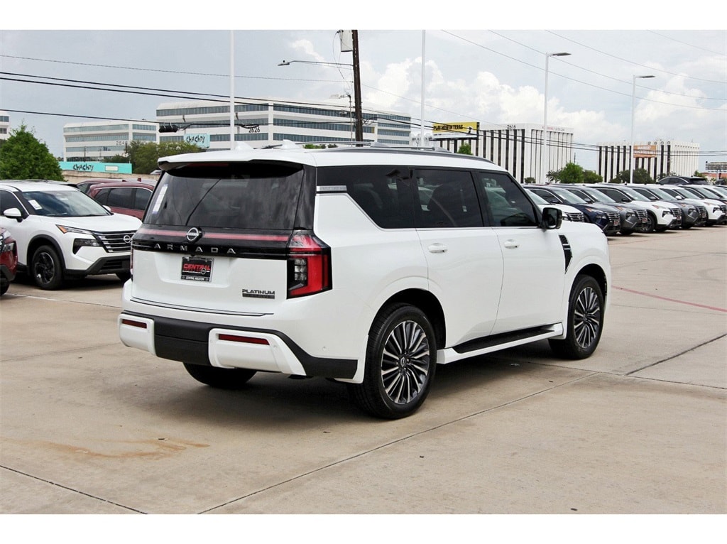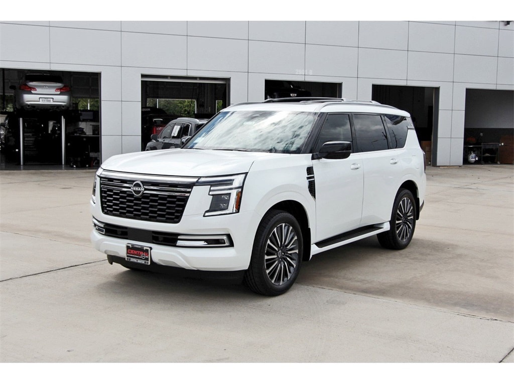 Central Houston Nissan is proud to present you with another True Market Priced Vehicle. This 2026 Nissan Armada Platinum Reserve is loaded with the following Factory Options: 12 Speakers, 3rd row seats: split-bench, 4-Wheel Disc Brakes, ABS brakes, Adaptive suspension, Air Conditioning, Alloy wheels, AM/FM radio: SiriusXM w/360L, Anti-whiplash front head restraints, Apple CarPlay/Android Auto, Auto High-beam Headlights, Auto tilt-away steering wheel, Auto-dimming door mirrors, Auto-dimming Rear-View mirror, Auto-leveling suspension, Automatic temperature control, Brake assist, Bumpers: body-color, Carpeted Floor Mats w/Captain Chairs, Center Front Spoiler, Climate Controlled Heated & Ventilated Front Seats, Compass, Cross Bars, Delay-off headlights, Driver door bin, Driver vanity mirror, Dual front impact airbags, Dual front side impact airbags, Electronic Stability Control, Emergency communication system: NissanConnect Services, Four wheel independent suspension, Front anti-roll bar, Front Bucket Seats, Front Center Armrest, Front dual zone A/C, Front fog lights, Front reading lights, Fully automatic headlights, Garage door transmitter: HomeLink, Genuine wood dashboard insert, Heads-Up Display, Heated door mirrors, Heated front seats, Heated rear seats, Heated steering wheel, HVAC memory, Illuminated entry, Illuminated Kick Plates, Knee airbag, Leather steering wheel, Low tire pressure warning, Memory seat, Navigation system: Google Maps, Occupant sensing airbag, Outside temperature display, Overhead airbag, Overhead console, Panic alarm, Passenger door bin, Passenger vanity mirror, Power door mirrors, Power driver seat, Power Liftgate, Power moonroof, Power passenger seat, Power steering, Power windows, ProPILOT Assist 2.1, Quilted Leather Seat Trim, Radio: NissanConnect w/SiriusXM 360L, Rain sensing wipers, Rear air conditioning, Rear anti-roll bar, Rear Bumper Protector, Rear reading lights, Rear window defroster, Rear window wiper, Reclining 3rd row seat, Remote keyless entry, Security system, Speed control, Speed-sensing steering, Speed-Sensitive Wipers, Splash Guards, Split folding rear seat, Spoiler, Steering wheel memory, Steering wheel mounted audio controls, Super Premium Paint, Tachometer, Telescoping steering wheel, Tilt steering wheel, Traction control, Trip computer, Turn signal indicator mirrors, Variably intermittent wipers, Ventilated front seats, Voltmeter, and Wheels: 22" x 8.5J Machined & Painted Alloy!!