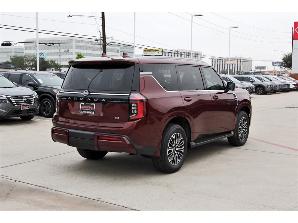 Central Houston Nissan is proud to present you with another True Market Priced Vehicle. This 2026 Nissan Armada SL is loaded with the following Factory Options: ProPILOT Assist 2.1 (3D Around View Monitor, Ambient Lighting with Multicolor Illumination, and Heads-Up Display), 12 Speakers, 3rd row seats: split-bench, 4-Wheel Disc Brakes, ABS brakes, Air Conditioning, Alloy wheels, AM/FM radio: SiriusXM w/360L, Anti-whiplash front head restraints, Apple CarPlay/Android Auto, Auto High-beam Headlights, Auto tilt-away steering wheel, Auto-dimming door mirrors, Auto-dimming Rear-View mirror, Auto-leveling suspension, Automatic temperature control, Brake assist, Bumpers: body-color, Carpeted Floor Mats with Bench Seat, Center Front Spoiler, Compass, Delay-off headlights, Driver door bin, Driver vanity mirror, Dual front impact airbags, Dual front side impact airbags, Electronic Stability Control, Emergency communication system: NissanConnect Services, Four wheel independent suspension, Front anti-roll bar, Front Bucket Seats, Front Center Armrest, Front dual zone A/C, Front reading lights, Fully automatic headlights, Garage door transmitter: myQ Connected Garage, Genuine wood dashboard insert, Heated door mirrors, Heated Front Bucket Seats, Heated front seats, Heated steering wheel, HVAC memory, Illuminated entry, Knee airbag, Leather steering wheel, Low tire pressure warning, Memory seat, Navigation system: Google Maps, Occupant sensing airbag, Outside temperature display, Overhead airbag, Overhead console, Panic alarm, Passenger door bin, Passenger vanity mirror, Power door mirrors, Power driver seat, Power Liftgate, Power passenger seat, Power steering, Power windows, Premium Paint, Radio: NissanConnect with SiriusXM 360L, Rain sensing wipers, Rear air conditioning, Rear anti-roll bar, Rear reading lights, Rear seat center armrest, Rear window defroster, Rear window wiper, Reclining 3rd row seat, Remote keyless entry, Security system, Speed control, Speed-sensing steering, Speed-Sensitive Wipers, Splash Guards, Split folding rear seat, Spoiler, Steering wheel memory, Steering wheel mounted audio controls, Tachometer, TailorFit Seat Trim, Telescoping steering wheel, Tilt steering wheel, Traction control, Trip computer, Turn signal indicator mirrors, USB Charging Cables, Variably intermittent wipers, Voltmeter, and Wheels: 20" x 8.5J Machined and Painted Alloy!!