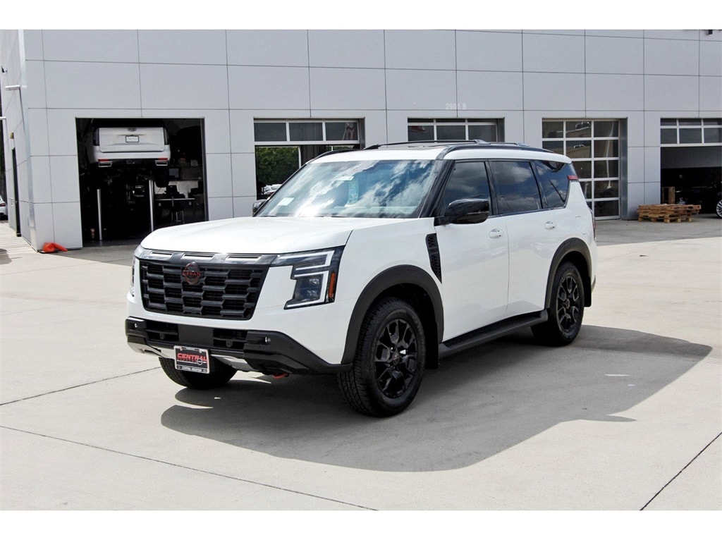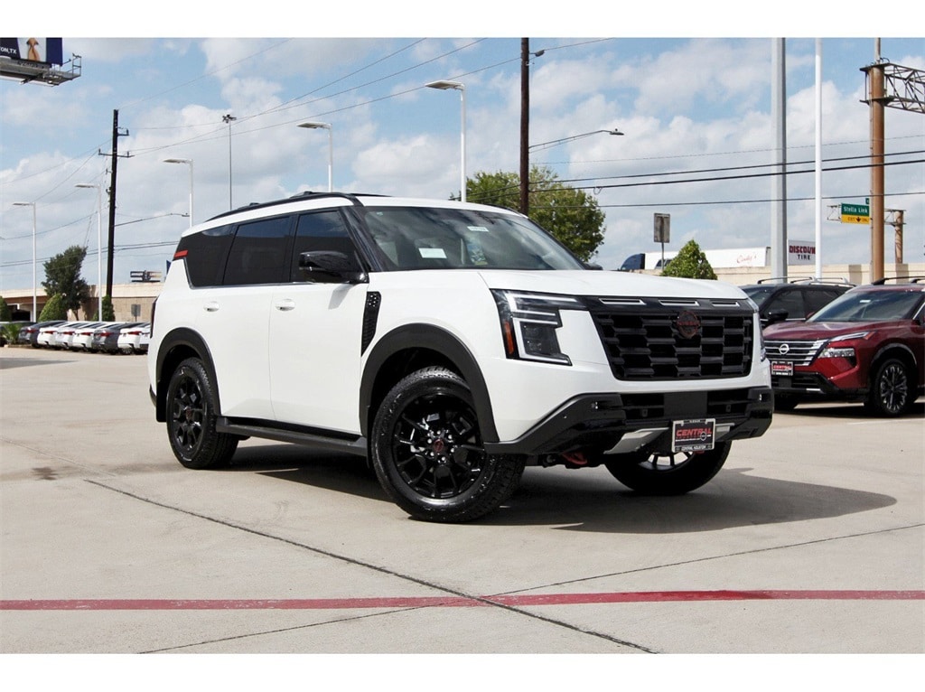 Central Houston Nissan is proud to present you with another True Market Priced Vehicle. This 2026 Nissan Armada PRO-4X is loaded with the following Factory Options: 4WD PRO-4X Premium Package w/Split Bench (Biometric Cooling, Climate Controlled Heated & Ventilated Front Seats, Hands-Free Power Liftgate, Heated 2nd Row Seats, In-Car Camera, Intelligent Dash Cam, Intelligent Rear View Mirror (I-RVM), and Panoramic Moonroof), 4WD, 12 Speakers, 3rd row seats: split-bench, 4-Wheel Disc Brakes, ABS brakes, Adaptive suspension, Air Conditioning, Alloy wheels, AM/FM radio: SiriusXM w/360L, Anti-whiplash front head restraints, Apple CarPlay/Android Auto, Auto High-beam Headlights, Auto tilt-away steering wheel, Auto-dimming door mirrors, Auto-dimming Rear-View mirror, Auto-leveling suspension, Automatic temperature control, Brake assist, Bumpers: body-color, Compass, Cross Bars, Delay-off headlights, Driver door bin, Driver vanity mirror, Dual front impact airbags, Dual front side impact airbags, Electronic Stability Control, Emergency communication system: NissanConnect Services, Four wheel independent suspension, Front anti-roll bar, Front Bucket Seats, Front Center Armrest, Front dual zone A/C, Front fog lights, Front reading lights, Front Tow Hooks, Fully automatic headlights, Garage door transmitter: myQ Connected Garage, Genuine wood dashboard insert, Heated door mirrors, Heated Front Bucket Seats, Heated front seats, Heated steering wheel, HVAC memory, Illuminated entry, Illuminated Kick Plates, Knee airbag, Leather steering wheel, Low tire pressure warning, Memory seat, Navigation system: Google Maps, Occupant sensing airbag, Outside temperature display, Overhead airbag, Overhead console, Panic alarm, Passenger door bin, Passenger vanity mirror, Power door mirrors, Power driver seat, Power Liftgate, Power passenger seat, Power steering, Power windows, Premium Paint, PRO-4X Carpeted Floor Mats w/Bench Seat, PRO-4X Leather Quilted Insert Seat Trim, PRO-4X Mud Guards, Radio: NissanConnect w/SiriusXM 360L, Rain sensing wipers, Rear air conditioning, Rear anti-roll bar, Rear reading lights, Rear seat center armrest, Rear window defroster, Rear window wiper, Reclining 3rd row seat, Remote keyless entry, Security system, Speed control, Speed-sensing steering, Speed-Sensitive Wipers, Split folding rear seat, Spoiler, Steering wheel memory, Steering wheel mounted audio controls, Tachometer, Telescoping steering wheel, Tilt steering wheel, Traction control, Trip computer, Turn signal indicator mirrors, USB Charging Cables, Variably intermittent wipers, Voltmeter, and Wheels: 20" x 8.5J Painted PRO-4X Alloy!!