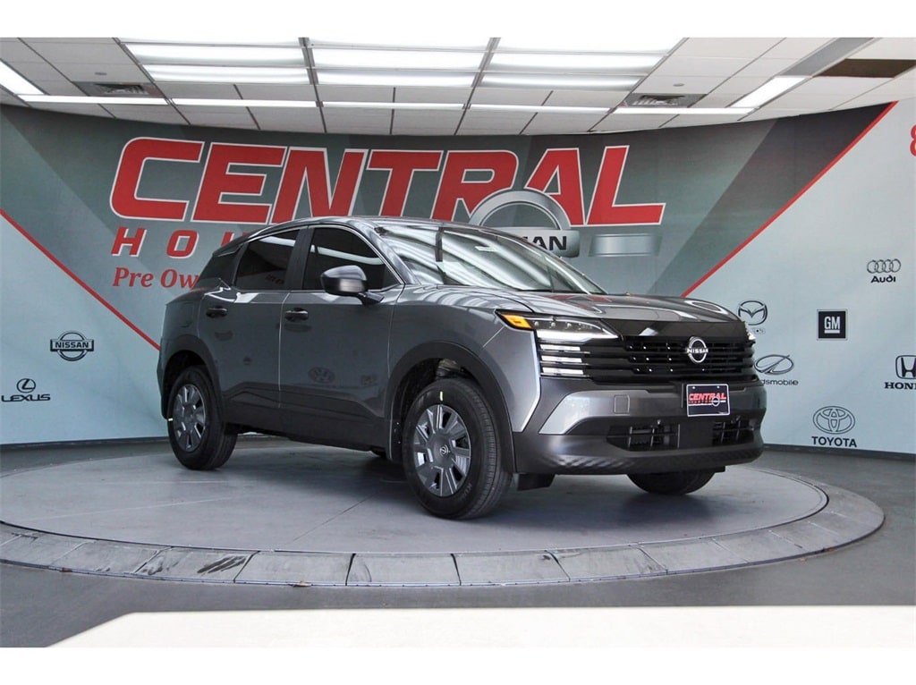 Central Houston Nissan is proud to present you with another True Market Priced Vehicle. This 2026 Nissan Kicks S is loaded with the following Factory Options: 16" Steel Wheels w/Full Covers, 4 Speakers, 4-Wheel Disc Brakes, ABS brakes, Air Conditioning, AM/FM radio, Auto High-beam Headlights, Blind Spot Warning, Brake assist, Bumpers: body-color, Carpeted Floor Mats & Cargo Mat, Cloth Seat Trim, Driver door bin, Driver vanity mirror, Driver's Seat Mounted Armrest, Dual front impact airbags, Dual front side impact airbags, Electronic Stability Control, Emergency communication system, Exterior Parking Camera Rear, Front anti-roll bar, Front Bucket Seats, Front reading lights, Front wheel independent suspension, Fully automatic headlights, Illuminated entry, Knee airbag, Low tire pressure warning, NissanConnect featuring Apple CarPlay and Android Auto, Occupant sensing airbag, Outside temperature display, Overhead airbag, Panic alarm, Passenger door bin, Passenger vanity mirror, Power door mirrors, Power steering, Power windows, Radio data system, Radio: AM/FM/SiriusXM Audio System, Rear anti-roll bar, Rear reading lights, Rear side impact airbag, Rear window defroster, Rear window wiper, Remote keyless entry, Security system, Speed control, Speed-sensing steering, Splash Guards, Split folding rear seat, Spoiler, Sport steering wheel, Steering wheel mounted audio controls, Tachometer, Telescoping steering wheel, Tilt steering wheel, Traction control, Trip computer, and Variably intermittent wipers!!