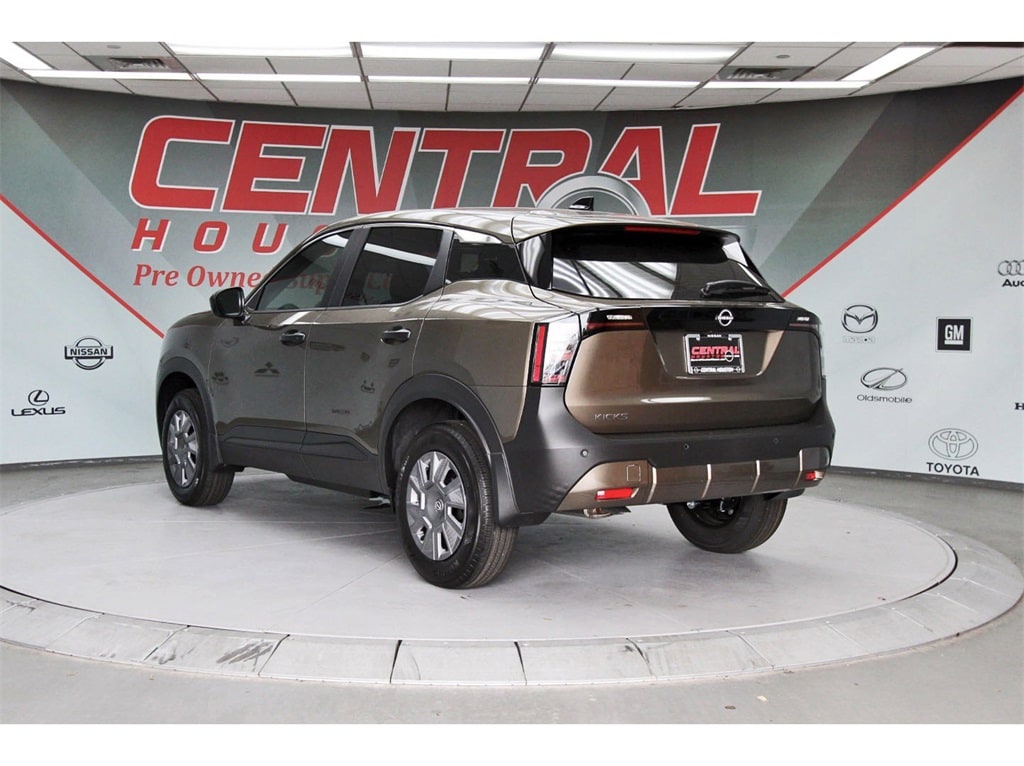 Central Houston Nissan is proud to present you with another True Market Priced Vehicle. This 2026 Nissan Kicks S is loaded with the following Factory Options: 16" Steel Wheels w/Full Covers, 4 Speakers, 4-Wheel Disc Brakes, ABS brakes, Air Conditioning, AM/FM radio, Auto High-beam Headlights, Blind Spot Warning, Brake assist, Bumpers: body-color, Carpeted Floor Mats & Cargo Mat, Cloth Seat Trim, Driver door bin, Driver vanity mirror, Driver's Seat Mounted Armrest, Dual front impact airbags, Dual front side impact airbags, Electronic Stability Control, Emergency communication system, Exterior Parking Camera Rear, Front anti-roll bar, Front Bucket Seats, Front reading lights, Front wheel independent suspension, Fully automatic headlights, Illuminated entry, Knee airbag, Low tire pressure warning, NissanConnect featuring Apple CarPlay and Android Auto, Occupant sensing airbag, Outside temperature display, Overhead airbag, Panic alarm, Passenger door bin, Passenger vanity mirror, Power door mirrors, Power steering, Power windows, Radio data system, Radio: AM/FM/SiriusXM Audio System, Rear anti-roll bar, Rear reading lights, Rear side impact airbag, Rear window defroster, Rear window wiper, Remote keyless entry, Security system, Speed control, Speed-sensing steering, Splash Guards, Split folding rear seat, Spoiler, Sport steering wheel, Steering wheel mounted audio controls, Tachometer, Telescoping steering wheel, Tilt steering wheel, Traction control, Trip computer, and Variably intermittent wipers!!