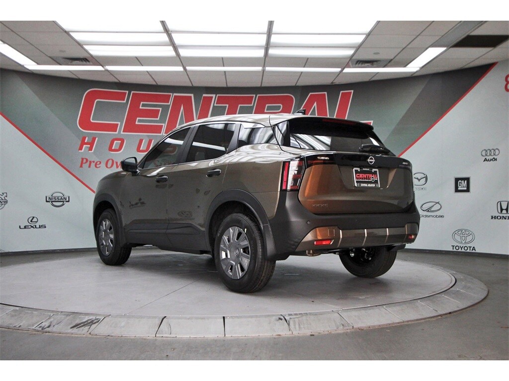 Central Houston Nissan is proud to present you with another True Market Priced Vehicle. This 2026 Nissan Kicks S is loaded with the following Factory Options: 16" Steel Wheels w/Full Covers, 4 Speakers, 4-Wheel Disc Brakes, ABS brakes, Air Conditioning, AM/FM radio, Auto High-beam Headlights, Blind Spot Warning, Brake assist, Bumpers: body-color, Carpeted Floor Mats & Cargo Mat, Cloth Seat Trim, Driver door bin, Driver vanity mirror, Driver's Seat Mounted Armrest, Dual front impact airbags, Dual front side impact airbags, Electronic Stability Control, Emergency communication system, Exterior Parking Camera Rear, Front anti-roll bar, Front Bucket Seats, Front reading lights, Front wheel independent suspension, Fully automatic headlights, Illuminated entry, Knee airbag, Low tire pressure warning, NissanConnect featuring Apple CarPlay and Android Auto, Occupant sensing airbag, Outside temperature display, Overhead airbag, Panic alarm, Passenger door bin, Passenger vanity mirror, Power door mirrors, Power steering, Power windows, Radio data system, Radio: AM/FM/SiriusXM Audio System, Rear anti-roll bar, Rear reading lights, Rear side impact airbag, Rear window defroster, Rear window wiper, Remote keyless entry, Security system, Speed control, Speed-sensing steering, Splash Guards, Split folding rear seat, Spoiler, Sport steering wheel, Steering wheel mounted audio controls, Tachometer, Telescoping steering wheel, Tilt steering wheel, Traction control, Trip computer, and Variably intermittent wipers!!
