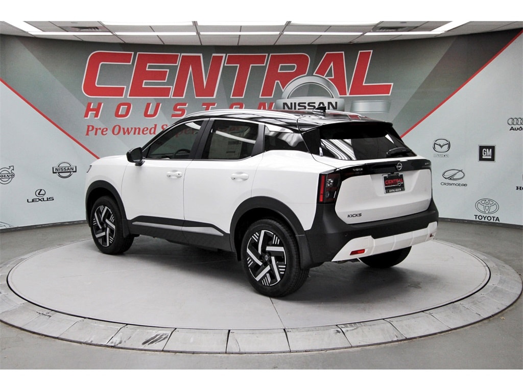 Central Houston Nissan is proud to present you with another True Market Priced Vehicle. This 2026 Nissan Kicks SV is loaded with the following Factory Options: Charging Package (USB Charging Cable Set - Nissan and USB-C Power Delivery), 2-Tone Premium Paint, 4 Speakers, 4-Wheel Disc Brakes, ABS brakes, Air Conditioning, AM/FM radio, Auto High-beam Headlights, Automatic temperature control, Blind Spot Warning, Brake assist, Bumpers: body-color, Carpeted Floor Mats & Underfloor Protector, Cloth Seat Trim, Dash Cam - Dual Camera Drive Recorder, Driver door bin, Driver vanity mirror, Dual front impact airbags, Dual front side impact airbags, Electronic Stability Control, Emergency communication system, Exterior Ground Lighting w/Logo, Exterior Parking Camera Rear, Front anti-roll bar, Front Bucket Seats, Front Center Armrest, Front reading lights, Front wheel independent suspension, Fully automatic headlights, Illuminated entry, Knee airbag, Low tire pressure warning, NissanConnect featuring Apple CarPlay and Android Auto, Occupant sensing airbag, Outside temperature display, Overhead airbag, Panic alarm, Passenger door bin, Passenger vanity mirror, Power door mirrors, Power steering, Power windows, Radio data system, Radio: AM/FM/SiriusXM Audio System, Rear anti-roll bar, Rear reading lights, Rear side impact airbag, Rear window defroster, Rear window wiper, Remote keyless entry, Security system, Speed control, Speed-sensing steering, Splash Guards, Split folding rear seat, Spoiler, Sport steering wheel, Steering wheel mounted audio controls, Tachometer, Telescoping steering wheel, Tilt steering wheel, Traction control, Trip computer, Variably intermittent wipers, and Wheels: 17" Steel Flex w/Full Covers!!