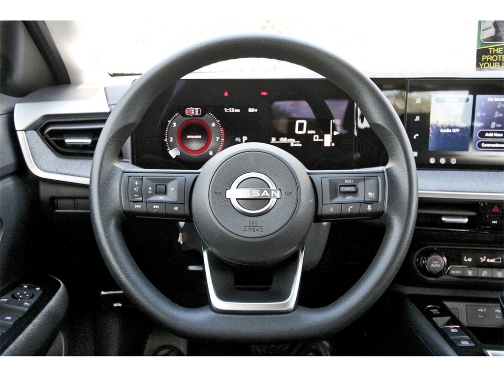 Central Houston Nissan is proud to present you with another True Market Priced Vehicle. This 2026 Nissan Kicks SV is loaded with the following Factory Options: 2-Tone Premium Paint, 4 Speakers, 4-Wheel Disc Brakes, ABS brakes, Air Conditioning, AM/FM radio, Auto High-beam Headlights, Automatic temperature control, Blind Spot Warning, Brake assist, Bumpers: body-color, Carpeted Floor Mats & Underfloor Protector, Cloth Seat Trim, Driver door bin, Driver vanity mirror, Dual front impact airbags, Dual front side impact airbags, Electronic Stability Control, Emergency communication system, Exterior Parking Camera Rear, Front anti-roll bar, Front Bucket Seats, Front Center Armrest, Front reading lights, Front wheel independent suspension, Fully automatic headlights, Illuminated entry, Knee airbag, Low tire pressure warning, NissanConnect featuring Apple CarPlay and Android Auto, Occupant sensing airbag, Outside temperature display, Overhead airbag, Panic alarm, Passenger door bin, Passenger vanity mirror, Power door mirrors, Power steering, Power windows, Radio data system, Radio: AM/FM/SiriusXM Audio System, Rear anti-roll bar, Rear reading lights, Rear side impact airbag, Rear window defroster, Rear window wiper, Remote keyless entry, Security system, Speed control, Speed-sensing steering, Splash Guards, Split folding rear seat, Spoiler, Sport steering wheel, Steering wheel mounted audio controls, Tachometer, Telescoping steering wheel, Tilt steering wheel, Traction control, Trip computer, Variably intermittent wipers, and Wheels: 17" Steel Flex w/Full Covers!!
