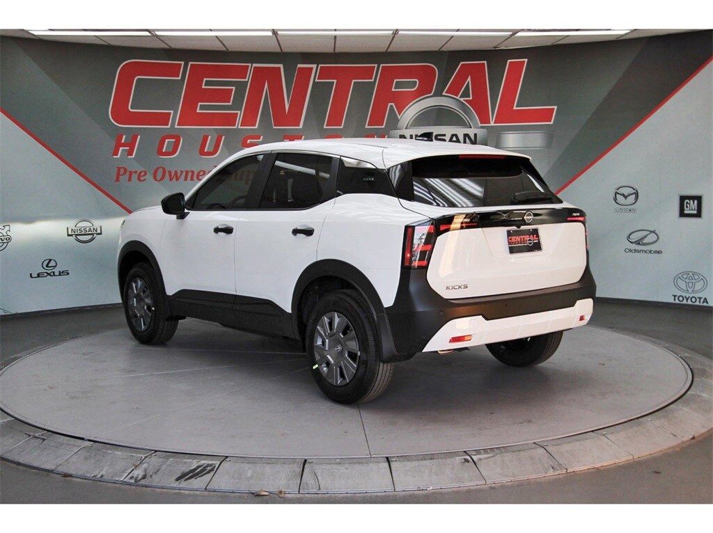 Central Houston Nissan is proud to present you with another True Market Priced Vehicle. This 2026 Nissan Kicks S is loaded with the following Factory Options: 16" Steel Wheels w/Full Covers, 4 Speakers, 4-Wheel Disc Brakes, ABS brakes, Air Conditioning, AM/FM radio, Auto High-beam Headlights, Blind Spot Warning, Brake assist, Bumpers: body-color, Carpeted Floor Mats & Cargo Mat, Cloth Seat Trim, Driver door bin, Driver vanity mirror, Driver's Seat Mounted Armrest, Dual front impact airbags, Dual front side impact airbags, Electronic Stability Control, Emergency communication system, Exterior Parking Camera Rear, Front anti-roll bar, Front Bucket Seats, Front reading lights, Front wheel independent suspension, Fully automatic headlights, Illuminated entry, Knee airbag, Low tire pressure warning, NissanConnect featuring Apple CarPlay and Android Auto, Occupant sensing airbag, Outside temperature display, Overhead airbag, Panic alarm, Passenger door bin, Passenger vanity mirror, Power door mirrors, Power steering, Power windows, Radio data system, Radio: AM/FM/SiriusXM Audio System, Rear anti-roll bar, Rear reading lights, Rear side impact airbag, Rear window defroster, Rear window wiper, Remote keyless entry, Security system, Speed control, Speed-sensing steering, Splash Guards, Split folding rear seat, Spoiler, Sport steering wheel, Steering wheel mounted audio controls, Tachometer, Telescoping steering wheel, Tilt steering wheel, Traction control, Trip computer, and Variably intermittent wipers!!