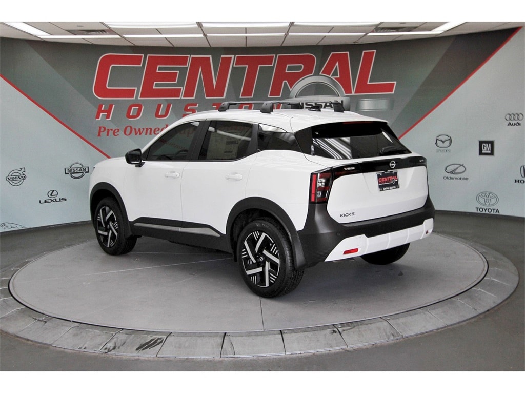 Central Houston Nissan is proud to present you with another True Market Priced Vehicle. This 2026 Nissan Kicks SV is loaded with the following Factory Options: Cold Weather Package (Heated Front Seats, Heated Mirrors, and Rear Floor Heater Ducts), SV Premium Package (Illuminated Driver & Passenger Sun Visors, Panoramic Moonroof, and Sunglass Holder), 4 Speakers, 4-Wheel Disc Brakes, ABS brakes, Air Conditioning, AM/FM radio, Auto High-beam Headlights, Automatic temperature control, Blind Spot Warning, Brake assist, Bumpers: body-color, Carpeted Floor Mats & Underfloor Protector, Cloth Seat Trim, Crossbars, Driver door bin, Driver vanity mirror, Dual front impact airbags, Dual front side impact airbags, Electronic Stability Control, Emergency communication system, Exterior Parking Camera Rear, Front anti-roll bar, Front Bucket Seats, Front Center Armrest, Front reading lights, Front wheel independent suspension, Fully automatic headlights, Illuminated entry, Knee airbag, Low tire pressure warning, NissanConnect featuring Apple CarPlay and Android Auto, Occupant sensing airbag, Outside temperature display, Overhead airbag, Panic alarm, Passenger door bin, Passenger vanity mirror, Power door mirrors, Power steering, Power windows, Radio data system, Radio: AM/FM/SiriusXM Audio System, Rear anti-roll bar, Rear reading lights, Rear side impact airbag, Rear window defroster, Rear window wiper, Remote keyless entry, Security system, Speed control, Speed-sensing steering, Splash Guards, Split folding rear seat, Spoiler, Sport steering wheel, Steering wheel mounted audio controls, Tachometer, Telescoping steering wheel, Tilt steering wheel, Traction control, Trip computer, Variably intermittent wipers, and Wheels: 17" Steel Flex w/Full Covers!!