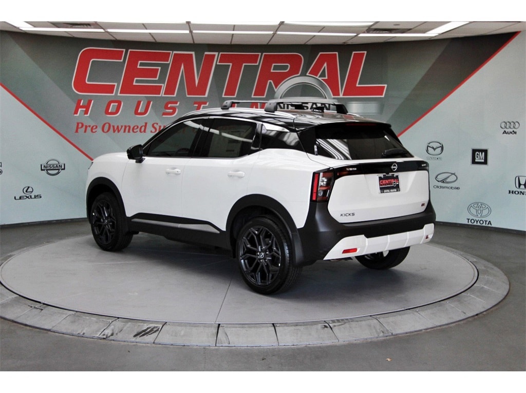 Central Houston Nissan is proud to present you with another True Market Priced Vehicle. This 2026 Nissan Kicks SR is loaded with the following Factory Options: Cold Weather Package (Heated Front Seats, Heated Mirrors, and Rear Floor Heater Ducts), SR Premium Package (Bose 10 -Speaker Audio, Driver Seat-Mounted Supplemental Air Bag, Heated Steering Wheel, and Panoramic Moonroof), 17" Alloy Wheels, 2-Tone Premium Paint, 4-Wheel Disc Brakes, 6 Speakers, ABS brakes, Air Conditioning, Alloy wheels, AM/FM radio, Auto High-beam Headlights, Automatic temperature control, Brake assist, Bumpers: body-color, Carpeted Floor Mats & Underfloor Protector, Crossbars, Delay-off headlights, Driver door bin, Driver vanity mirror, Dual front impact airbags, Dual front side impact airbags, Electronic Stability Control, Emergency communication system: NissanConnect Services, Exterior Parking Camera Rear, Front anti-roll bar, Front Bucket Seats, Front Center Armrest, Front reading lights, Front wheel independent suspension, Fully automatic headlights, Garage door transmitter: myQ Connected Garage, Illuminated entry, Knee airbag, Leather Shift Knob, Leather steering wheel, Low tire pressure warning, NissanConnect featuring Apple CarPlay and Android Auto, Occupant sensing airbag, Outside temperature display, Overhead airbag, Overhead console, Panic alarm, Passenger door bin, Passenger vanity mirror, Power door mirrors, Power steering, Power windows, Radio data system, Radio: AM/FM/SiriusXM Audio System, Rear anti-roll bar, Rear reading lights, Rear seat center armrest, Rear side impact airbag, Rear window defroster, Rear window wiper, Remote keyless entry, Security system, Speed control, Speed-sensing steering, Splash Guards, Split folding rear seat, Spoiler, Sport Leatherette w/Cloth Insert Seat Trim, Sport steering wheel, Steering wheel mounted audio controls, Tachometer, Telescoping steering wheel, Tilt steering wheel, Traction control, Trip computer, Turn signal indicator mirrors, Variably intermittent wipers, and Wheels: 19" Dark Gray Alloy!!