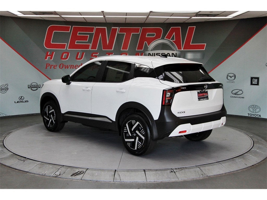 Central Houston Nissan is proud to present you with another True Market Priced Vehicle. This 2026 Nissan Kicks SV is loaded with the following Factory Options: Charging Package (USB Charging Cable Set - Nissan and USB-C Power Delivery), 4 Speakers, 4-Wheel Disc Brakes, ABS brakes, Air Conditioning, AM/FM radio, Auto High-beam Headlights, Automatic temperature control, Blind Spot Warning, Brake assist, Bumpers: body-color, Carpeted Floor Mats & Underfloor Protector, Cloth Seat Trim, Dash Cam - Dual Camera Drive Recorder, Driver door bin, Driver vanity mirror, Dual front impact airbags, Dual front side impact airbags, Electronic Stability Control, Emergency communication system, Exterior Ground Lighting w/Logo, Exterior Parking Camera Rear, Front anti-roll bar, Front Bucket Seats, Front Center Armrest, Front reading lights, Front wheel independent suspension, Fully automatic headlights, Illuminated entry, Knee airbag, Low tire pressure warning, NissanConnect featuring Apple CarPlay and Android Auto, Occupant sensing airbag, Outside temperature display, Overhead airbag, Panic alarm, Passenger door bin, Passenger vanity mirror, Power door mirrors, Power steering, Power windows, Radio data system, Radio: AM/FM/SiriusXM Audio System, Rear anti-roll bar, Rear reading lights, Rear side impact airbag, Rear window defroster, Rear window wiper, Remote keyless entry, Security system, Speed control, Speed-sensing steering, Splash Guards, Split folding rear seat, Spoiler, Sport steering wheel, Steering wheel mounted audio controls, Tachometer, Telescoping steering wheel, Tilt steering wheel, Traction control, Trip computer, Variably intermittent wipers, and Wheels: 17" Steel Flex w/Full Covers!!