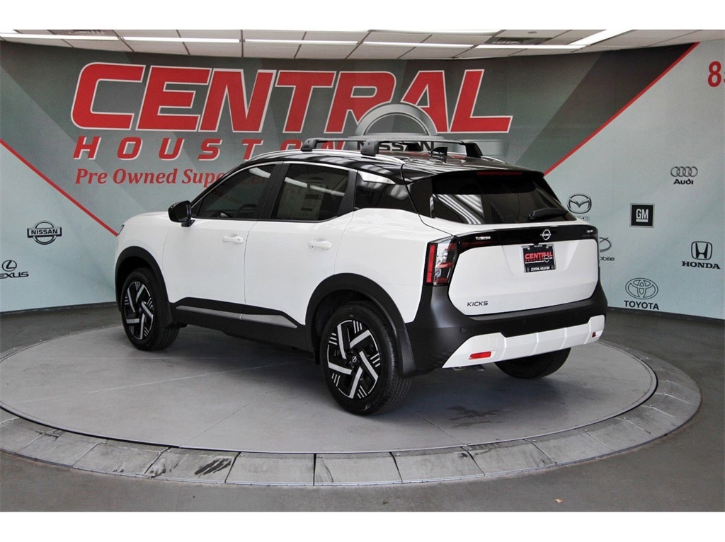 Central Houston Nissan is proud to present you with another True Market Priced Vehicle. This 2026 Nissan Kicks SV is loaded with the following Factory Options: Cold Weather Package (Heated Front Seats, Heated Mirrors, and Rear Floor Heater Ducts), SV Premium Package (Illuminated Driver & Passenger Sun Visors, Panoramic Moonroof, and Sunglass Holder), 2-Tone Premium Paint, 4 Speakers, 4-Wheel Disc Brakes, ABS brakes, Air Conditioning, AM/FM radio, Auto High-beam Headlights, Automatic temperature control, Blind Spot Warning, Brake assist, Bumpers: body-color, Carpeted Floor Mats & Underfloor Protector, Cloth Seat Trim, Crossbars, Driver door bin, Driver vanity mirror, Dual front impact airbags, Dual front side impact airbags, Electronic Stability Control, Emergency communication system, Exterior Parking Camera Rear, Front anti-roll bar, Front Bucket Seats, Front Center Armrest, Front reading lights, Front wheel independent suspension, Fully automatic headlights, Illuminated entry, Knee airbag, Low tire pressure warning, NissanConnect featuring Apple CarPlay and Android Auto, Occupant sensing airbag, Outside temperature display, Overhead airbag, Panic alarm, Passenger door bin, Passenger vanity mirror, Power door mirrors, Power steering, Power windows, Radio data system, Radio: AM/FM/SiriusXM Audio System, Rear anti-roll bar, Rear reading lights, Rear side impact airbag, Rear window defroster, Rear window wiper, Remote keyless entry, Security system, Speed control, Speed-sensing steering, Splash Guards, Split folding rear seat, Spoiler, Sport steering wheel, Steering wheel mounted audio controls, Tachometer, Telescoping steering wheel, Tilt steering wheel, Traction control, Trip computer, Variably intermittent wipers, and Wheels: 17" Steel Flex w/Full Covers!!