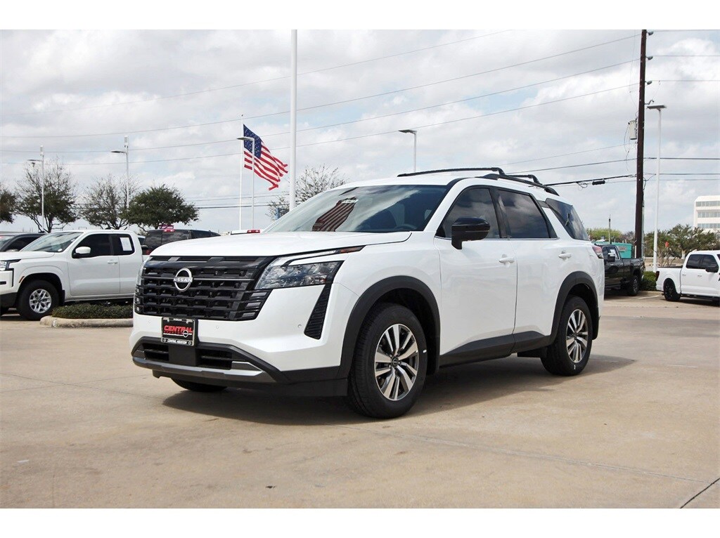 Central Houston Nissan is proud to present you with another True Market Priced Vehicle. This 2026 Nissan Pathfinder SL is loaded with the following Factory Options: 18" Machined Alloy Wheels, 3rd row seats: bench, 4-Piece Black Splash Guards, 4-Wheel Disc Brakes, 6 Speakers, ABS brakes, Air Conditioning, Alloy wheels, AM/FM radio: SiriusXM w/360L, Auto High-beam Headlights, Auto-dimming Rear-View mirror, Automatic temperature control, Bench Seat Carpeted Floor Mats, Brake assist, Bumpers: body-color, Cross Bars, Delay-off headlights, Driver door bin, Driver vanity mirror, Dual front impact airbags, Dual front side impact airbags, Electronic Stability Control, Emergency communication system: NissanConnect Services, Four wheel independent suspension, Front anti-roll bar, Front Bucket Seats, Front Center Armrest, Front dual zone A/C, Front reading lights, Fully automatic headlights, Garage door transmitter: HomeLink, Heated door mirrors, Heated Front Bucket Seats, Heated front seats, Heated steering wheel, Illuminated entry, Knee airbag, Low tire pressure warning, Nissan USB Charging Cable Set, NissanConnect featuring Apple CarPlay and Android Auto, Occupant sensing airbag, Outside temperature display, Overhead airbag, Overhead console, Panic alarm, Passenger door bin, Passenger vanity mirror, Power door mirrors, Power driver seat, Power Liftgate, Power steering, Power windows, Radio data system, Radio: AM/FM Audio System with NissanConnect, Rear air conditioning, Rear anti-roll bar, Rear reading lights, Rear seat center armrest, Rear side impact airbag, Rear window defroster, Rear window wiper, Reclining 3rd row seat, Remote keyless entry, Security system, Speed control, Speed-sensing steering, Split folding rear seat, Spoiler, Steering wheel mounted audio controls, Tachometer, TailorFit Appointed Seating Surfaces, Telescoping steering wheel, Tilt steering wheel, Traction control, Trip computer, Turn signal indicator mirrors, and Variably intermittent wipers!!