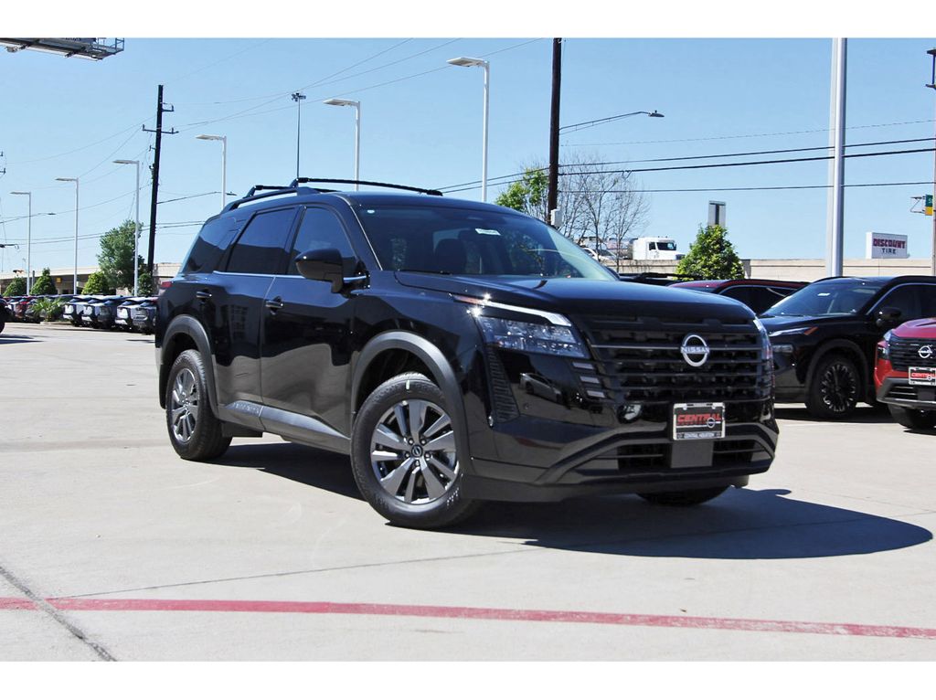 Central Houston Nissan is proud to present you with another True Market Priced Vehicle. This 2026 Nissan Pathfinder SV is loaded with the following Factory Options: 18" Painted Alloy Wheels, 3rd row seats: bench, 4-Piece Black Splash Guards, 4-Wheel Disc Brakes, 6 Speakers, ABS brakes, Air Conditioning, Alloy wheels, AM/FM radio: SiriusXM w/360L, Auto High-beam Headlights, Automatic temperature control, Bench Seat Carpeted Floor Mats, Brake assist, Bumpers: body-color, Cloth Seating Surfaces, Cross Bars, Delay-off headlights, Driver door bin, Driver vanity mirror, Dual front impact airbags, Dual front side impact airbags, Electronic Stability Control, Emergency communication system: NissanConnect Services, Four wheel independent suspension, Front anti-roll bar, Front Bucket Seats, Front Center Armrest, Front dual zone A/C, Front reading lights, Fully automatic headlights, Garage door transmitter: myQ Connected Garage, Heated door mirrors, Heated Front Bucket Seats, Heated front seats, Illuminated entry, Knee airbag, Low tire pressure warning, Nissan USB Charging Cable Set, NissanConnect featuring Apple CarPlay and Android Auto, Occupant sensing airbag, Outside temperature display, Overhead airbag, Overhead console, Panic alarm, Passenger door bin, Passenger vanity mirror, Power door mirrors, Power driver seat, Power Liftgate, Power steering, Power windows, Radio data system, Radio: AM/FM Audio System with NissanConnect, Rear air conditioning, Rear anti-roll bar, Rear reading lights, Rear seat center armrest, Rear side impact airbag, Rear window defroster, Rear window wiper, Reclining 3rd row seat, Remote keyless entry, Security system, Speed control, Speed-sensing steering, Split folding rear seat, Spoiler, Steering wheel mounted audio controls, Tachometer, Telescoping steering wheel, Tilt steering wheel, Traction control, Trip computer, and Variably intermittent wipers!!