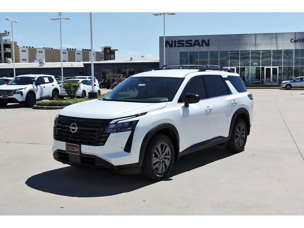 Central Houston Nissan is proud to present you with another True Market Priced Vehicle. This 2026 Nissan Pathfinder SV is loaded with the following Factory Options: 4WD 4WD, 18" Painted Alloy Wheels, 3rd row seats: bench, 4-Piece Black Splash Guards, 4-Wheel Disc Brakes, 6 Speakers, ABS brakes, Air Conditioning, Alloy wheels, AM/FM radio: SiriusXM w/360L, Auto High-beam Headlights, Automatic temperature control, Bench Seat Carpeted Floor Mats, Brake assist, Bumpers: body-color, Cloth Seating Surfaces, Cross Bars, Delay-off headlights, Driver door bin, Driver vanity mirror, Dual front impact airbags, Dual front side impact airbags, Electronic Stability Control, Emergency communication system: NissanConnect Services, Four wheel independent suspension, Front anti-roll bar, Front Bucket Seats, Front Center Armrest, Front dual zone A/C, Front reading lights, Fully automatic headlights, Garage door transmitter: myQ Connected Garage, Heated door mirrors, Heated Front Bucket Seats, Heated front seats, Illuminated entry, Knee airbag, Low tire pressure warning, Nissan USB Charging Cable Set, NissanConnect featuring Apple CarPlay and Android Auto, Occupant sensing airbag, Outside temperature display, Overhead airbag, Overhead console, Panic alarm, Passenger door bin, Passenger vanity mirror, Power door mirrors, Power driver seat, Power Liftgate, Power steering, Power windows, Radio data system, Radio: AM/FM Audio System with NissanConnect, Rear air conditioning, Rear anti-roll bar, Rear reading lights, Rear seat center armrest, Rear side impact airbag, Rear window defroster, Rear window wiper, Reclining 3rd row seat, Remote keyless entry, Security system, Speed control, Speed-sensing steering, Split folding rear seat, Spoiler, Steering wheel mounted audio controls, Tachometer, Telescoping steering wheel, Tilt steering wheel, Traction control, Trip computer, and Variably intermittent wipers!!