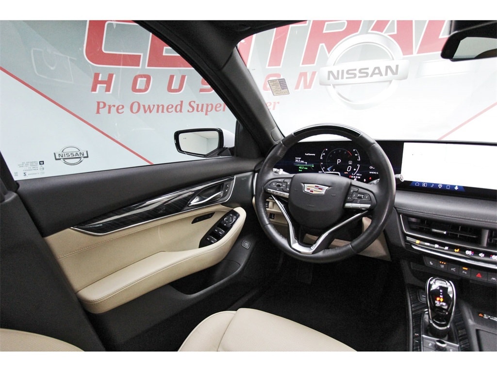 Central Houston Nissan is proud to present you with another True Market Priced Pre-Owned Vehicle. This 2025 Cadillac CT5 Premium Luxury is loaded with the following Factory Options: Preferred Equipment Group 1SD (LED Reflective Windshield Collision Alert), Sun & Sound Package, 15 Speakers, 4-Wheel Disc Brakes, 8-Way Power Driver Seat Adjuster, 8-Way Power Front Passenger Seat Adjuster, ABS brakes, Air Conditioning, AKG 15-Speaker System, Alloy wheels, AM/FM radio: SiriusXM with 360L, Apple CarPlay/Android Auto, Auto High-beam Headlights, Auto-dimming door mirrors, Auto-dimming Rear-View mirror, Automatic Stop/Start w/Disable, Automatic temperature control, Brake assist, Bumpers: body-color, Compass, Delay-off headlights, Driver 4-Way Power Lumbar Seat Adjuster, Driver door bin, Driver Power Lumbar Massage Seat, Driver Power Seatback Bolster Adjustment, Driver vanity mirror, Dual front impact airbags, Dual front side impact airbags, Electronic Stability Control, Emergency communication system: OnStar and Cadillac connected services capable, Four wheel independent suspension, Front anti-roll bar, Front Bucket Seats, Front Center Armrest, Front dual zone A/C, Front License Plate Bracket, Front Passenger 4-Way Power Lumbar Seat Adjuster, Front Passenger Power Lumbar Massage Seat, Front Passenger Power Seatback Bolster Adjustment, Front reading lights, Fully automatic headlights, Garage door transmitter, Heated door mirrors, Heated Driver & Front Passenger Seats, Heated front seats, Heated steering wheel, Illuminated entry, Knee airbag, Leather Seating Surfaces w/Mini-Perforated Inserts, Leather steering wheel, Low tire pressure warning, Memory seat, Navigation System, Occupant sensing airbag, Outside temperature display, Overhead airbag, Overhead console, Panic alarm, Passenger door bin, Passenger vanity mirror, Power door mirrors, Power driver seat, Power passenger seat, Power steering, Power windows, Radio data system, Radio: Google Built-In Infotainment Experience, Rain sensing wipers, Rear anti-roll bar, Rear reading lights, Rear seat center armrest, Rear window defroster, Remote keyless entry, SiriusXM w/360L Trial Subscription, Speed control, Speed-sensing steering, Split folding rear seat, Steering wheel memory, Steering wheel mounted audio controls, Tachometer, Telescoping steering wheel, Tilt steering wheel, Traction control, Trip computer, Turn signal indicator mirrors, UltraView Dual Pane Sunroof (DISC), Variably intermittent wipers, Ventilated Driver & Front Passenger Seats, Ventilated front seats, Voltmeter, and Wheels: 18" Premium Painted Alloy!!