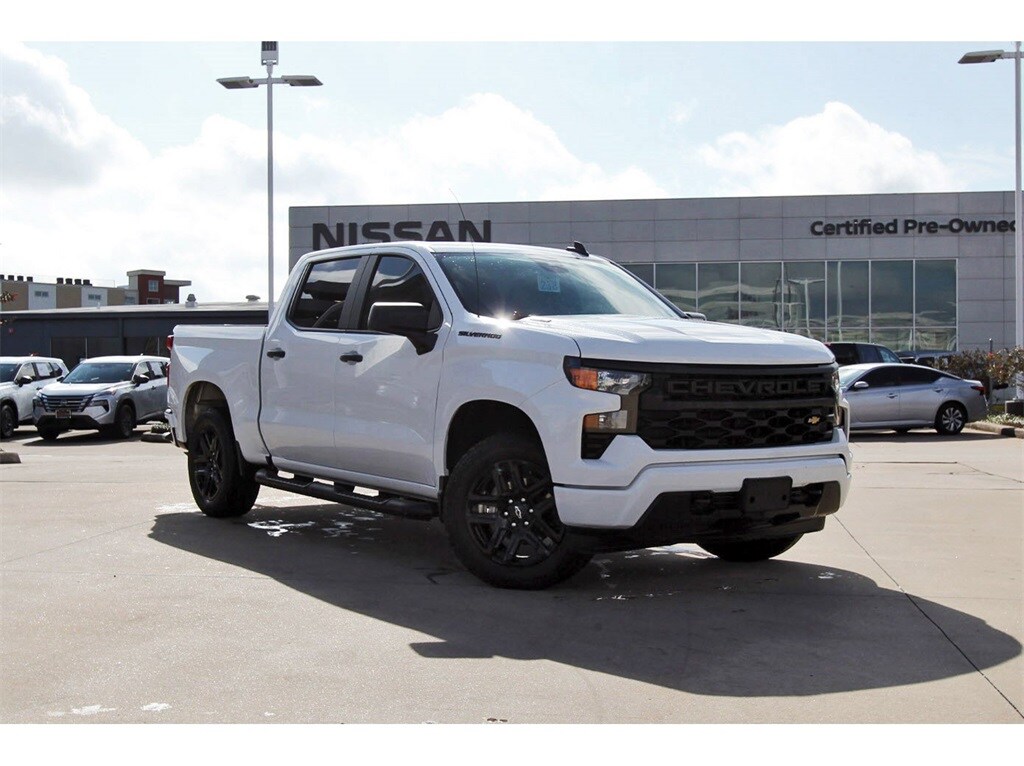 Central Houston Nissan is proud to present you with another True Market Priced Pre-Owned Vehicle. This 2024 Chevrolet Silverado 1500 Custom is loaded with the following Factory Options: 8-Speed Automatic and Black Cloth Custom Convenience Package (Electric Rear-Window Defogger, EZ Lift Power Lock & Release Tailgate, LED Cargo Area Lighting, Remote Vehicle Starter System, and Theft Deterrent System (Unauthorized Entry)), Custom Value Package, Dark Essentials Package (LPO) (Black Name Plates (LPO)), High Capacity Suspension Package, Preferred Equipment Group 1CX (10-Way Power Driver Seat w/Lumbar, 120-Volt Bed Mounted Power Outlet, 120-Volt Interior Power Outlet, 3.5" Monochromatic Display Driver Info Center, Bluetooth® For Phone, Chevrolet Connected Access Capable, Color-Keyed Carpeting Floor Covering, Deep-Tinted Glass, Dual Rear USB Ports (Charge Only), Electrical Steering Column Lock, Electronic Cruise Control, Front Frame-Mounted Black Recovery Hooks, Front Rubberized Vinyl Floor Mats, HD Rear Vision Camera, Manual Tilt Wheel Steering Column, OnStar & Chevrolet Connected Services Capable, Power Front Windows w/Driver Express Up/Down, Power Front Windows w/Passenger Express Down, Power Rear Windows w/Express Down, Rear 60/40 Folding Bench Seat (Folds Up), Rear Rubberized-Vinyl Floor Mats, Remote Keyless Entry, SiriusXM Radio, Standard Tailgate, and Wi-Fi Hot Spot Capable), Trailering Package (Hitch Guidance), TurboMax Blackout Package (4" Black Round Assist Steps (LPO) and Wheels: 20" x 9" High Gloss Black Painted Alum), 8-Speed Automatic, Black Cloth, 3.42 Rear Axle Ratio, 4-Wheel Disc Brakes, 40/20/40 Front Split-Bench Seat, 6 Speakers, 6-Speaker Audio System, ABS brakes, Air Conditioning, Alloy wheels, AM/FM radio: SiriusXM, Auto High-beam Headlights, Auto-Locking Rear Differential, Automatic Emergency Braking, Black Tailgate CHEVROLET Lettering (LPO), Brake assist, Bumpers: body-color, Cloth Seat Trim, Compass, Delay-off headlights, Driver door bin, Driver vanity mirror, Dual front impact airbags, Dual front side impact airbags, Electronic Stability Control, Following Distance Indicator, Forward Collision Alert, Front anti-roll bar, Front Black Bowtie Emblem (LPO), Front Center Armrest w/Storage, Front License Plate Kit, Front Pedestrian Braking, Front reading lights, Front wheel independent suspension, Fully automatic headlights, Heated door mirrors, Illuminated entry, IntelliBeam Automatic High Beam On/Off, Lane Keep Assist w/Lane Departure Warning, Low tire pressure warning, Occupant sensing airbag, Outside temperature display, Overhead airbag, Overhead console, Panic alarm, Passenger door bin, Passenger vanity mirror, Power door mirrors, Power driver seat, Power steering, Power windows, Premium audio system: Chevrolet Infotainment 3, Radio data system, Radio: Chevrolet Infotainment 3 System, Rear reading lights, Rear step bumper, Rear window defroster, Remote keyless entry, Security system, Single Outlet Exhaust, Speed control, Speed-sensing steering, Split folding rear seat, Tachometer, Tilt steering wheel, Traction control, Trip computer, Variably intermittent wipers, Voltmeter, and Wheels: 20" x 9" Bright Silver Painted Aluminum!!