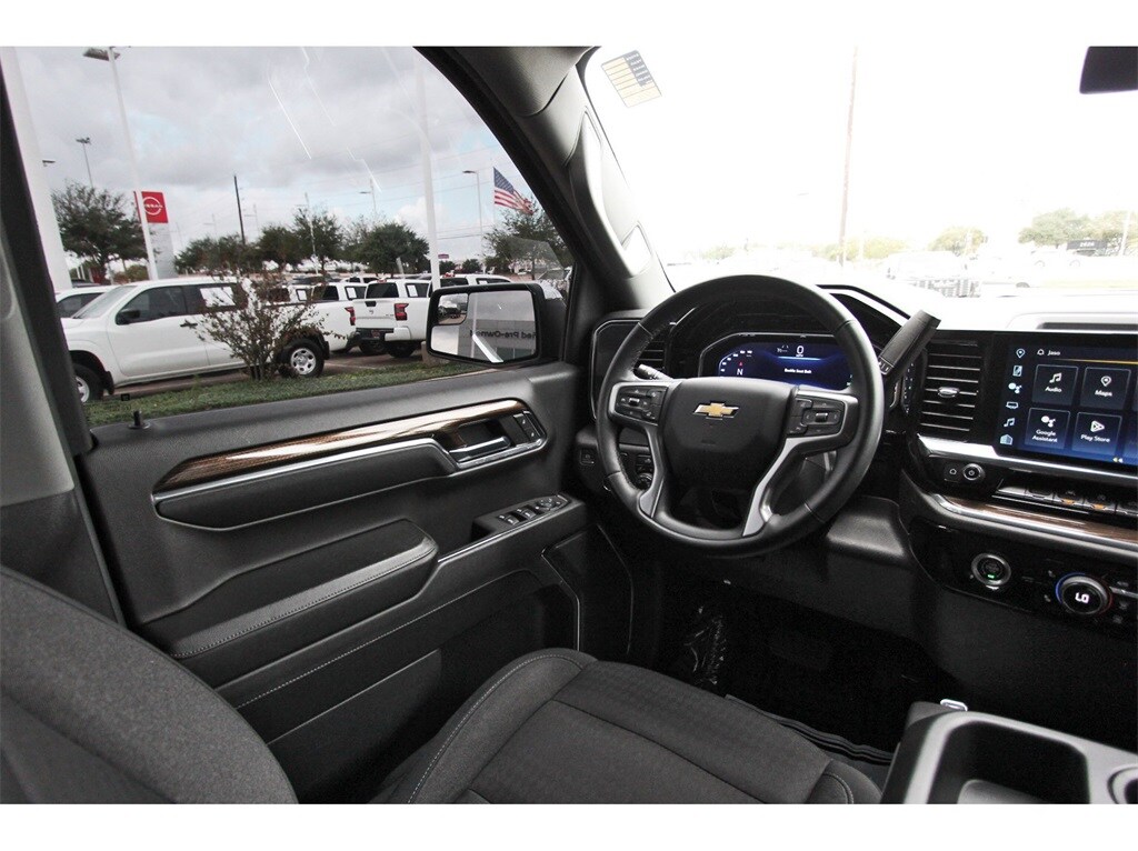 Central Houston Nissan is proud to present you with another True Market Priced Pre-Owned Vehicle. This 2024 Chevrolet Silverado 1500 LT is loaded with the following Factory Options: 10-Speed Automatic and Jet Black Cloth Convenience Package (10-Way Power Driver Seat w/Lumbar, 120-Volt Bed Mounted Power Outlet, 120-Volt Interior Power Outlet, Dual Rear USB Ports (Charge Only), Dual-Zone Automatic Climate Control, Heated Driver & Front Outboard Passenger Seats, Heated Steering Wheel, Keyless Open & Start, and Wrapped Steering Wheel), Preferred Equipment Group 1LT (12.3" Multicolor Reconfigurable Digital Display, All-Star Edition, Auto-Locking Rear Differential, Bluetooth® For Phone, Chevrolet Connected Access Capable, Chrome Mirror Caps, Color-Keyed Carpeting Floor Covering, Deep-Tinted Glass, Electrical Steering Column Lock, Electronic Cruise Control, EZ Lift Power Lock & Release Tailgate, Front Rubberized Vinyl Floor Mats, HD Rear Vision Camera, Heated Power-Adjustable Outside Mirrors, Inside Rear-View Mirror w/Tilt, LED Cargo Area Lighting, OnStar & Chevrolet Connected Services Capable, Power Front Windows w/Driver Express Up/Down, Power Front Windows w/Passenger Express Down, Power Rear Windows w/Express Down, Rear 60/40 Folding Bench Seat (Folds Up), Rear Rubberized-Vinyl Floor Mats, SiriusXM w/360L, Standard Tailgate, Steering Wheel Audio Controls, and Wi-Fi Hot Spot Capable), Protection Package (Chevytec Spray-On Black Bedliner and Rear Wheelhouse Liners), Remote Start Package (Electric Rear-Window Defogger, Remote Vehicle Starter System, and Theft Deterrent System (Unauthorized Entry)), Standard Suspension Package, Trailering Package (Hitch Guidance), 10-Speed Automatic, Jet Black Cloth, 170 Amp Alternator, 220 Amp Alternator, 3.23 Rear Axle Ratio, 4-Wheel Disc Brakes, 40/20/40 Front Split-Bench Seat, 6 Speakers, 6-Speaker Audio System, ABS brakes, Air Conditioning, All-Weather Floor Liner (LPO), Alloy wheels, AM/FM radio: SiriusXM with 360L, Auto High-beam Headlights, Automatic Emergency Braking, Automatic temperature control, Auxiliary External Transmission Oil Cooler, Brake assist, Bumpers: chrome, Chrome Assist Steps, Cloth Seat Trim, Compass, Delay-off headlights, Driver door bin, Driver vanity mirror, Dual front impact airbags, Dual front side impact airbags, Electronic Stability Control, External Engine Oil Cooler, Following Distance Indicator, Forward Collision Alert, Front anti-roll bar, Front Center Armrest w/Storage, Front dual zone A/C, Front Pedestrian Braking, Front reading lights, Front wheel independent suspension, Fully automatic headlights, Heated door mirrors, Heated front seats, Heated steering wheel, Illuminated entry, IntelliBeam Automatic High Beam On/Off, Lane Keep Assist w/Lane Departure Warning, Low tire pressure warning, Occupant sensing airbag, Outside temperature display, Overhead airbag, Overhead console, Panic alarm, Passenger door bin, Passenger vanity mirror, Power door mirrors, Power driver seat, Power steering, Power windows, Premium audio system: Chevrolet Infotainment 3 Premium, Radio data system, Radio: Chevrolet Infotainment 3 Premium System, Rear reading lights, Rear step bumper, Rear window defroster, Remote keyless entry, Security system, Speed control, Speed-sensing steering, Split folding rear seat, Steering wheel mounted audio controls, Tachometer, Telescoping steering wheel, Tilt steering wheel, Traction control, Trip computer, Variably intermittent wipers, Voltmeter, and Wheels: 17" x 8" Bright Silver Painted Aluminum!!