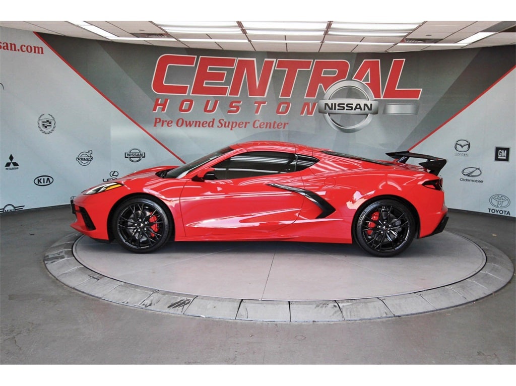 Central Houston Nissan is proud to present you with another True Market Priced Pre-Owned Vehicle. This 2025 Chevrolet Corvette Stingray 1LT is loaded with the following Factory Options: Battery Protection Package, Preferred Equipment Group 1LT, 10 Speakers, 4-Wheel Disc Brakes, 8-Way Power Driver Seat Adjuster, 8-Way Power Passenger Seat Adjuster, ABS brakes, Air Conditioning, Alloy wheels, AM/FM radio: SiriusXM, Auto High-beam Headlights, Auto-dimming Rear-View mirror, Automatic temperature control, Black Exhaust Tips, Body-Color Removable Roof Panel, Brake assist, Bright Red-Painted Calipers, Bumpers: body-color, Compass, Delay-off headlights, Driver door bin, Driver vanity mirror, Dual front impact airbags, Dual front side impact airbags, Electronic Stability Control, Emergency communication system: OnStar and Chevrolet connected services capable, Four wheel independent suspension, Front anti-roll bar, Front Bucket Seats, Front Center Armrest, Front dual zone A/C, Front License Plate Bracket, Front reading lights, Fully automatic headlights, GT1 Bucket Seats, Heated door mirrors, Illuminated entry, Leather Shift Knob, Leather steering wheel, Low tire pressure warning, Magnetic Selective Ride Control Suspension, Mulan Lthr Seating Surfaces w/Perforated Inserts, Navigation System, Occupant sensing airbag, Outside temperature display, Overhead console, Panic alarm, Passenger door bin, Passenger vanity mirror, Performance Exhaust w/Stainless-Steel Tips, Power door mirrors, Power driver seat, Power passenger seat, Power steering, Power windows, Premium audio system: Chevrolet Infotainment 3 Plus, Radio data system, Radio: Chevrolet Infotainment 3 Premium System, Rear anti-roll bar, Rear window defroster, Remote keyless entry, Speed control, Speed-sensing steering, Sport steering wheel, Steering wheel mounted audio controls, Tachometer, Telescoping steering wheel, Tilt steering wheel, Traction control, Trip computer, Turn signal indicator mirrors, Variably intermittent wipers, Voltmeter, Wheels: 19" x 8.5" Fr/20" x 11" Rr Bright Silver, and Wheels: 19" x 8.5" Fr/20" x 11" Rr Gloss Black!!