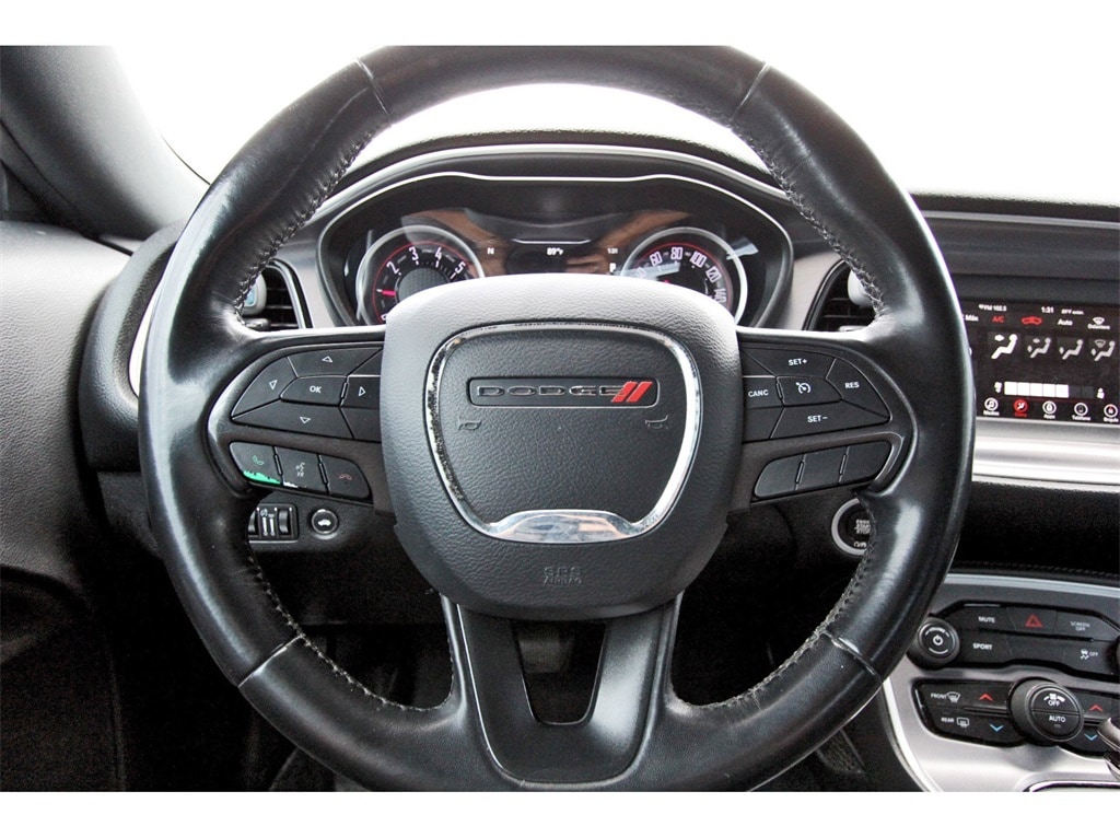 Central Houston Nissan is proud to present you with another True Market Priced Pre-Owned Vehicle. This 2019 Dodge Challenger SXT is loaded with the following Factory Options: Quick Order Package 21A SXT RWD, 4-Wheel Disc Brakes, 6 Speakers, ABS brakes, Air Conditioning, Alloy wheels, AM/FM radio, Anti-whiplash front head restraints, Apple CarPlay, Apple CarPlay/Android Auto, Auto-dimming Rear-View mirror, Automatic temperature control, Brake assist, Bumpers: body-color, Compass, Delay-off headlights, Driver door bin, Driver vanity mirror, Dual front impact airbags, Dual front side impact airbags, Electronic Stability Control, Four wheel independent suspension, Front anti-roll bar, Front Bucket Seats, Front Center Armrest, Front dual zone A/C, Front reading lights, Fully automatic headlights, Google Android Auto, GPS Antenna Input, Heated door mirrors, Houndstooth Cloth Sport Seats, Illuminated entry, Integrated Voice Command w/Bluetooth, Leather Shift Knob, Low tire pressure warning, Media Hub (2 USB, AUX), Outside temperature display, Overhead airbag, Overhead console, Panic alarm, ParkView Rear Back-Up Camera, Passenger door bin, Passenger vanity mirror, Power door mirrors, Power driver seat, Power steering, Power windows, Radio data system, Radio: Uconnect 4 w/7" Display, Rear anti-roll bar, Rear reading lights, Rear seat center armrest, Rear window defroster, Remote keyless entry, Security system, Speed control, Speed-sensing steering, Split folding rear seat, Spoiler, Steering wheel mounted audio controls, Tachometer, Telescoping steering wheel, Tilt steering wheel, Traction control, Trip computer, USB Host Flip, Variably intermittent wipers, and Wheels: 18" x 7.5" Cast Aluminum!!