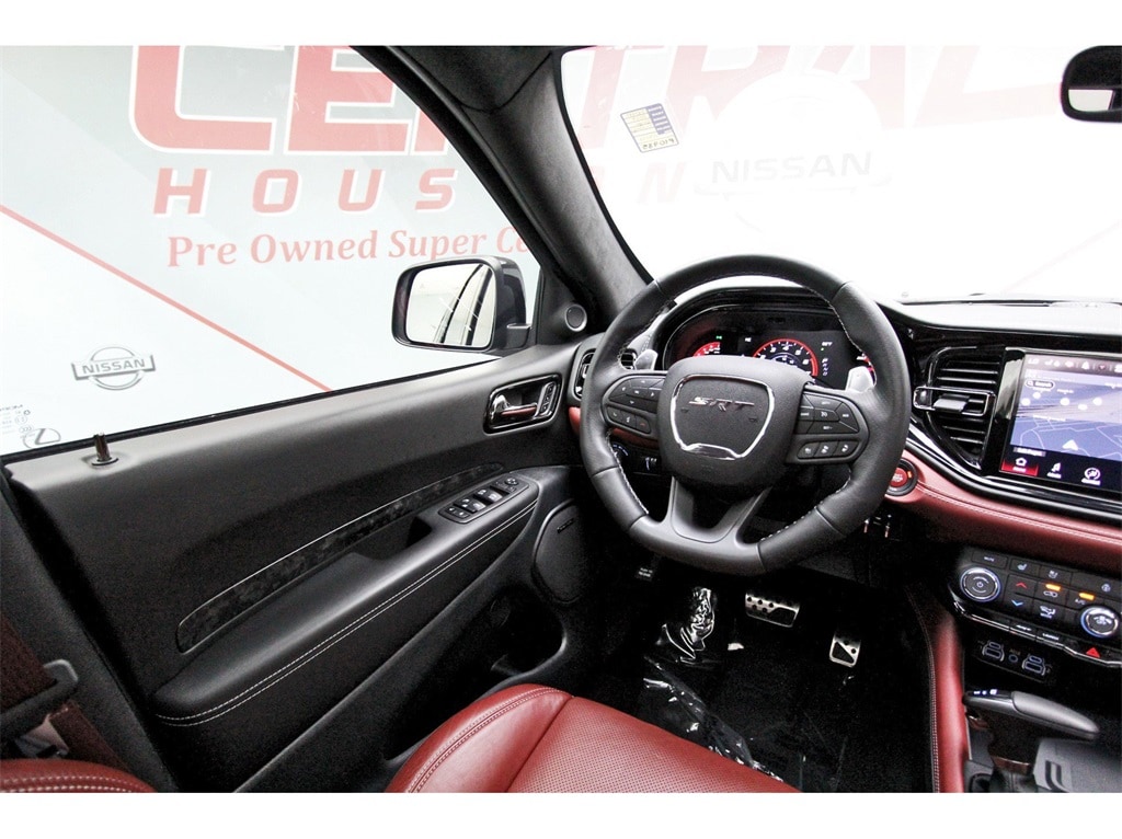 Central Houston Nissan is proud to present you with another True Market Priced Pre-Owned Vehicle. This 2024 Dodge Durango SRT Hellcat is loaded with the following Factory Options: AWD Quick Order Package 2XY Hellcat Premium (1 USB Charging Port in Console, 12V Auxiliary Power Outlet In Console, 19 harman/kardon Amplified Speakers w/Subwoofer, 2nd Row Console w/Armrest & Storage, 3rd Row Floor Mat & Full Console, 7 & 4 Pin Wiring Harness, 825 Watt Amplifier, Adaptive Cruise Control w/Stop, Advanced Brake Assist, Blind Spot w/Trailer Detection, Class IV Receiver Hitch, Forged Carbon Fiber Interior Accents, Full Speed Forward Collision Warning Plus, High Performance Laguna Leather Seats, Illuminated Rear Cupholders, Lane Departure Warning Plus, Red Seat Belts, Suede Headliner, and Trailer Brake Control), AWD, 3.70 Rear Axle Ratio, 3rd row seats: split-bench, 4-Wheel Disc Brakes, 9 Speakers, ABS brakes, Adaptive suspension, Air Conditioning, Alloy wheels, AM/FM radio: SiriusXM w/360L, Apple CarPlay/Android Auto, Audio memory, Auto High-beam Headlights, Auto-dimming door mirrors, Auto-dimming Rear-View mirror, Automatic temperature control, Brake assist, Bumpers: body-color, Compass, Delay-off headlights, Driver door bin, Driver vanity mirror, Dual front impact airbags, Dual front side impact airbags, Electronic Stability Control, Emergency communication system, Four wheel independent suspension, Front anti-roll bar, Front Bucket Seats, Front Center Armrest w/Storage, Front dual zone A/C, Front reading lights, Fully automatic headlights, Garage door transmitter, Gloss Black Exterior Mirrors, Heated door mirrors, Heated front seats, Heated rear seats, Heated steering wheel, Illuminated entry, Knee airbag, Leather Shift Knob, Leather steering wheel, Leather Trimmed Bucket Seats, Low tire pressure warning, Memory seat, Navigation system: TomTom, Occupant sensing airbag, Outside temperature display, Overhead airbag, Overhead console, Panic alarm, ParkView Rear Back-Up Camera, Passenger door bin, Passenger vanity mirror, Power door mirrors, Power driver seat, Power Liftgate, Power passenger seat, Power steering, Power windows, Radio data system, Radio: Uconnect 5 Nav w/10.1" Display, Rain sensing wipers, Rear air conditioning, Rear anti-roll bar, Rear reading lights, Rear window defroster, Rear window wiper, Remote keyless entry, Security system, Speed control, Speed-sensing steering, Speed-Sensitive Wipers, Split folding rear seat, Spoiler, Sport steering wheel, Steering wheel mounted audio controls, Tachometer, Telescoping steering wheel, Tilt steering wheel, Traction control, Trip computer, Turn signal indicator mirrors, Variably intermittent wipers, Ventilated front seats, Voltmeter, and Wheels: 20" x 10" Machine Face w/Dark Pockets!!