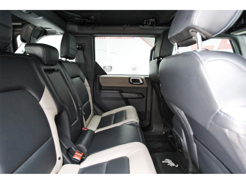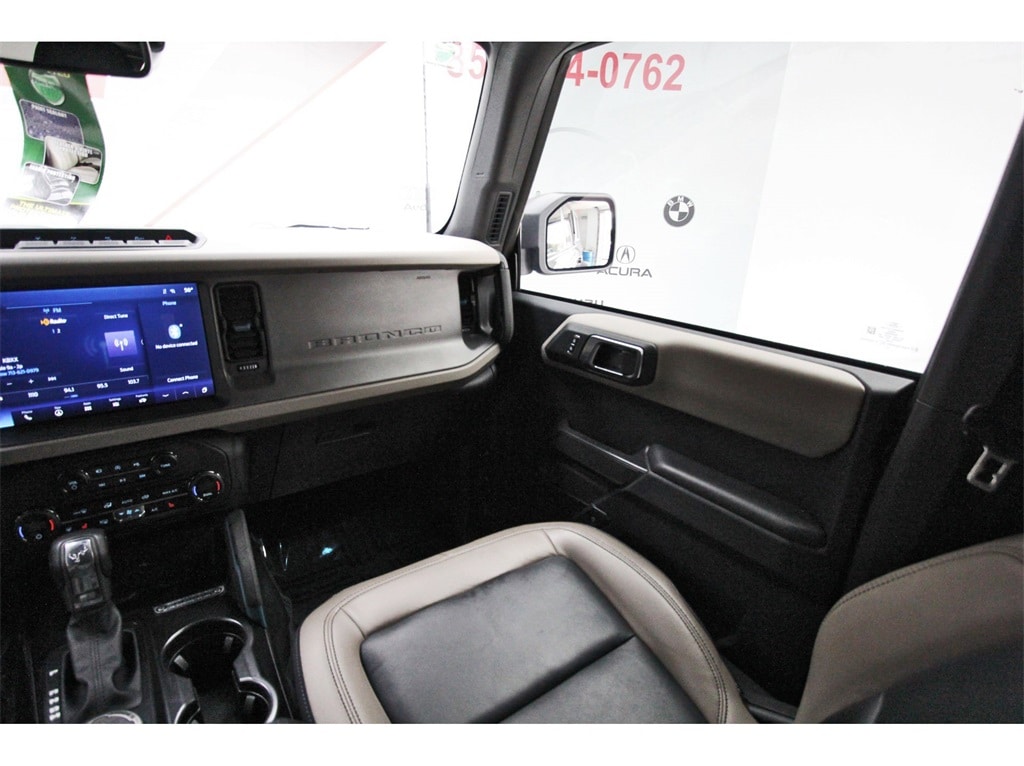 Central Houston Nissan is proud to present you with another True Market Priced Pre-Owned Vehicle. This 2024 Ford Bronco Wildtrak is loaded with the following Factory Options: Equipment Group 354A High/Lux Package (10 Speakers w/Subwoofer, 360-Degree Camera, Adaptive Cruise Control, Additional Sound Deadening, Evasive Steering Assist, Front Parking Sensors, Heated Steering Wheel, Information on Demand Panel, Radio: B&O Sound System by Bang & Olufsen, Sideview Mirrors, Universal Garage Door Opener, and Wireless Charging Pad), Trailer Tow Package (DIO), 4-Wheel Disc Brakes, 4.7 Axle Ratio, 7 Speakers, ABS brakes, Air Conditioning, Alloy wheels, AM/FM radio: SiriusXM with 360L, AM/FM Stereo, Auto High-beam Headlights, Auto-dimming Rear-View mirror, Automatic temperature control, Brake assist, Brush Guard, Compass, Connected Navigation, Delay-off headlights, Driver door bin, Driver vanity mirror, Dual front impact airbags, Dual front side impact airbags, Dual Tops, Electronic Stability Control, Emergency communication system: 911 Assist, Exterior Parking Camera Rear, Front & Rear Floor Liners w/o Carpet Floor Mats, Front anti-roll bar, Front Bucket Seats, Front Center Armrest, Front dual zone A/C, Front fog lights, Front reading lights, Front Row Top Panels Storage Bag, Front wheel independent suspension, Fully automatic headlights, Hard Top Sound Deadening Headliner, Heated door mirrors, Heated front seats, Heated Leather-Trimmed/Vinyl Bucket Seats, Illuminated entry, Integrated roll-over protection, Leather Shift Knob, Low tire pressure warning, Navigation system: Connected Navigation, Occupant sensing airbag, Outside temperature display, Overhead airbag, Overhead console, Panic alarm, Passenger door bin, Passenger vanity mirror, Power door mirrors, Power steering, Power windows, Radio data system, Rear-Window Defroster & Washer, Remote keyless entry, Security system, SiriusXM Radio w/360L, Speed control, Split folding rear seat, Steering wheel mounted audio controls, SYNC 4, Tachometer, Telescoping steering wheel, Tilt steering wheel, Traction control, Trip computer, Variably intermittent wipers, Voltmeter, and Wheels: 17" Black High Gloss-Painted Aluminum!!