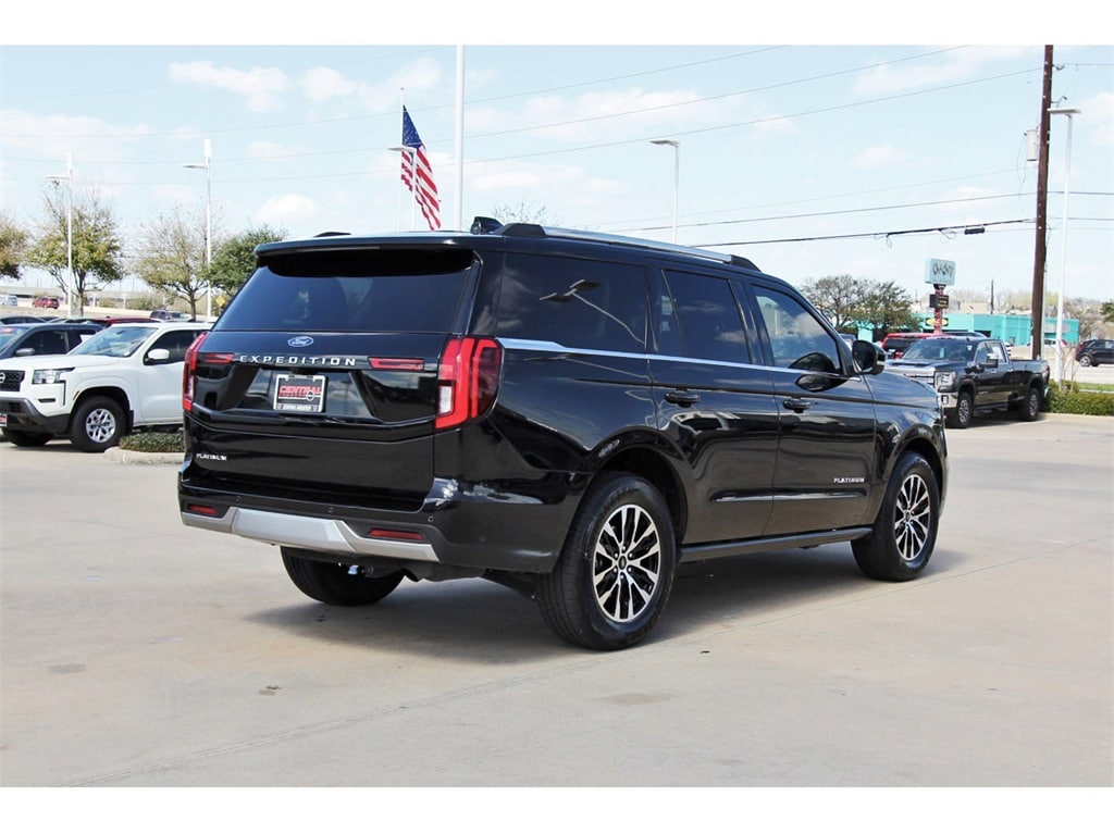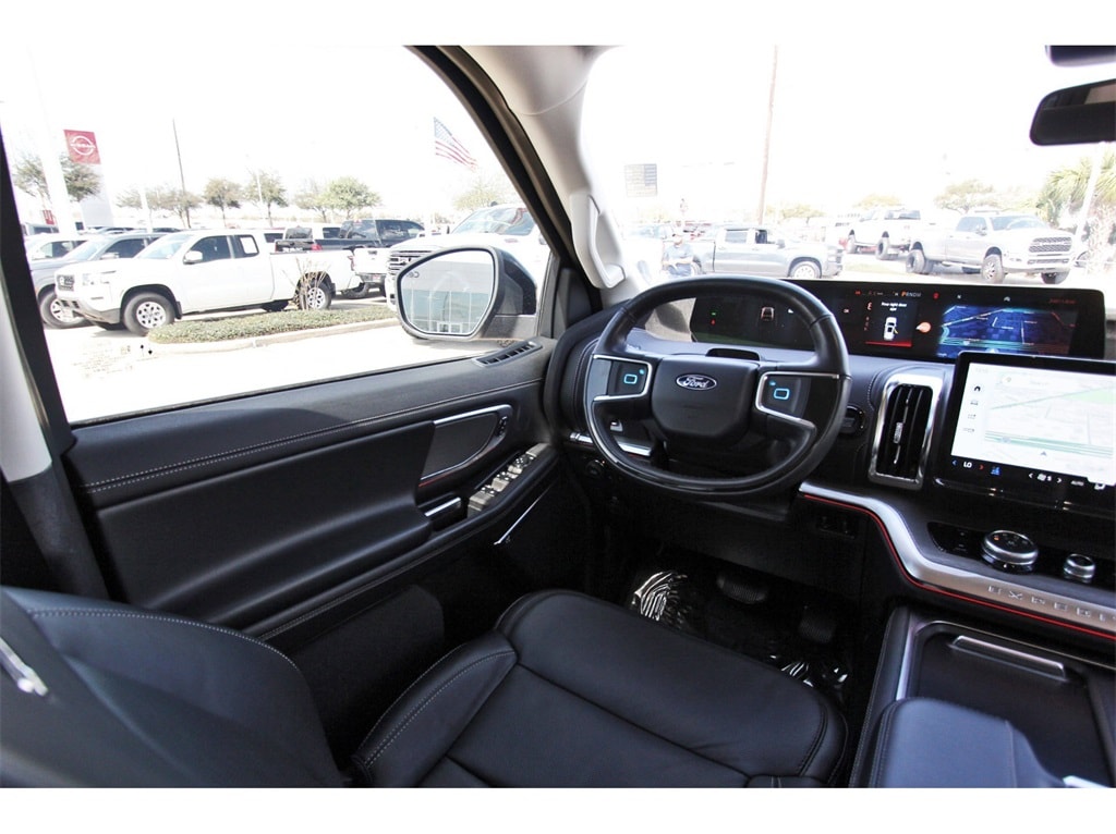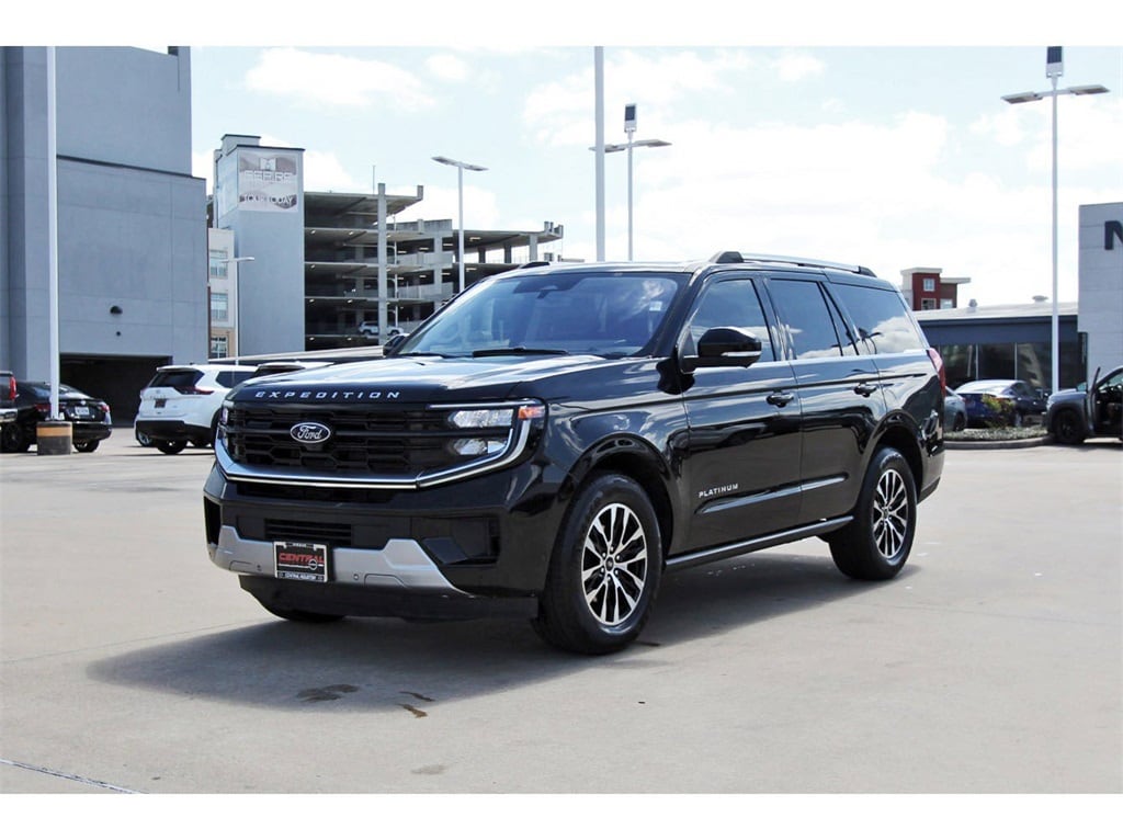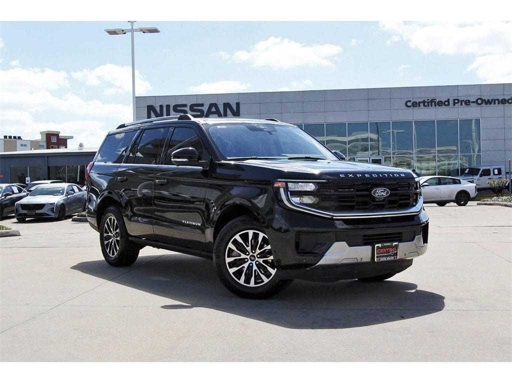 Central Houston Nissan is proud to present you with another True Market Priced Pre-Owned Vehicle. This 2025 Ford Expedition Platinum is loaded with the following Factory Options: 4WD Equipment Group 600A Standard Package (2nd Row Power-Folding Captain's Chairs), 4WD, 10 Speakers, 3.73 Axle Ratio, 3rd row seats: split-bench, 4-Wheel Disc Brakes, ABS brakes, Adjustable pedals, Air Conditioning, Alloy wheels, AM/FM radio: SiriusXM with 360L, Apple CarPlay/Android Auto, Auto High-beam Headlights, Auto-dimming door mirrors, Auto-dimming Rear-View mirror, Automatic temperature control, Brake assist, Bumpers: body-color, Compass, Delay-off headlights, Driver door bin, Driver vanity mirror, Dual front impact airbags, Dual front side impact airbags, Electronic Stability Control, Emergency communication system: 911 Assist, Exterior Parking Camera Rear, Four wheel independent suspension, Front anti-roll bar, Front Bucket Seats, Front Center Armrest, Front dual zone A/C, Front License Plate Bracket, Front reading lights, Fully automatic headlights, Garage door transmitter, Genuine wood dashboard insert, Genuine wood door panel insert, Heated & Ventilated Leather Front Captain's Chairs, Heated door mirrors, Heated front seats, Heated rear seats, Heated steering wheel, Illuminated entry, Leather steering wheel, Low tire pressure warning, Memory seat, Navigation System, Occupant sensing airbag, Outside temperature display, Overhead airbag, Overhead console, Panic alarm, Passenger door bin, Passenger vanity mirror, Pedal memory, Power door mirrors, Power driver seat, Power moonroof: Vista Roof, Power passenger seat, Power steering, Power windows, Radio data system, Radio: B&O Sound System by Bang & Olufsen, Rain sensing wipers, Rear air conditioning, Rear anti-roll bar, Rear reading lights, Rear window defroster, Rear window wiper, Reclining 3rd row seat, Remote keyless entry, Security system, SiriusXM w/360L, Speed control, Speed-sensing steering, Speed-Sensitive Wipers, Split folding rear seat, Spoiler, Steering wheel memory, Steering wheel mounted audio controls, Tachometer, Telescoping steering wheel, Tilt steering wheel, Traction control, Trip computer, Turn signal indicator mirrors, Variably intermittent wipers, Ventilated front seats, Voltmeter, and Wheels: 20" Ebony Bright Machined Aluminum!!
