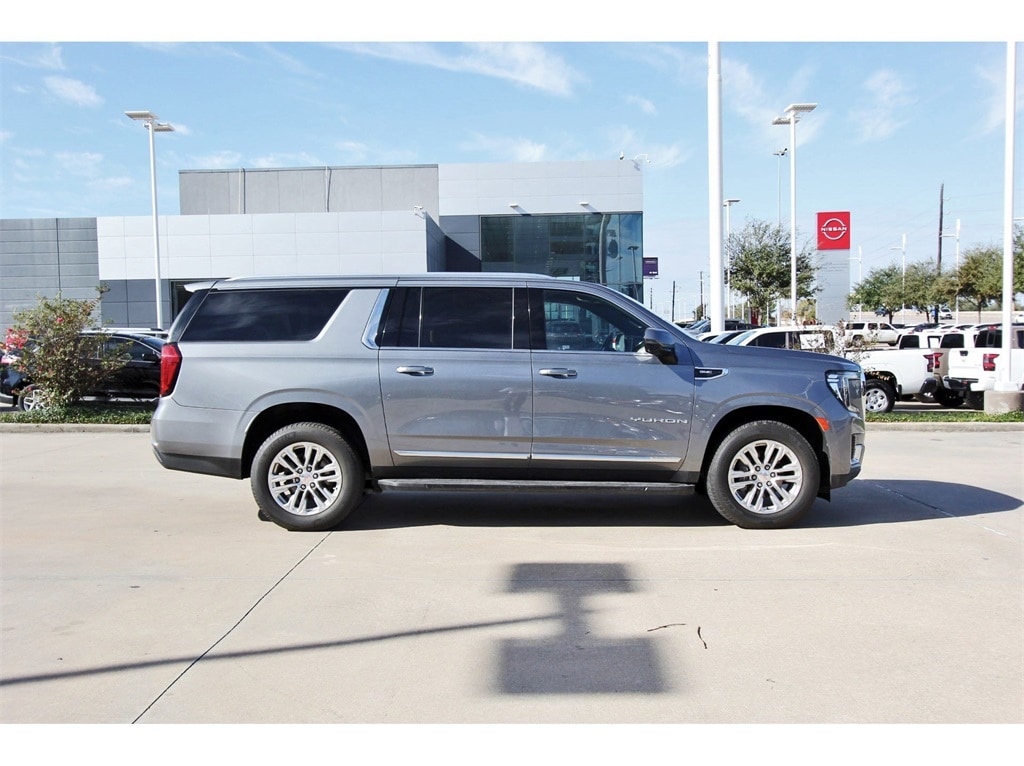 Central Houston Nissan is proud to present you with another True Market Priced Pre-Owned Vehicle. This 2022 GMC Yukon XL SLT is loaded with the following Factory Options: License Plate Front Mounting Package, Preferred Equipment Group 4SA (2 Presets For Power Driver Seat, Automatic Stop/Start, Bose 9-Speaker Stereo Audio System Feature, Bright Chrome Bodyside Moldings, Bright Front & Rear Door Sill Plates, Chrome Door Handles w/Body-Color Strip, Hands-Free Power Programmable Rear Liftgate, Heated & Ventilated Driver & Front Passenger Seats, Heated Driver & Front Passenger Seats, Inside Rear-View Auto-Dimming Mirror, Safety Alert Seat, Start/Stop System Disable Button, Universal Home Remote, and Wireless Charging), SLT Luxury Package (2 Presets For Outside Rearview Mirrors, 3rd Row 60/40 Power-Folding Split-Bench Seat, HD Surround Vision, Heated 2nd Row Outboard Position Seats, Heated Steering Wheel, Outside Heated Power-Adjustable Mirrors, Power Release 2nd Row 60/40 Split-Folding Bench Seat, Power Tilt & Telescopic Steering Column, and Rear Pedestrian Alert), 3.23 Rear Axle Ratio, 3rd row seats: split-bench, 4-Wheel Disc Brakes, 9 Speakers, ABS brakes, Air Conditioning, Alloy wheels, AM/FM radio: SiriusXM with 360L, AM/FM Stereo, Apple CarPlay/Android Auto, Auto High-beam Headlights, Auto-dimming Rear-View mirror, Automatic Emergency Braking, Automatic temperature control, Bodyside moldings, Brake assist, Bumpers: body-color, Compass, Delay-off headlights, Driver door bin, Driver vanity mirror, Dual front impact airbags, Dual front side impact airbags, Electronic Stability Control, Emergency communication system: OnStar and GMC Connected Services capable, Following Distance Indicator, Forward Collision Alert, Four wheel independent suspension, Front & Rear Park Assist, Front anti-roll bar, Front Bucket Seats, Front Center Armrest, Front dual zone A/C, Front fog lights, Front Pedestrian Braking, Front reading lights, Fully automatic headlights, Garage door transmitter, Heated door mirrors, Heated front seats, Illuminated entry, IntelliBeam Automatic High Beam On/Off, Lane Change Alert w/Side Blind Zone Alert, Lane Keep Assist w/Lane Departure Warning, Leather steering wheel, Low tire pressure warning, Memory seat, Navigation System, Not Equipped w/4-Way Driver & Fr Pass Pwr Lumbar, Not Equipped w/Front & Rear Park Assist, Not Equipped w/Heated Steering Wheel (DISC), Not Equipped w/Steering Column Lock, Occupant sensing airbag, Outside temperature display, Overhead airbag, Overhead console, Panic alarm, Passenger door bin, Passenger vanity mirror, Perforated Leather-Appointed Seating, Power door mirrors, Power driver seat, Power Liftgate, Power passenger seat, Power Release 2nd Row Bucket Seats, Power steering, Power windows, Premium Smooth Ride Suspension, Rain sensing wipers, Rear air conditioning, Rear anti-roll bar, Rear Cross Traffic Alert, Rear reading lights, Rear seat center armrest, Rear window defroster, Rear window wiper, Remote keyless entry, Roof rack: rails only, Security system, SiriusXM w/360L, Speed control, Speed-sensing steering, Split folding rear seat, Spoiler, Steering wheel mounted audio controls, Tachometer, Telescoping steering wheel, Tilt steering wheel, Traction control, Trip computer, Variably intermittent wipers, Ventilated front seats, Voltmeter, and Wheels: 20" x 9" 6-Spoke Polished Aluminum!!