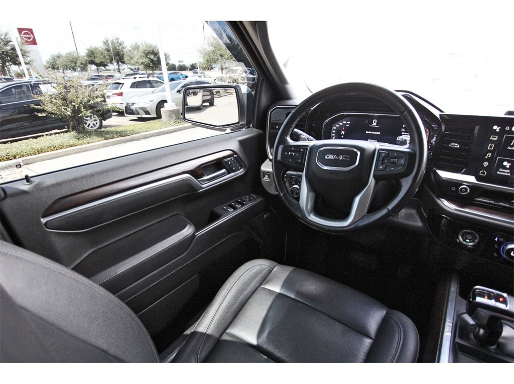 Central Houston Nissan is proud to present you with another True Market Priced Pre-Owned Vehicle. This 2023 GMC Sierra 1500 SLT is loaded with the following Factory Options: 10-Speed Automatic, 4WD, and Jet Black Leather High Capacity Suspension Package, Preferred Equipment Group 4SA (120-Volt Bed Mounted Power Outlet, 120-Volt Instrument Panel Power Outlet, 170 Amp Alternator, 2 Charge/Data USB Ports, 2 Type-C Charge-Only Rear USB Ports, 6-Speaker Audio System Feature, Auto-Locking Rear Differential, Auxiliary External Transmission Oil Cooler, Chrome Header & Chrome Grille Insert Bars, Color-Keyed Carpeting Floor Covering, Compass, Deep-Tinted Glass, Electric Rear-Window Defogger, Electrical Steering Column Lock, Front Frame-Mounted Black Recovery Hooks, Front Rainsensing Wipers, GMC Connected Access Capable, HD Rear Vision Camera, Keyless Open & Start, LED Cargo Area Lighting, Manual Tilt-Wheel & Telescoping Steering Column, OnStar & GMC Connected Services Capable, Perimeter Lighting, Power Door Locks, Power Front Passenger Windows w/Express Up/Down, Power Front Windows w/Driver Express Up/Down, Power Rear Windows w/Express Down, Push Button Start, Rear Wheelhouse Liners, Remote Vehicle Starter System, SiriusXM w/360L, Steering Wheel Audio Controls, Theft Deterrent System (Unauthorized Entry), Wi-Fi Hotspot Capable, and Wireless Phone Projection), SLT Convenience Package (2 Charge/Data USB Ports Inside Center Console, Electronic Precision Shift, Floor-Mounted Center Console, Front Bucket Seats, Power Rake & Telescoping Steering Column, Premium Bose 7-Speaker Sound System, Ventilated Driver & Front Passenger Seats, and Wireless Charging), SLT Preferred Package (Adaptive Cruise Control, Heated 2nd Row Outboard Seats, Power Sliding Rear Window w/Rear Defogger, and Universal Home Remote), Standard Suspension Package, Trailering Package (Hitch Guidance), X31 Off-Road Package (Dual Exhaust System, Heavy-Duty Air Filter, Hill Descent Control, Off-Road Suspension, and X31 Hard Badge), 10-Speed Automatic, 4WD, Jet Black Leather, 10-Way Power Driver Seat Adjuster w/Lumbar, 10-Way Power Passenger Seat Adjuster w/Lumbar, 20" Polished Aluminum Wheels, 220 Amp Alternator, 3.23 Rear Axle Ratio, 4-Wheel Disc Brakes, 6 Speakers, ABS brakes, Air Conditioning, All-Weather Floor Liner (LPO), Alloy wheels, AM/FM radio, Apple CarPlay/Android Auto, Auto High-beam Headlights, Auto-dimming door mirrors, Auto-dimming Rear-View mirror, Automatic Emergency Braking, Automatic temperature control, Brake assist, Buckle to Drive, Bumpers: chrome, Delay-off headlights, Driver door bin, Driver Memory, Driver vanity mirror, Dual front impact airbags, Dual front side impact airbags, Electronic Stability Control, Emergency communication system: OnStar and GMC connected services capable, Engine Block Heater, Following Distance Indicator, Forward Collision Alert, Front 40/20/40 Split-Bench Seat, Front anti-roll bar, Front Center Armrest w/Storage, Front dual zone A/C, Front fog lights, Front Pedestrian Braking, Front reading lights, Front wheel independent suspension, Fully automatic headlights, Heated door mirrors, Heated Driver & Front Outboard Passenger Seating, Heated front seats, Heated steering wheel, Illuminated entry, IntelliBeam Automatic High Beam On/Off, Lane Keep Assist w/Lane Departure Warning, Low tire pressure warning, Memory seat, Navigation System, Not Equipped w/Steering Column Lock, Occupant sensing airbag, Outside temperature display, Overhead airbag, Overhead console, Panic alarm, Passenger door bin, Passenger vanity mirror, Perf Leather-Appointed Front Outboard Seat Trim, Power door mirrors, Power driver seat, Power passenger seat, Power steering, Power Sunroof, Power windows, Premium audio system: GMC Infotainment System, Radio data system, Radio: Premium GMC Infotainment Audio System, Rain sensing wipers, Rear reading lights, Rear seat center armrest, Rear step bumper, Rear window defroster, Remote keyless entry, Security system, Speed con
