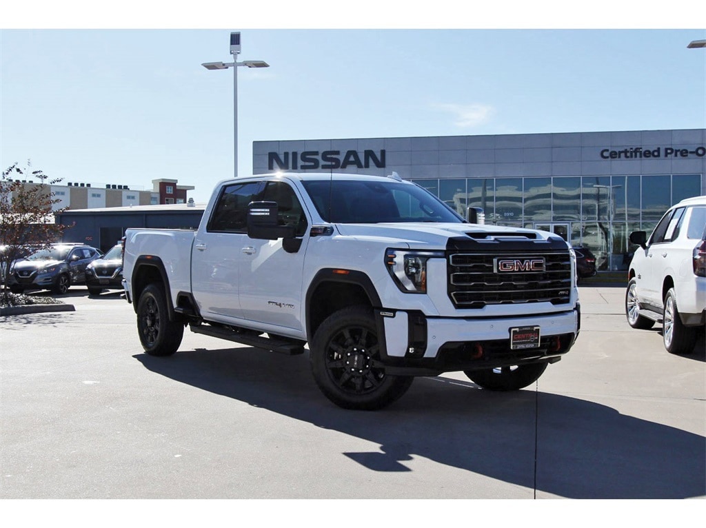 Central Houston Nissan is proud to present you with another True Market Priced Pre-Owned Vehicle. This 2025 GMC Sierra 2500HD AT4 is loaded with the following Factory Options: 10-Speed Automatic, 4WD, and Jet Black With Kalahari Accents Leather Preferred Equipment Group 4SB (120-Volt Bed Mounted Power Outlet, 120-Volt Instrument Panel Power Outlet, 2 Charge-Only Rear USB Ports, 2 Charge/Data USB Ports Inside Center Console, 2 USB Ports, 2-Speed Active Transfer Case, Bed View Camera w/2 Trailer Camera Provisions, Bose Premium 7-Speaker Sound System, Deep-Tinted Glass, Electric Rear-Window Defogger, Floor-Mounted Center Console, Front Prem Floor Liners w/Removable Carpet Insert, Front Rain-Sensing Wipers, Gloss Black Header Grille & Grille Insert Bars, HD Surround Vision, Heated 2nd Row Outboard Seats, Heated Driver & Front Outboard Passenger Seats, Keyless Open & Start, LED Cargo Area Lighting, Manual Tilt-Wheel/Telescoping Steering Column, OnStar Services Capable, Power Front Passenger Windows w/Express Up/Down, Push Button Start, Rear Cross Traffic Alert, Rear Prem Floor Liners w/Removable Carpet Insert, Rear Wheelhouse Liners, Remote Vehicle Starter System, Safety Alert Seat, SiriusXM w/360L Trial Subscription, Spray-On Pickup Bedliner w/GMC Logo, Steering Wheel Audio Controls, Trailer Cam Provisions & Trailer Viewing Software, Trailer Side Blind Zone Alert, Ultrasonic Front & Rear Park Assist, Unauthorized Entry Theft-Deterrent System, Ventilated Driver & Front Passenger Seats, Wireless Charging, and Wireless Phone Projection), X31 Off-Road Package (Hill Descent Control), 10-Speed Automatic, 4WD, Jet Black With Kalahari Accents Leather, 10-Way Power Driver Seat Adjuster w/Lumbar, 10-Way Power Passenger Seat Adjuster w/Lumbar, 220-Amp Alternator, 4-Wheel Disc Brakes, 7 Speakers, ABS brakes, Air Conditioning, Alloy wheels, AM/FM radio: SiriusXM with 360L, Apple CarPlay/Android Auto, Auto High-beam Headlights, Auto-dimming door mirrors, Auto-dimming Rear-View mirror, Automatic Emergency Braking, Automatic temperature control, Brake assist, Buckle to Drive, Bumpers: body-color, Compass, Delay-off headlights, Driver door bin, Driver Memory, Driver vanity mirror, Dual front impact airbags, Dual front side impact airbags, Electronic Stability Control, Emergency communication system: OnStar, Engine Block Heater, Exhaust Brake, Following Distance Indicator, Forward Collision Alert, Front anti-roll bar, Front Bucket Seats, Front Center Armrest, Front dual zone A/C, Front fog lights, Front Pedestrian Braking, Front reading lights, Front wheel independent suspension, Fully automatic headlights, Heated door mirrors, Heated front seats, Heated rear seats, Heated steering wheel, Heavy-Duty 80 Amp Battery, Hitch Guidance w/Hitch View, Illuminated entry, In-Vehicle Trailering System App, IntelliBeam Automatic High Beam On/Off, Lane Departure Warning System, Low tire pressure warning, Memory seat, Occupant sensing airbag, Off-Road Suspension, Outside temperature display, Overhead airbag, Overhead console, Panic alarm, Passenger door bin, Passenger vanity mirror, Perforated Leather-Appointed Front Seat Trim, Pickup Box, Power door mirrors, Power driver seat, Power passenger seat, Power steering, Power windows, Radio: AM/FM w/Premium GMC Infotainment System, Rain sensing wipers, Rear reading lights, Rear seat center armrest, Rear step bumper, Rear window defroster, Remote keyless entry, Security system, Speed control, Speed-sensing steering, Split folding rear seat, Steering wheel mounted audio controls, Tachometer, Telescoping steering wheel, Tilt steering wheel, Traction control, Trip computer, Turn signal indicator mirrors, Variably intermittent wipers, Ventilated front seats, Voltmeter, Wheels: 20" High Gloss Black 8 Spokes Aluminum, and Winter Grille Cover!!