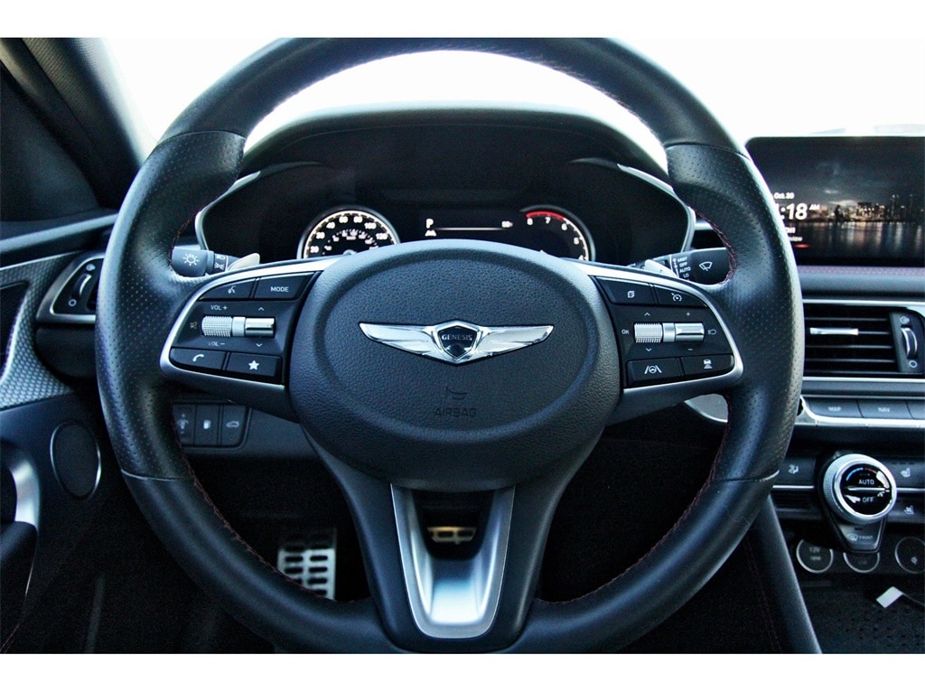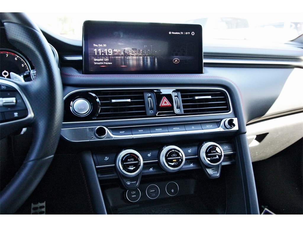 Central Houston Nissan is proud to present you with another True Market Priced Pre-Owned Vehicle. This 2023 Genesis G70 2.0T is loaded with the following Factory Options: Sport Prestige Package (4-Way Power Lumbar Front Passenger Seat, Acoustic Front Door Glass, Alloy Pedals, Dark Chrome Grille & Daylight Opening Trim, Forward & Reverse Parking Distance Warning, Front Passenger Seat Walk-In Device, Integrated Memory System (IMS), Leather Seating Surfaces, Option Group 02, Power Folding ECM Outside Mirrors, Power Telescoping Steering Wheel, Radio: AM/FM/SiriusXM/HD Lexicon Prem Audio System, Rain-Sensing Wipers, Sport Aluminum Trim, Ventilated Front Seats, Wheels: 19" x 8.0J Fr & 19" x 8.5J Rr Sport Alloy, Wide Sunroof, and Wireless Device Charging), 4-Wheel Disc Brakes, 6 Speakers, ABS brakes, Air Conditioning, Alloy wheels, AM/FM radio: SiriusXM, Android Auto & Apple CarPlay, Anti-whiplash front head restraints, Auto High-beam Headlights, Auto-dimming Rear-View mirror, Automatic temperature control, Brake assist, Bumper Applique, Bumpers: body-color, Delay-off headlights, Driver door bin, Driver vanity mirror, Dual front impact airbags, Dual front side impact airbags, Electronic Stability Control, Emergency communication system: Genesis Connected Services, Exterior Parking Camera Rear, Four wheel independent suspension, Front anti-roll bar, Front Bucket Seats, Front Center Armrest, Front dual zone A/C, Front reading lights, Fully automatic headlights, Garage door transmitter: HomeLink, Heated door mirrors, Heated front seats, Heated Multi-Adjustable Front Bucket Seats, Illuminated entry, Knee airbag, Leatherette Seating Surfaces, Low tire pressure warning, Navigation System, Occupant sensing airbag, Outside temperature display, Overhead airbag, Overhead console, Panic alarm, Passenger door bin, Passenger vanity mirror, Power door mirrors, Power driver seat, Power passenger seat, Power steering, Power windows, Premium First Aid Kit, Radio: AM/FM/SiriusXM/HD Audio System, Rear anti-roll bar, Rear reading lights, Rear seat center armrest, Rear window defroster, Remote keyless entry, Security system, Speed control, Speed-Sensitive Wipers, Split folding rear seat, Steering wheel mounted audio controls, Tachometer, Telescoping steering wheel, Traction control, Trip computer, Turn signal indicator mirrors, Variably intermittent wipers, Wheel Locks, and Wheels: 19" x 8.0J Fr & 19" x 8.5J Rr Alloy!!