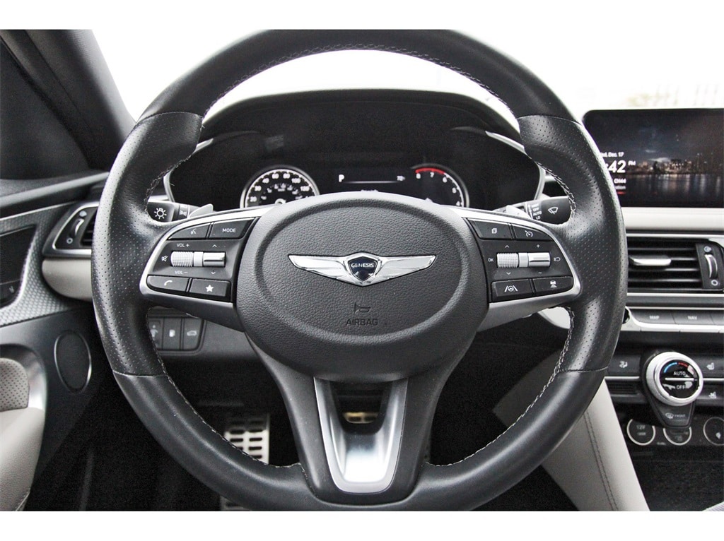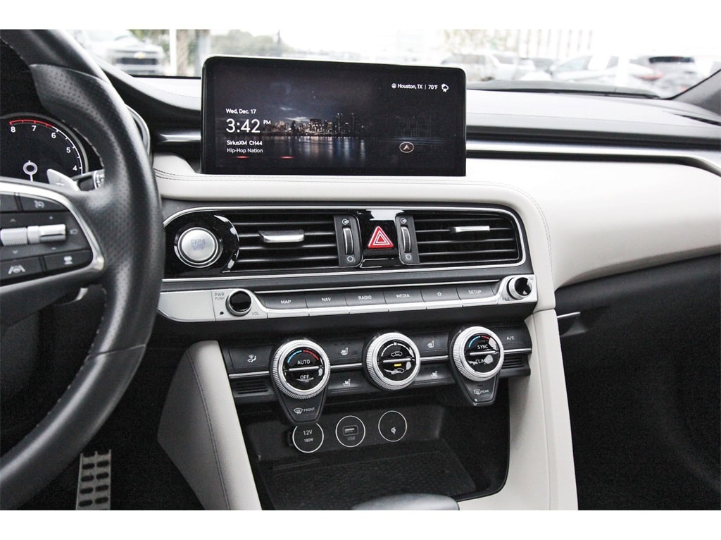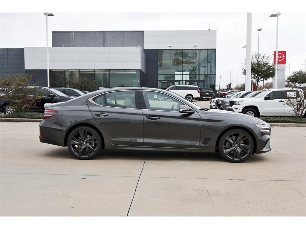 Central Houston Nissan is proud to present you with another True Market Priced Pre-Owned Vehicle. This 2023 Genesis G70 2.0T is loaded with the following Factory Options: Sport Prestige Package (4-Way Power Lumbar Front Passenger Seat, Acoustic Front Door Glass, Alloy Pedals, Dark Chrome Grille & Daylight Opening Trim, Forward & Reverse Parking Distance Warning, Front Passenger Seat Walk-In Device, Integrated Memory System (IMS), Leather Seating Surfaces, Option Group 02, Power Folding ECM Outside Mirrors, Power Telescoping Steering Wheel, Radio: AM/FM/SiriusXM/HD Lexicon Prem Audio System, Rain-Sensing Wipers, Sport Aluminum Trim, Ventilated Front Seats, Wheels: 19" x 8.0J Fr & 19" x 8.5J Rr Sport Alloy, Wide Sunroof, and Wireless Device Charging), 4-Wheel Disc Brakes, 6 Speakers, ABS brakes, Air Conditioning, Alloy wheels, AM/FM radio: SiriusXM, Android Auto & Apple CarPlay, Anti-whiplash front head restraints, Auto High-beam Headlights, Auto-dimming Rear-View mirror, Automatic temperature control, Brake assist, Bumper Applique, Bumpers: body-color, Delay-off headlights, Driver door bin, Driver vanity mirror, Dual front impact airbags, Dual front side impact airbags, Electronic Stability Control, Emergency communication system: Genesis Connected Services, Exterior Parking Camera Rear, Four wheel independent suspension, Front anti-roll bar, Front Bucket Seats, Front Center Armrest, Front dual zone A/C, Front reading lights, Fully automatic headlights, Garage door transmitter: HomeLink, Heated door mirrors, Heated front seats, Heated Multi-Adjustable Front Bucket Seats, Illuminated entry, Knee airbag, Leatherette Seating Surfaces, Low tire pressure warning, Navigation System, Occupant sensing airbag, Outside temperature display, Overhead airbag, Overhead console, Panic alarm, Passenger door bin, Passenger vanity mirror, Power door mirrors, Power driver seat, Power passenger seat, Power steering, Power windows, Premium First Aid Kit, Radio: AM/FM/SiriusXM/HD Audio System, Rear anti-roll bar, Rear reading lights, Rear seat center armrest, Rear window defroster, Remote keyless entry, Security system, Speed control, Speed-Sensitive Wipers, Split folding rear seat, Steering wheel mounted audio controls, Tachometer, Telescoping steering wheel, Traction control, Trip computer, Turn signal indicator mirrors, Variably intermittent wipers, Wheel Locks, and Wheels: 19" x 8.0J Fr & 19" x 8.5J Rr Alloy!!
