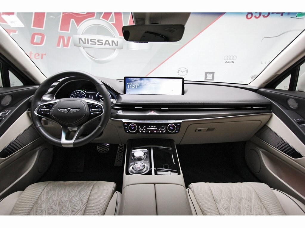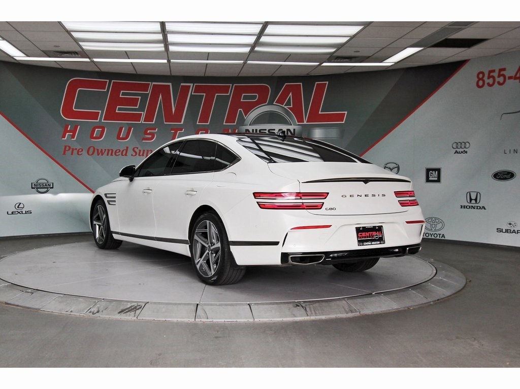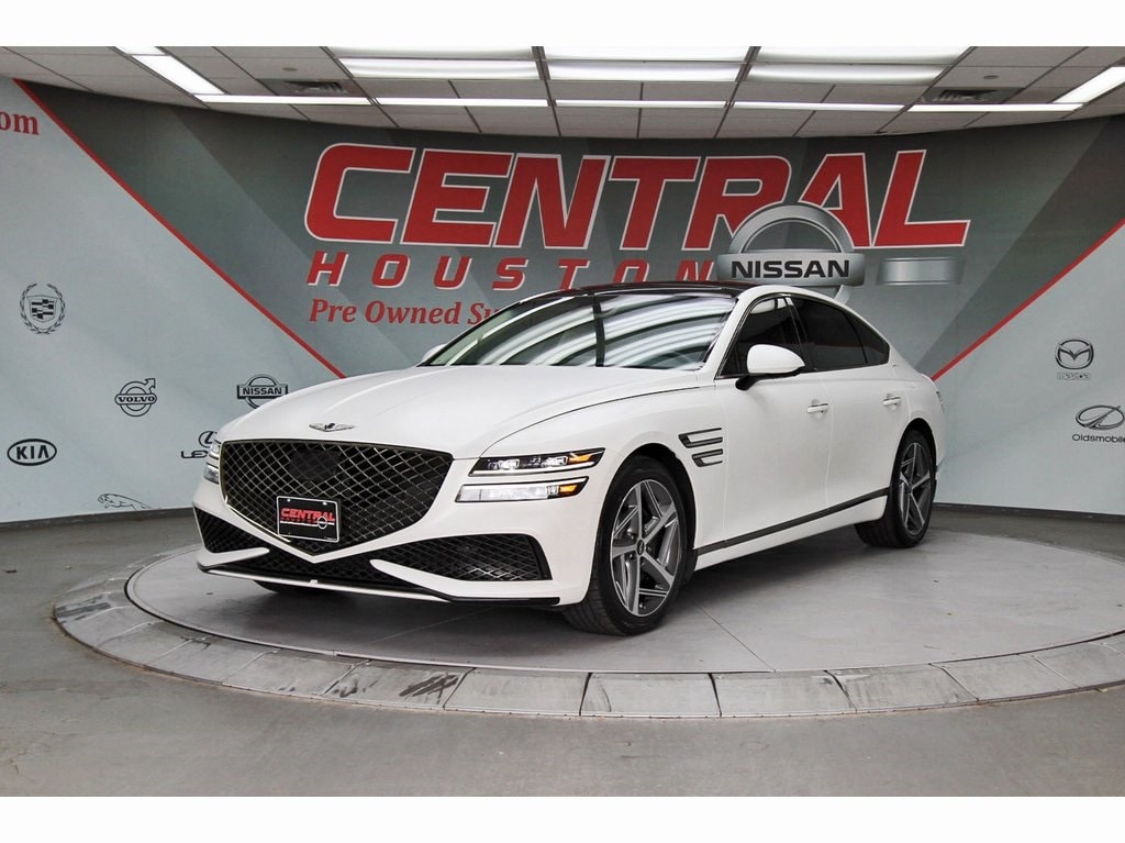 Central Houston Nissan is proud to present you with another True Market Priced Pre-Owned Vehicle. This 2023 Genesis G80 2.5T is loaded with the following Factory Options: 12 Speakers, 4-Wheel Disc Brakes, ABS brakes, Air Conditioning, Alloy wheels, AM/FM radio: SiriusXM, Android Auto & Apple CarPlay, Anti-whiplash front head restraints, Auto High-beam Headlights, Auto tilt-away steering wheel, Auto-dimming door mirrors, Auto-dimming Rear-View mirror, Automatic temperature control, Bumpers: body-color, Compass, Delay-off headlights, Driver door bin, Driver vanity mirror, Dual front impact airbags, Dual front side impact airbags, Electronic Stability Control, Emergency communication system: Genesis Connected Services, Exterior Parking Camera Rear, Four wheel independent suspension, Front anti-roll bar, Front Bucket Seats, Front Center Armrest, Front dual zone A/C, Front reading lights, Fully automatic headlights, Garage door transmitter: HomeLink, Heated door mirrors, Heated Front Bucket Seats, Heated front seats, Illuminated entry, Knee airbag, Leather steering wheel, Leatherette Seating Surfaces, Low tire pressure warning, Memory seat, Navigation System, Occupant sensing airbag, Outside temperature display, Overhead airbag, Overhead console, Panic alarm, Passenger door bin, Passenger vanity mirror, Power door mirrors, Power driver seat, Power passenger seat, Power steering, Power windows, Radio data system, Radio: AM/FM/HD/SiriusXM Audio System, Rain sensing wipers, Rear anti-roll bar, Rear reading lights, Rear seat center armrest, Rear side impact airbag, Rear window defroster, Remote keyless entry, Security system, Speed control, Speed-sensing steering, Speed-Sensitive Wipers, Steering wheel memory, Steering wheel mounted audio controls, Tachometer, Telescoping steering wheel, Tilt steering wheel, Traction control, Trip computer, Turn signal indicator mirrors, Variably intermittent wipers, and Wheels: 18"x8.0J Alloy!!