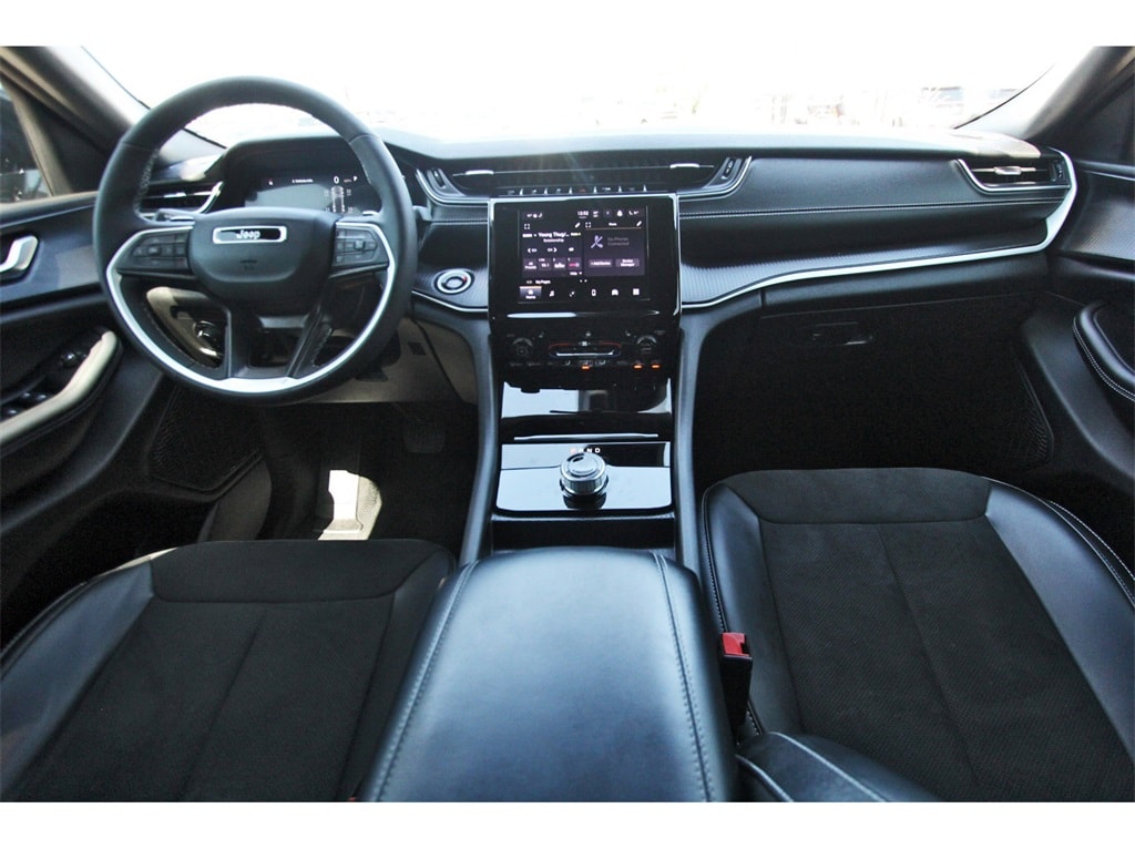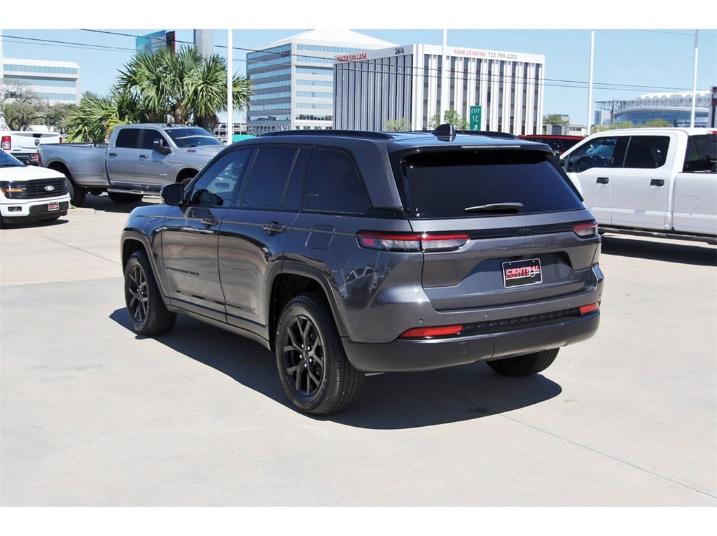 Central Houston Nissan is proud to present you with another True Market Priced Pre-Owned Vehicle. This 2025 Jeep Grand Cherokee Altitude X is loaded with the following Factory Options: Quick Order Package 23M Altitude X (115V Auxiliary Power Outlet, Altitude X, Black Headliner, Capri Leatherette/Suede Seats, Delete Laredo Badge, Gloss Black Exterior Accents, Heated Front Seats, Heated Steering Wheel, Power Liftgate, Power Sunroof, Rain Sensitive Windshield Wipers, Remote Start System, Selectable Tire Fill Alert, Wheels: 18" x 8" Fully Painted Aluminum 1, and Wireless Charging Pad), 4-Wheel Disc Brakes, 6 Speakers, ABS brakes, Air Conditioning, Alloy wheels, AM/FM radio: SiriusXM, Anti-whiplash front head restraints, Automatic temperature control, Brake assist, Bumpers: body-color, Cloth Seats, Compass, Delay-off headlights, Driver door bin, Driver vanity mirror, Dual front impact airbags, Dual front side impact airbags, Electronic Stability Control, Emergency communication system, Four wheel independent suspension, Front anti-roll bar, Front Bucket Seats, Front Center Armrest w/Storage, Front dual zone A/C, Front License Plate Bracket, Front reading lights, Fully automatic headlights, Heated door mirrors, Illuminated entry, Knee airbag, Low tire pressure warning, Model Year Tracking, Normal Duty Suspension, Occupant sensing airbag, Outside temperature display, Overhead airbag, Overhead console, Panic alarm, ParkView Rear Back-Up Camera, Passenger door bin, Passenger vanity mirror, Power door mirrors, Power driver seat, Power steering, Power windows, Radio data system, Radio: Uconnect 5 with 8.4" Display, Rear anti-roll bar, Rear reading lights, Rear window defroster, Rear window wiper, Remote keyless entry, Security system, Speed control, Speed-Sensitive Wipers, Split folding rear seat, Spoiler, Steering wheel mounted audio controls, Tachometer, Telescoping steering wheel, Tilt steering wheel, Traction control, Trip computer, Variably intermittent wipers, Voltmeter, and Wheels: 17" x 6.5" Fully Painted Aluminum!!